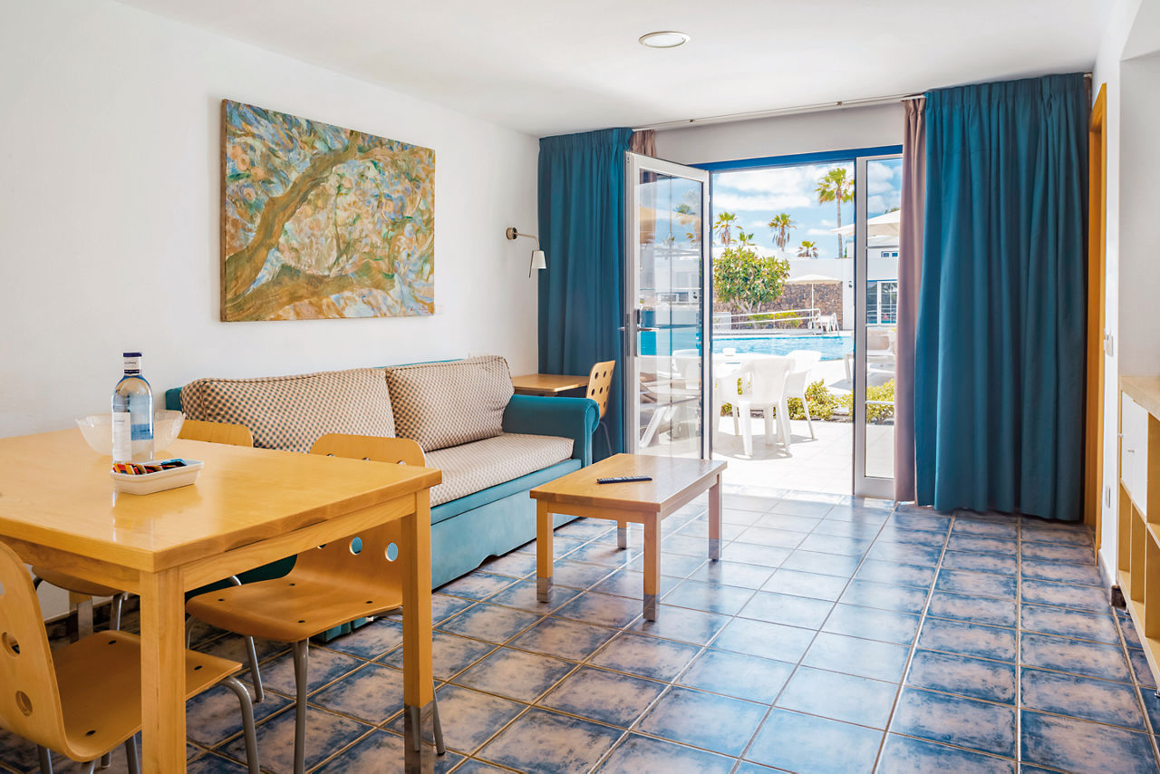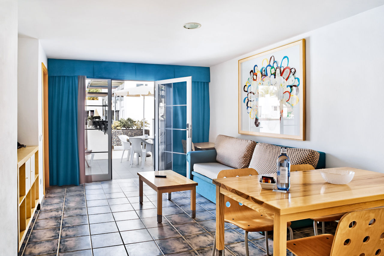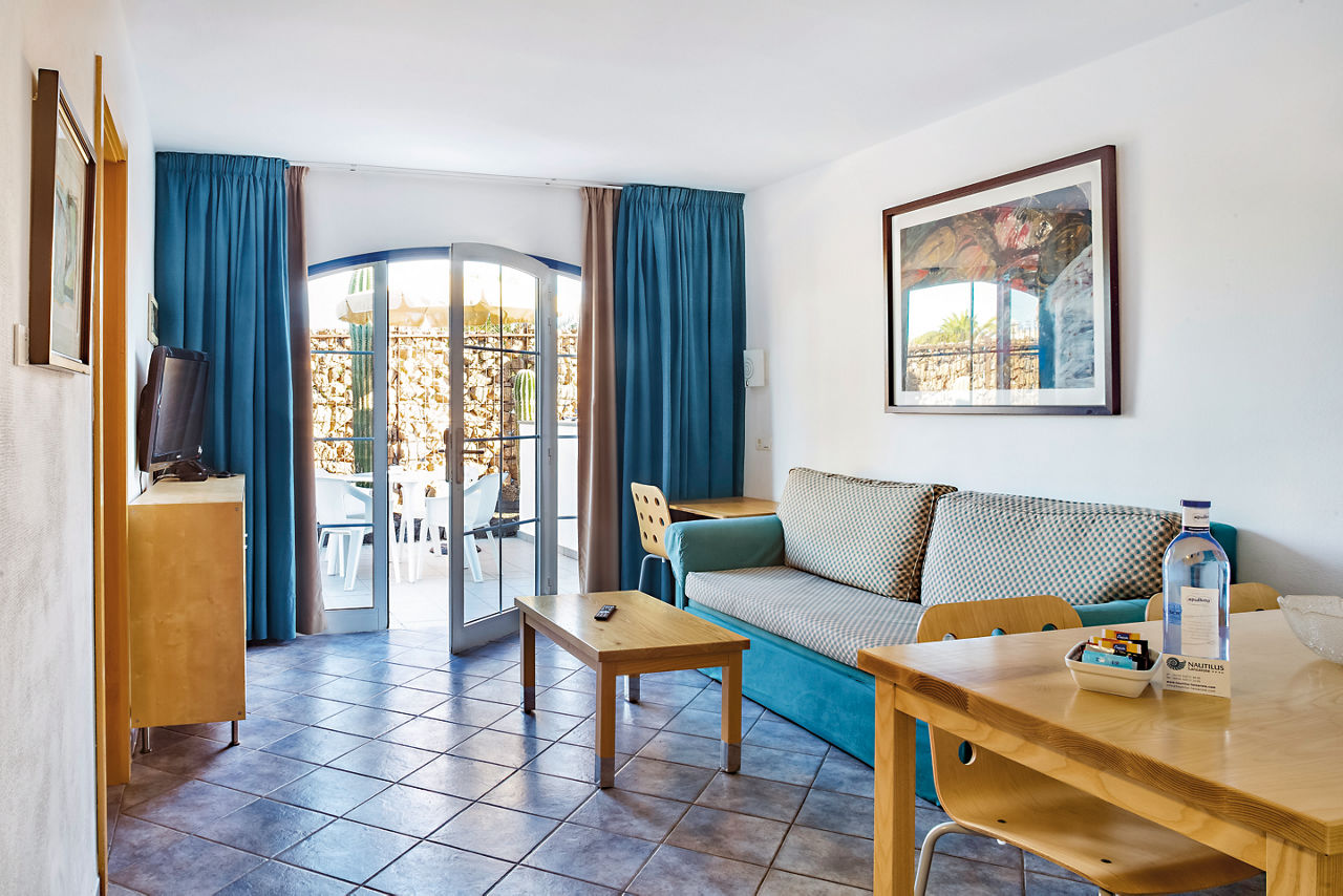 The whitewashed buildings, incredible range of artwork and selection of bright blue pools gives Nautilus Lanzarote a gorgeous Mediterranean feel. Located in Matagorda, on the quiet outskirts of the popular resort of Puerto Del Carmen, this distinctive complex provides a warm and friendly welcome and spacious well-equipped rooms. The grounds are dotted with original pieces of local art and each apartment has been individually designed. This is the perfect choice for those seeking a peaceful and relaxing holiday.One bedroom apartments sleep up to 3 adults and have separate bedroom with twin beds, a sofa bed in the lounge, bathroom with walk-in shower, hairdryer, flat screen TV, kitchen with 2 cooking rings, fridge, toaster, kettle and microwave, and furnished terrace. Two bedroom apartments sleeping up to 4 adults and Two bedroom superior apartments with additional facilities including view, bathroom with walk-in shower and DVD player, are also available. Adapted apartments for guests with limited mobility and services and specific technical assistance are also available on request.