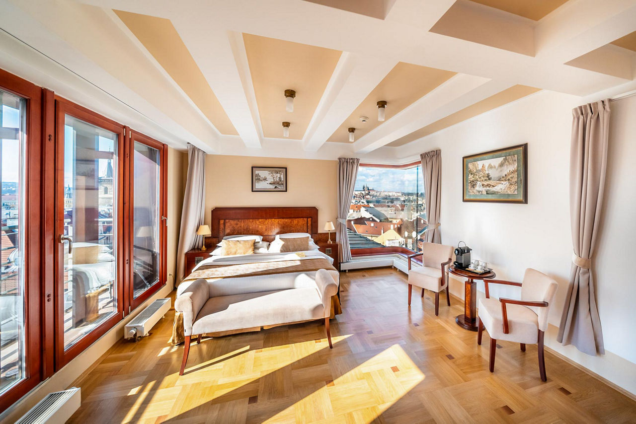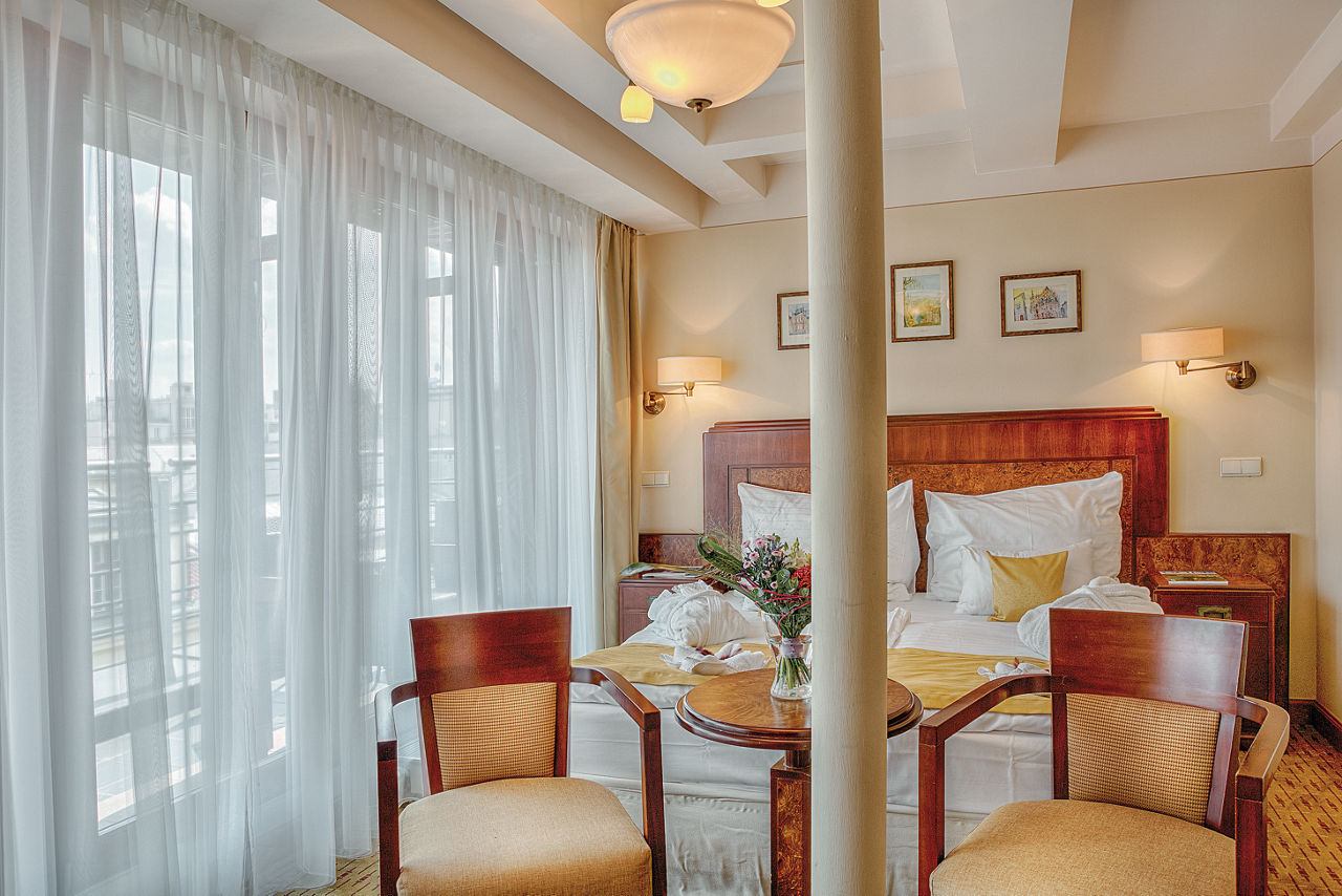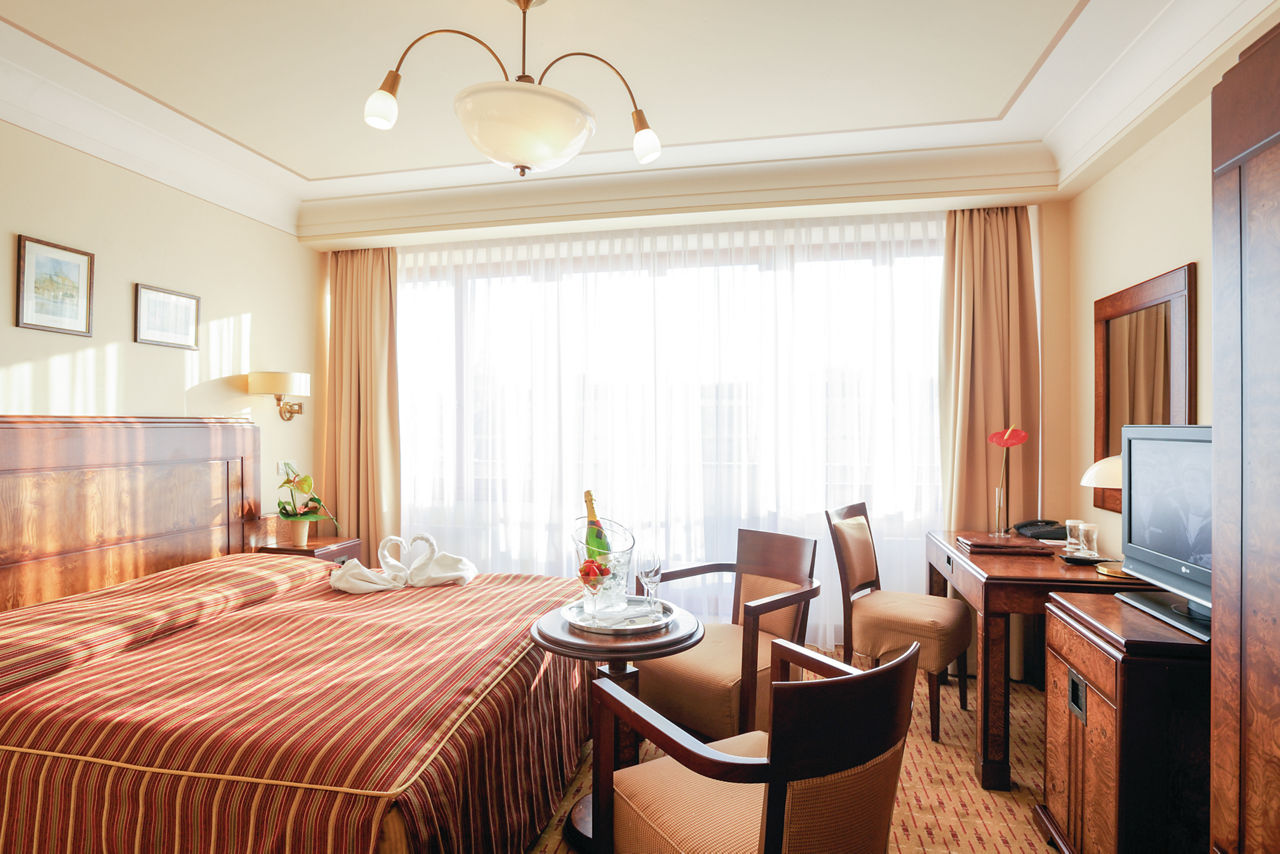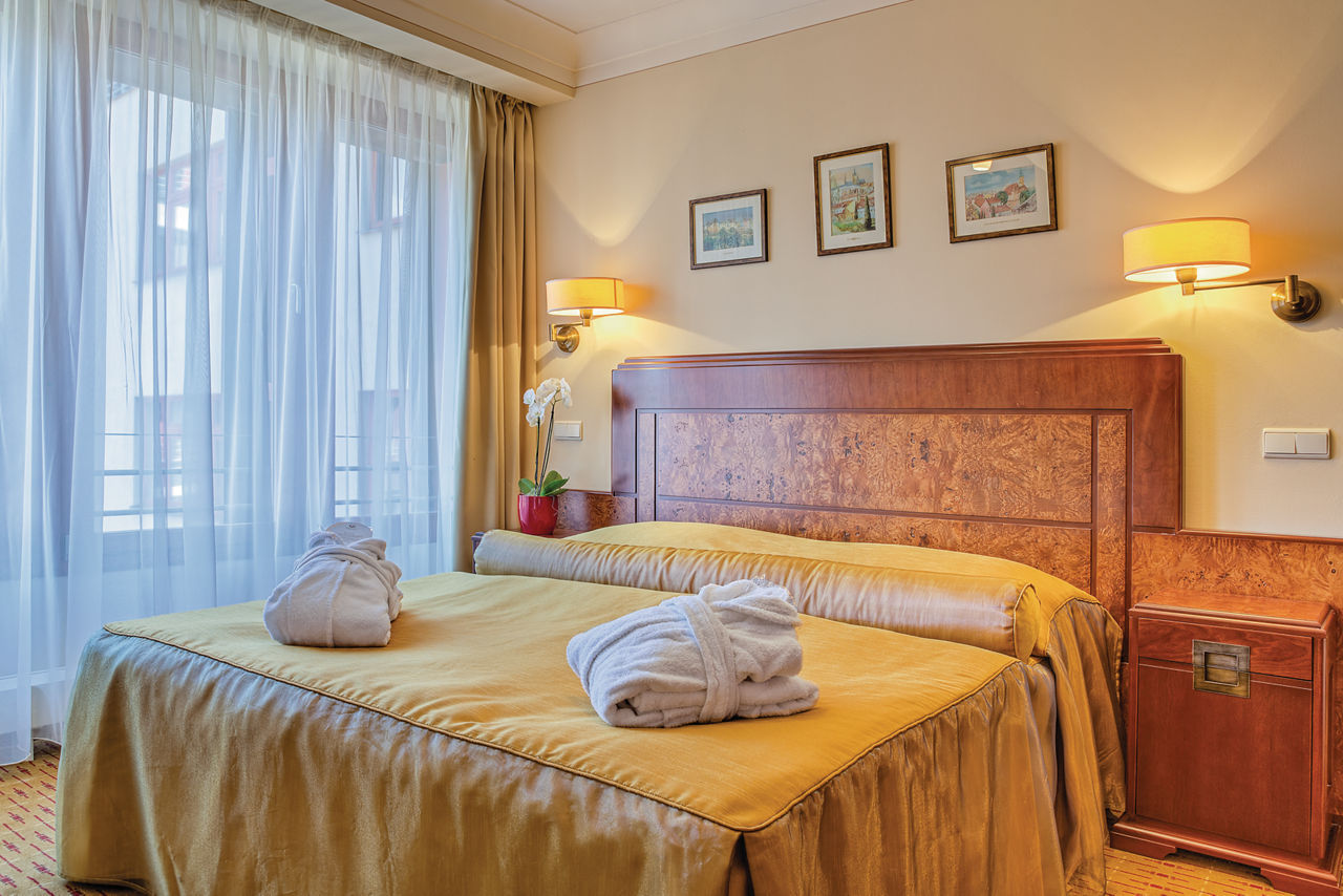 This historical hotel enjoys an idyllic location in Prague and is within walking distance to Wenceslas Square - one of Prague's main attractions. The hotel consists of two interconnected historical buildings with one side featuring more traditional decor and high ceilings while the other side dates back to the beginning of the 20th century with rooms decorated in an art deco style. Guests can be placed in either area of the hotel, however all rooms are equipped with modern amenities. The Majestic Plaza Hotel is an ideal choice for couples, looking for an enjoyable stay in Prague.Standard Double or Twin rooms sleep up to 3 adults and have an en-suite bathroom with shower, hairdryer, air-conditioning, satellite TV, internet access, tea and coffee making facilities, safety deposit box* and mini-bar*. Rooms for sole use are also available.