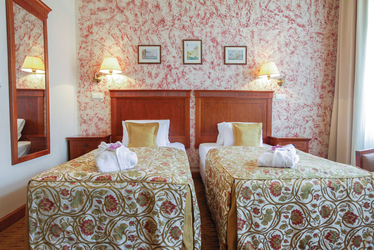 Standard Double or Twin rooms sleep up to 3 adults and have an en-suite bathroom with shower, hairdryer, air-conditioning, satellite TV, internet access, tea and coffee making facilities, safety deposit box* and mini-bar*. Rooms for sole use are also available.