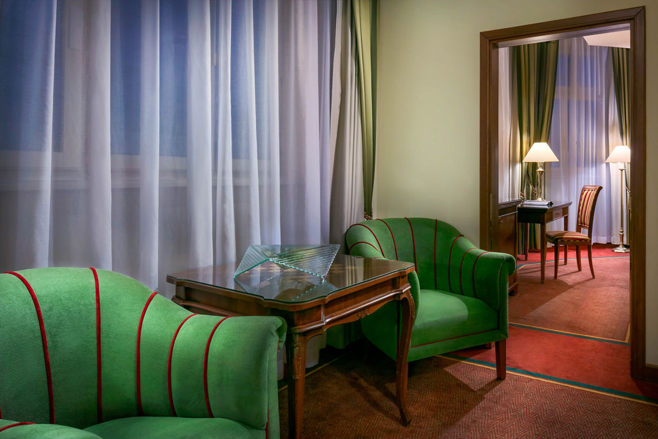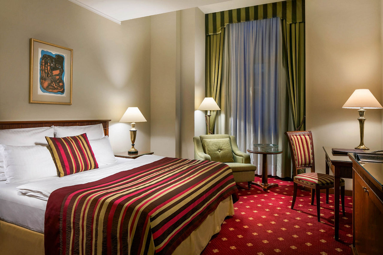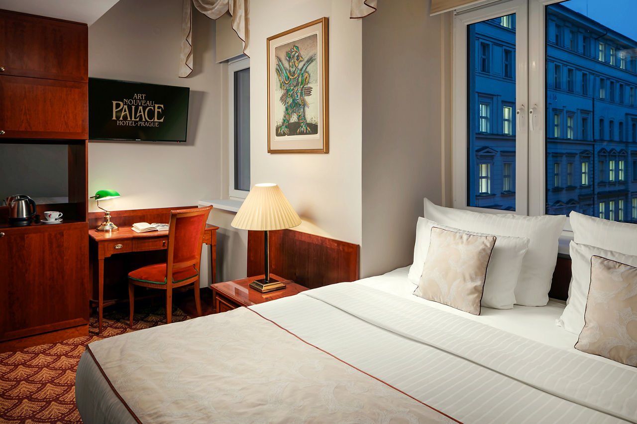 The Art Nouveau Palace Hotel offers quality accommodation in a desirable position on the edge of the Old and New Town in the very heart of Prague. A hotel since 1909, this landmark building retains many of its original fittings and is just a few steps from Wenceslas Square, Old Town Square, shopping areas and the State Opera. This hotel is perfect for guests in search of a central, upmarket establishment brimming with local charm and character.Deluxe Double or Twin rooms sleep up to 3 adults and have bathroom containing a bath or shower, air conditioning (Apr-Oct), hairdryer, television, kettle, mini-bar and safety deposit box. Executive Double or Twin rooms are also available.
