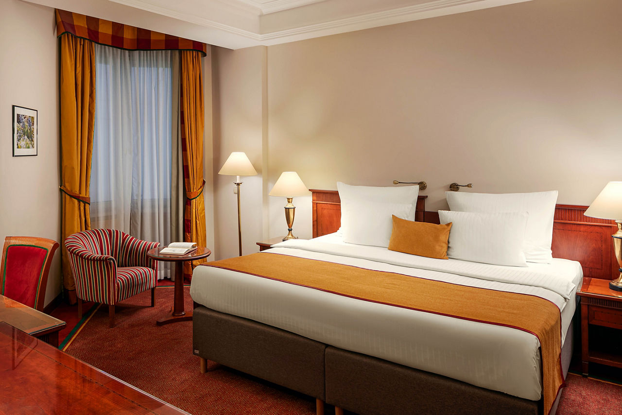 Deluxe Double or Twin rooms sleep up to 3 adults and have bathroom containing a bath or shower, air conditioning (Apr-Oct), hairdryer, television, kettle, mini-bar and safety deposit box. Executive Double or Twin rooms are also available.