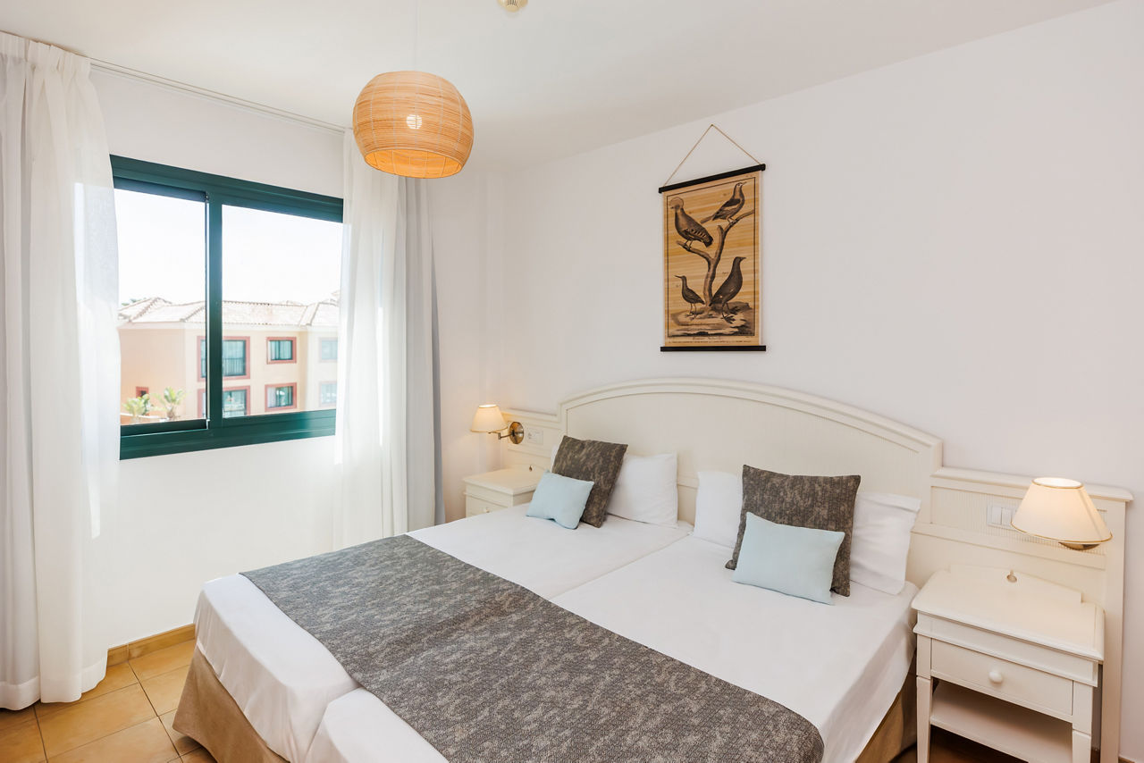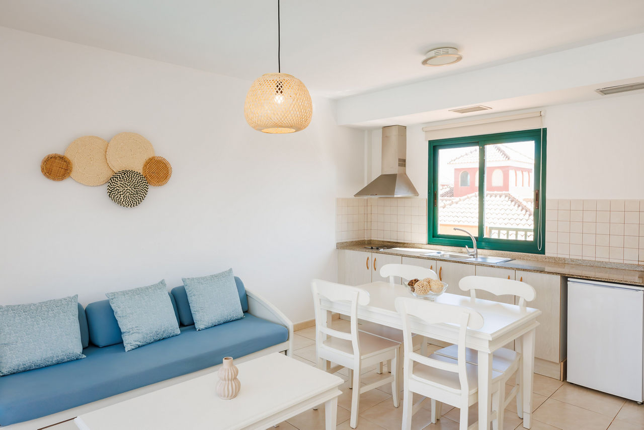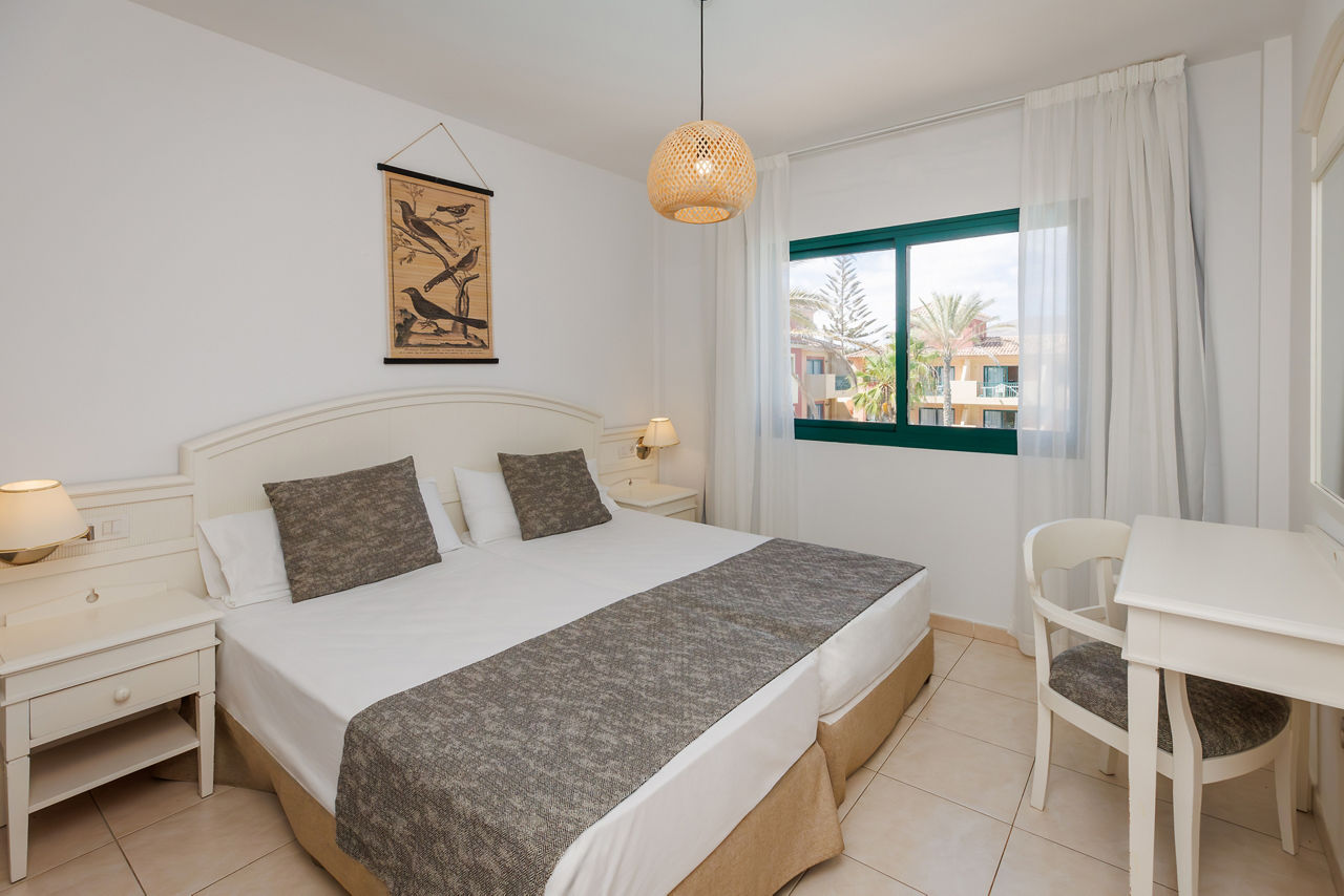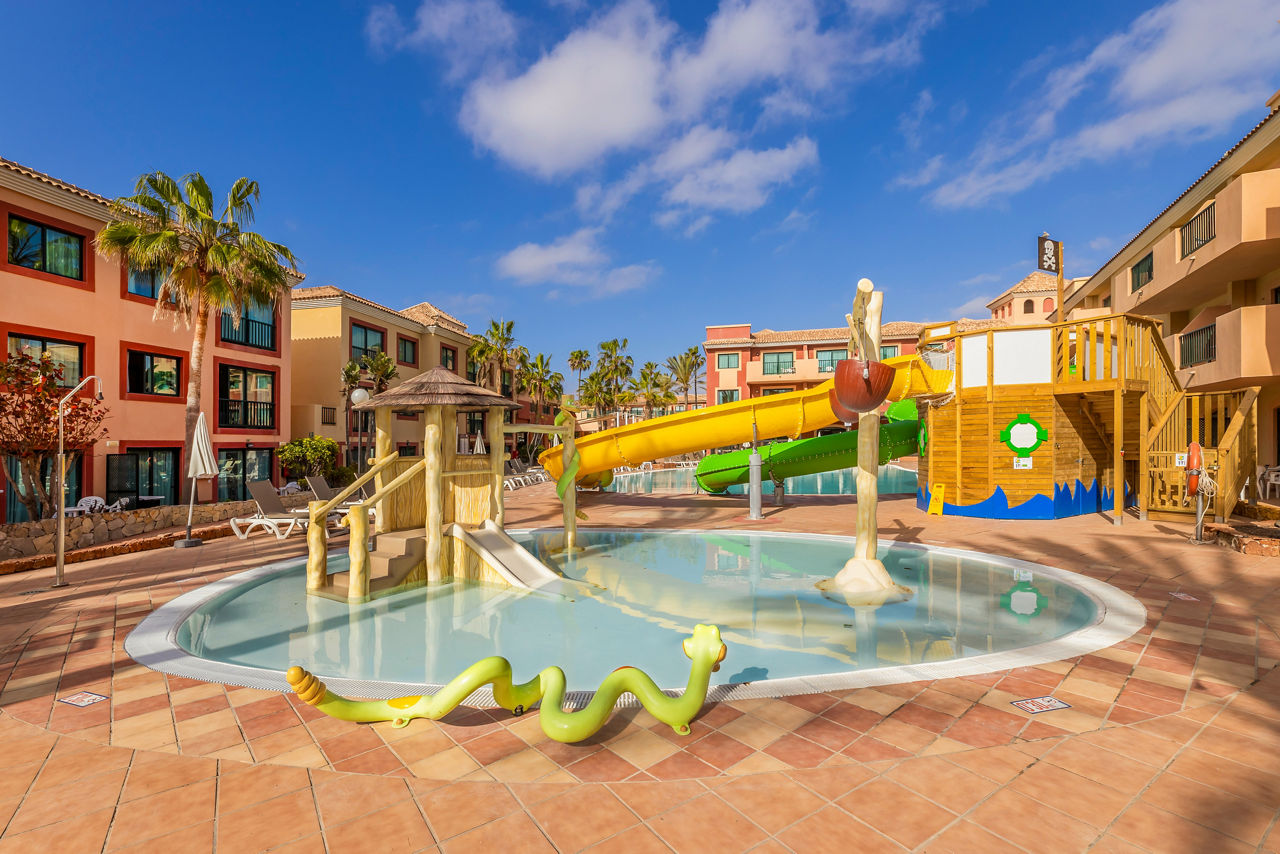 The BLUESEA Aloe Corralejo resort is home to spacious apartments and plenty of activities to keep everyone entertained. Located in the popular resort of Corralejo and offering panoramic views across the Corralejo sand dunes, this complex is great for couples and families wanting a good-value break in Fuerteventura. The 5 pools mean you can have a change of scenery daily, or why not venture to the beach just a short distance away for some sea air?One bedroom apartments sleep up to 2 adults and 2 children and have full bathroom, air- conditioning, satellite TV, kitchenette with 2 cooking rings, kettle* (on request), toaster, fridge and microwave and balcony or terrace. Bed & Breakfast, Half Board and All Inclusive are also available.