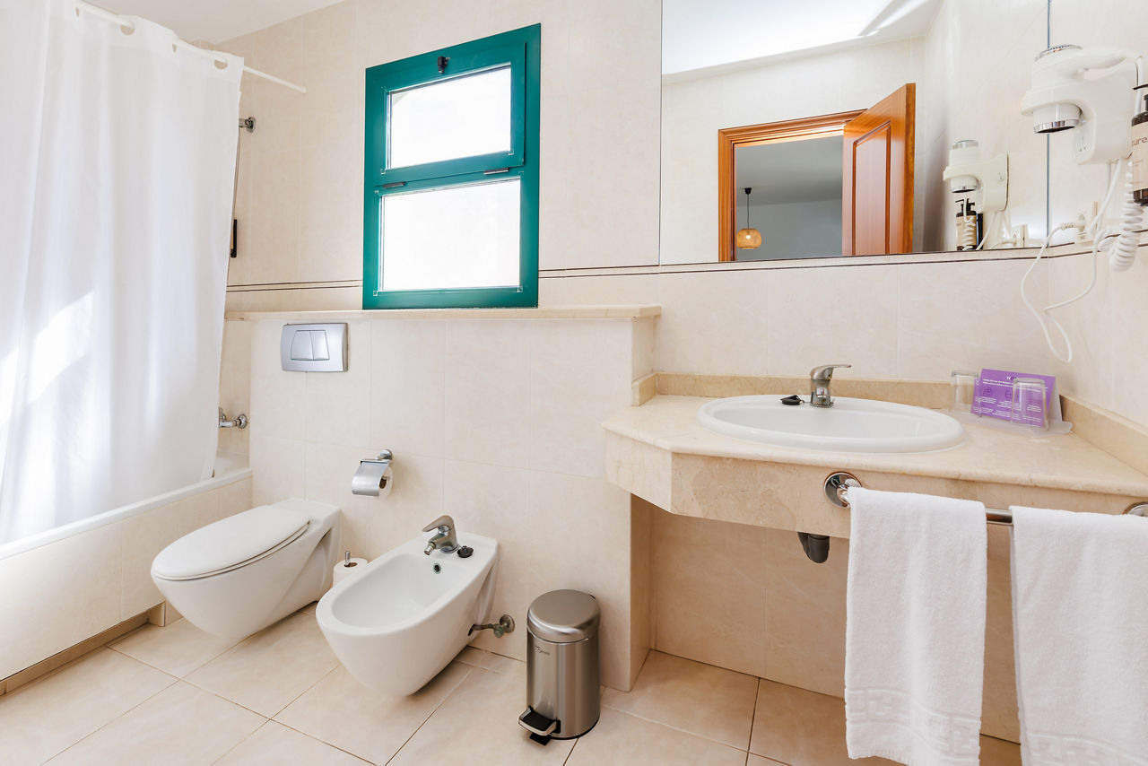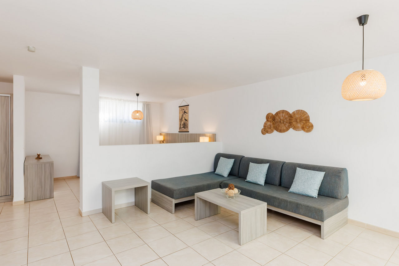 One bedroom apartments sleep up to 2 adults and 2 children and have full bathroom, air- conditioning, satellite TV, kitchenette with 2 cooking rings, kettle* (on request), toaster, fridge and microwave and balcony or terrace. Bed & Breakfast, Half Board and All Inclusive are also available.