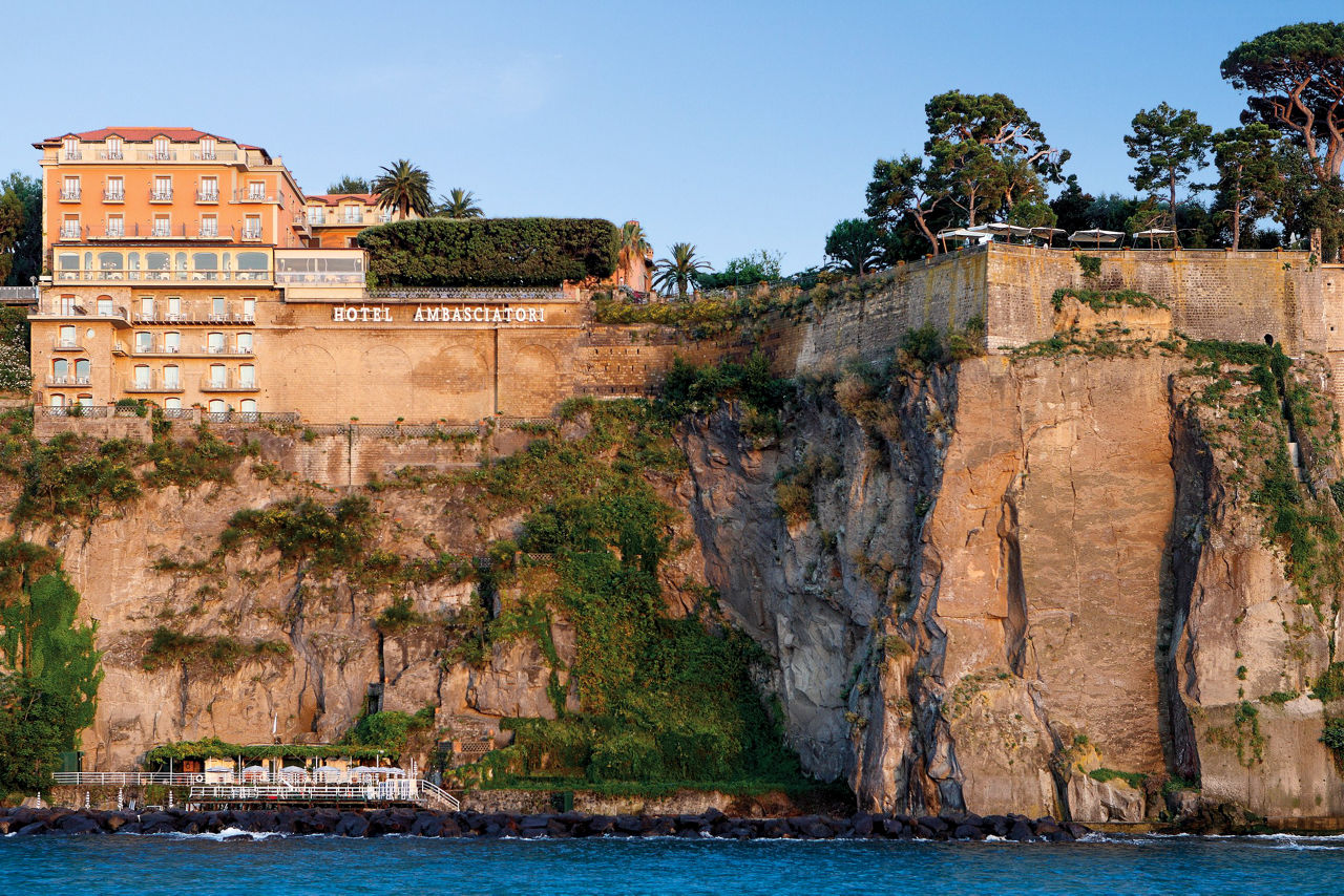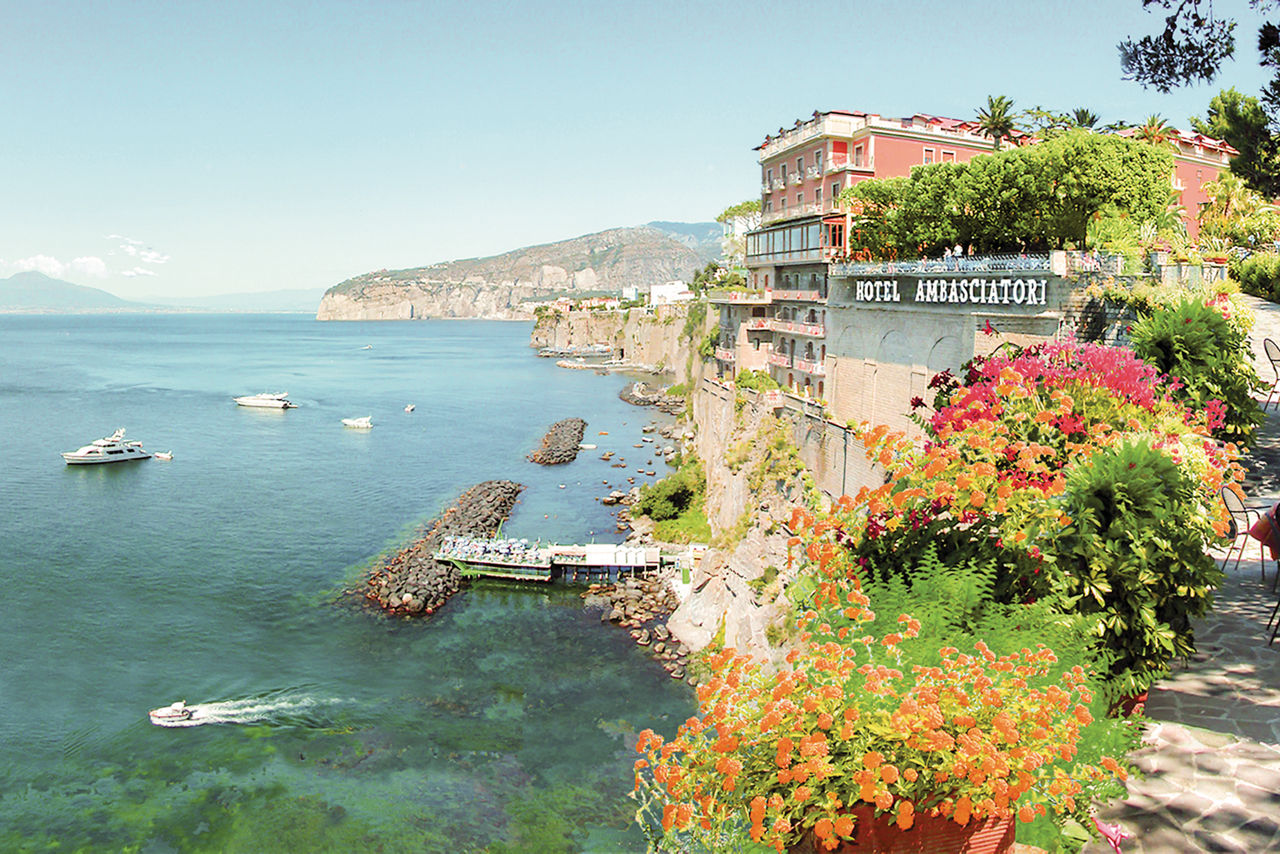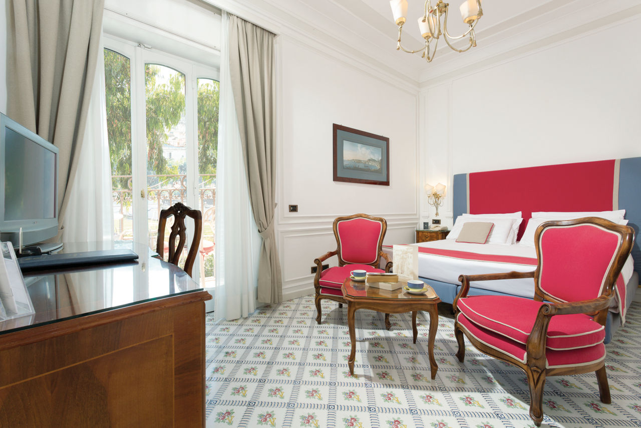 With its prime clifftop location, the Grand Hotel Ambasciatori offers stunning views over the Mediterranean Sea, with the picturesque Bay of Naples and Mount Vesuvius in sight. Surrounded by orange and lemon trees, the hotel is also located in a pretty subtropical park. At the bottom of the cliff, there is a remote beach area which can be accessed via a lift in the summer months. The rooms are stylish, yet laced with traditional Italian charm. You will be spoilt here with the facilities on offer, including a pool with hydro massage jets, a lunchtime grill bar and a restaurant serving buffet breakfast and a la carte dinner.Double or Twin rooms with Side Sea View sleep up to 3 and have bathroom containing a bath with shower attachment, air conditioning (15 May - 15 Oct), minibar*, kettle, hairdryer, flat screen television, safety deposit box and balcony or terrace. Room upgrade options are also available.