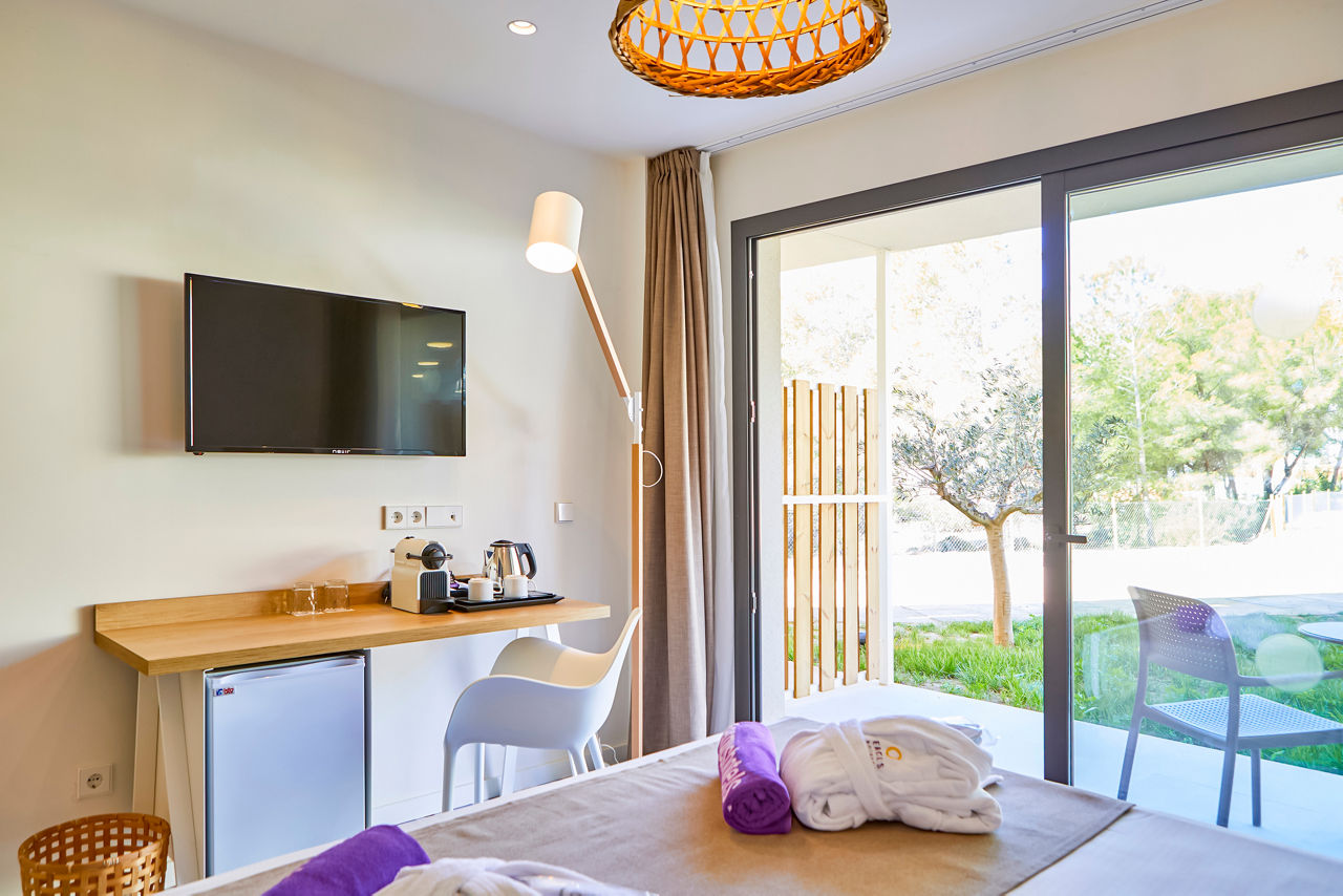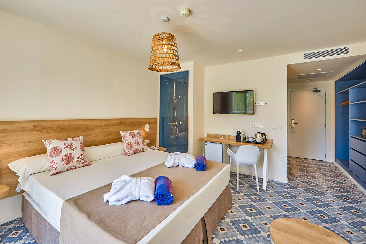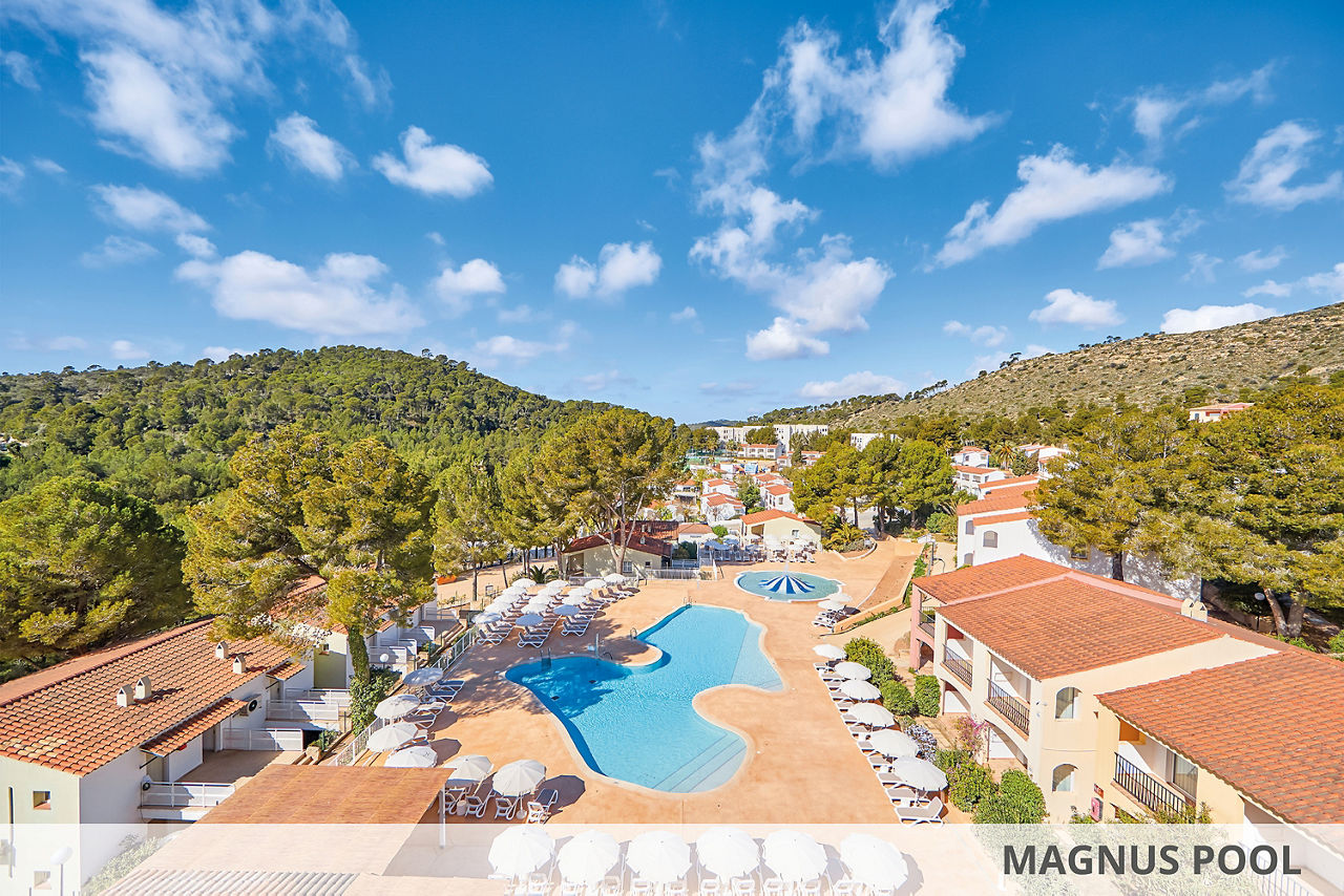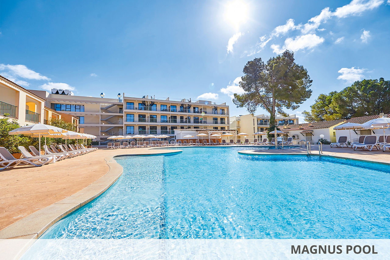 If you?re looking for family fun in the sun, this is just the ticket. Surrounded by a pine forest, the village-style complex has something for every holidaymaker. You?ll find a splash park with waterslides for the little ones, and a great All Inclusive offering. You?ll be close to Paguera resort, if you can peel yourself away from the pools and daily entertainment programme. For those seeking a something extra, the MAGNUS complex offers upgraded rooms, access to the MAGNUS pool and bar, and a games console in the room for the kids.Double rooms sleep up to 3 adults and have bathroom containing a shower, air conditioning, hairdryer, flat screen television, Wi-Fi, safety deposit box* and balcony or terrace. Room upgrade options and Sole Use rooms are also available.