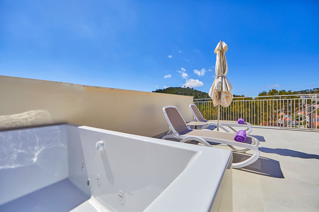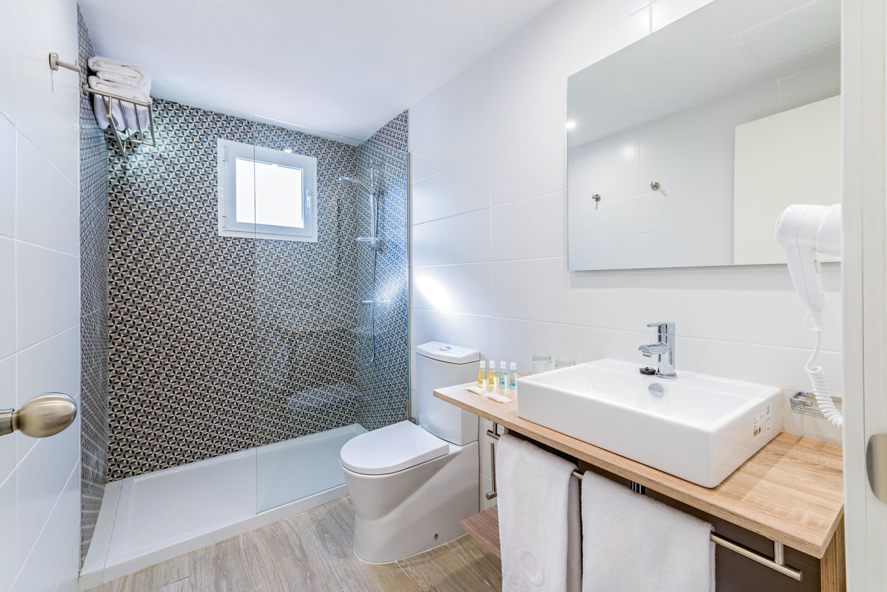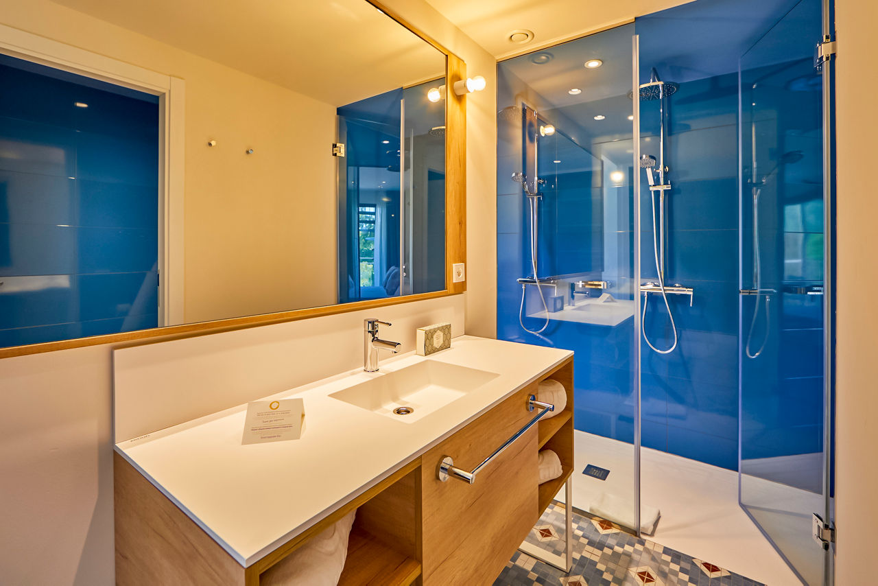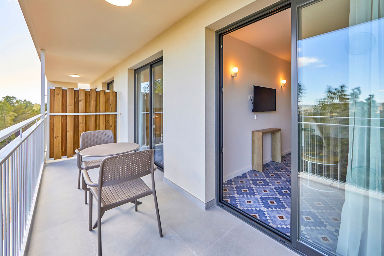 Double rooms sleep up to 3 adults and have bathroom containing a shower, air conditioning, hairdryer, flat screen television, Wi-Fi, safety deposit box* and balcony or terrace. Room upgrade options and Sole Use rooms are also available.