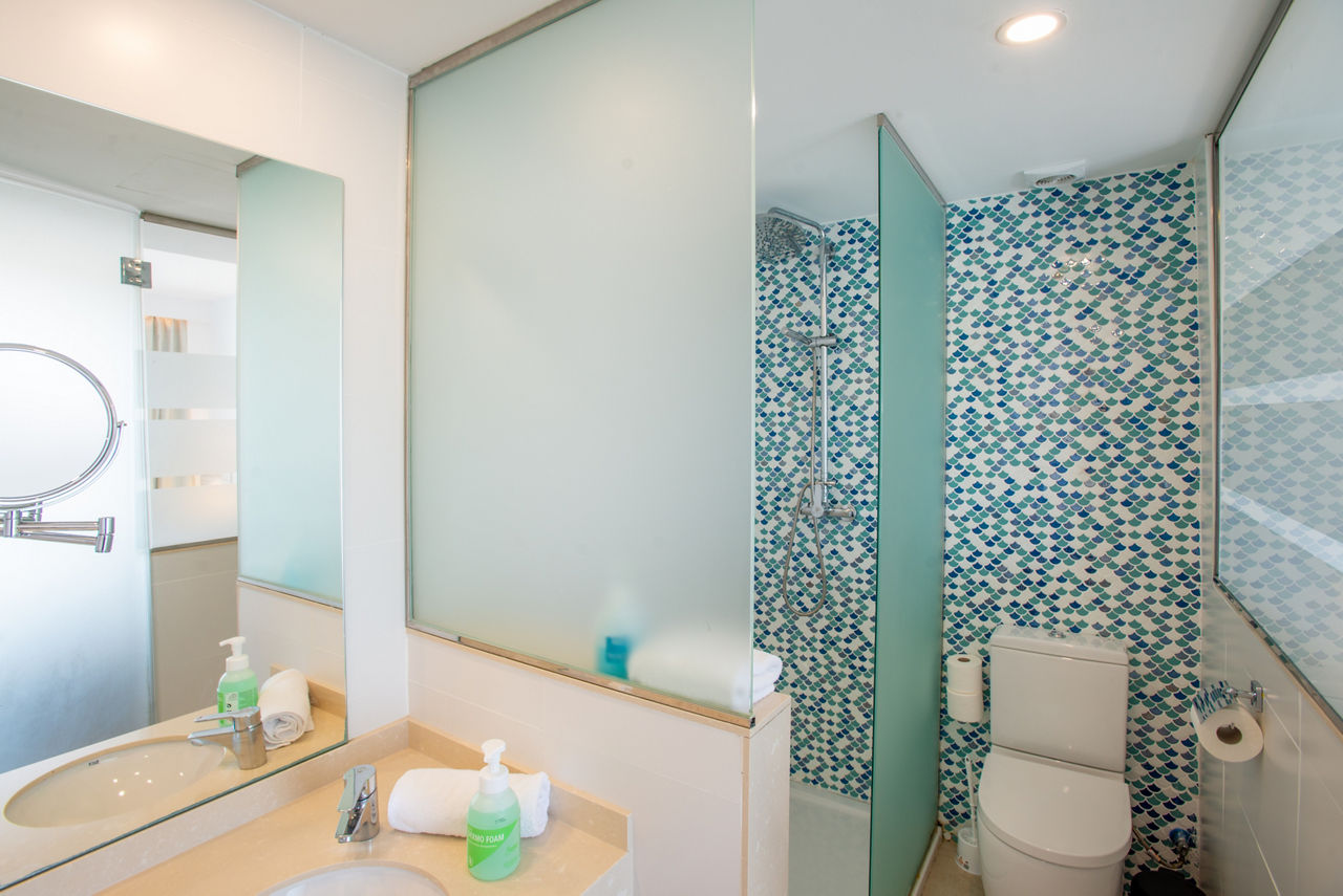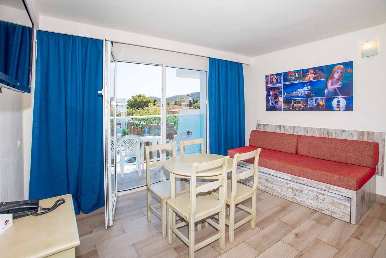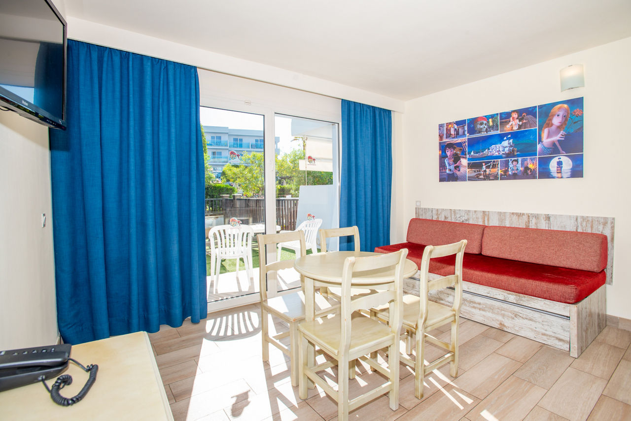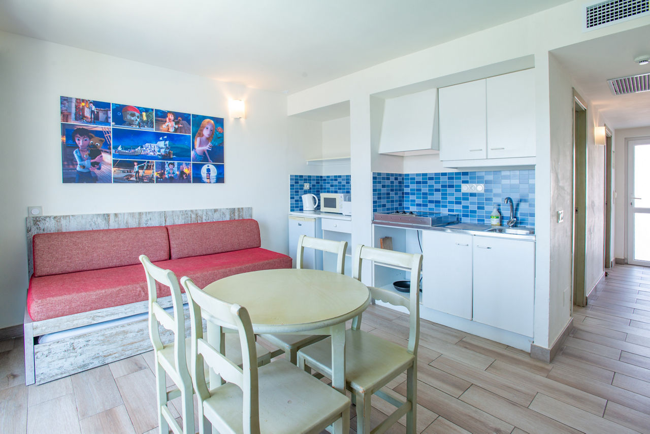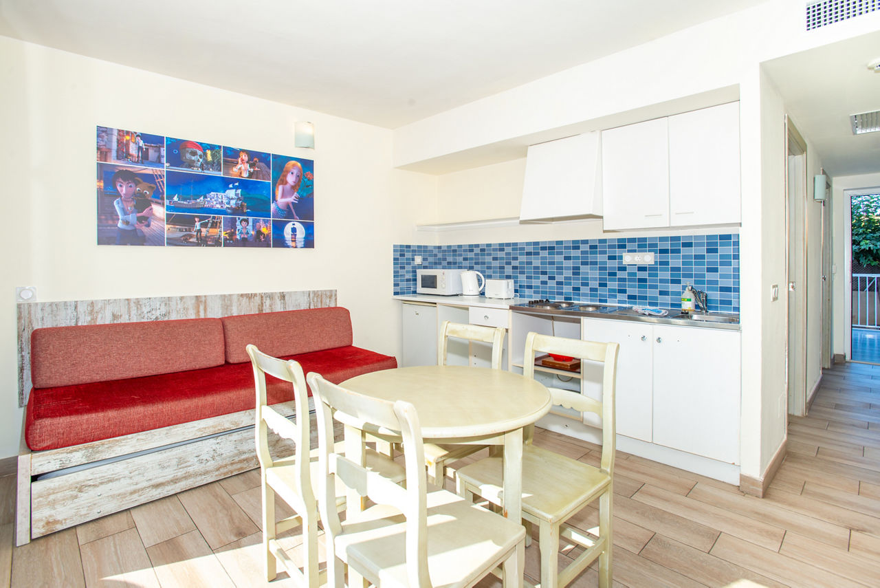Superior One Bedroom apartments sleep up to 2 adults and 2 children and have bathroom containing a shower, air conditioning, hairdryer, flat screen television, double cooking rings, fridge, kettle, microwave, toaster, safety deposit box*, free Wi-Fi and balcony or terrace. Pirate Themed One Bedroom apartments sleeping up to 2 adults and 2 children and One Bedroom apartments with Large Terrace are also available.