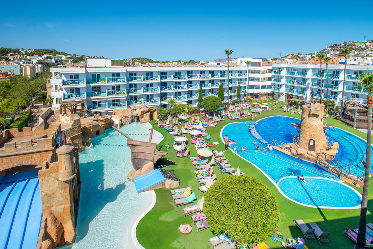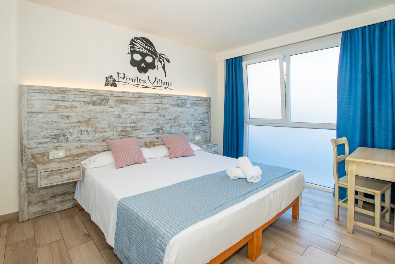 Take the helm for a thrilling family holiday at Pirates Village! This pirate-themed hotel is endlessly fascinating as you enter a fantastical world of fortresses, caverns and waterfalls. Here, any aspiring pirate will feel like a bounding buccaneer as they take part in pirate games and protect the pool from the enemy's attacks! Plus, with the weekly pirate show providing action-packed fights, lights and fireworks, even grown-ups will be impressed. Become a pirate, give the kids an unforgettable holiday, and unleash your inner child at Pirates Village!Superior One Bedroom apartments sleep up to 2 adults and 2 children and have bathroom containing a shower, air conditioning, hairdryer, flat screen television, double cooking rings, fridge, kettle, microwave, toaster, safety deposit box*, free Wi-Fi and balcony or terrace. Pirate Themed One Bedroom apartments sleeping up to 2 adults and 2 children and One Bedroom apartments with Large Terrace are also available.