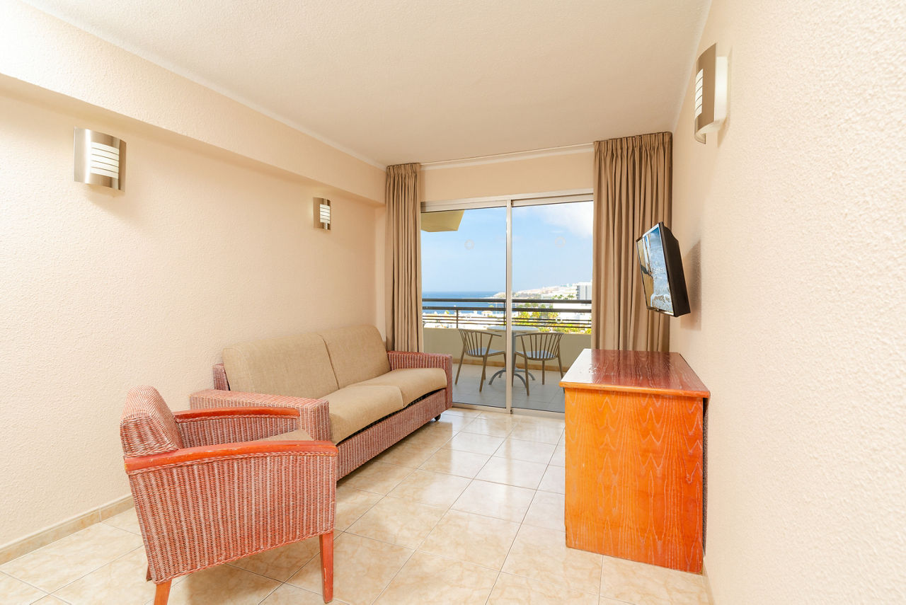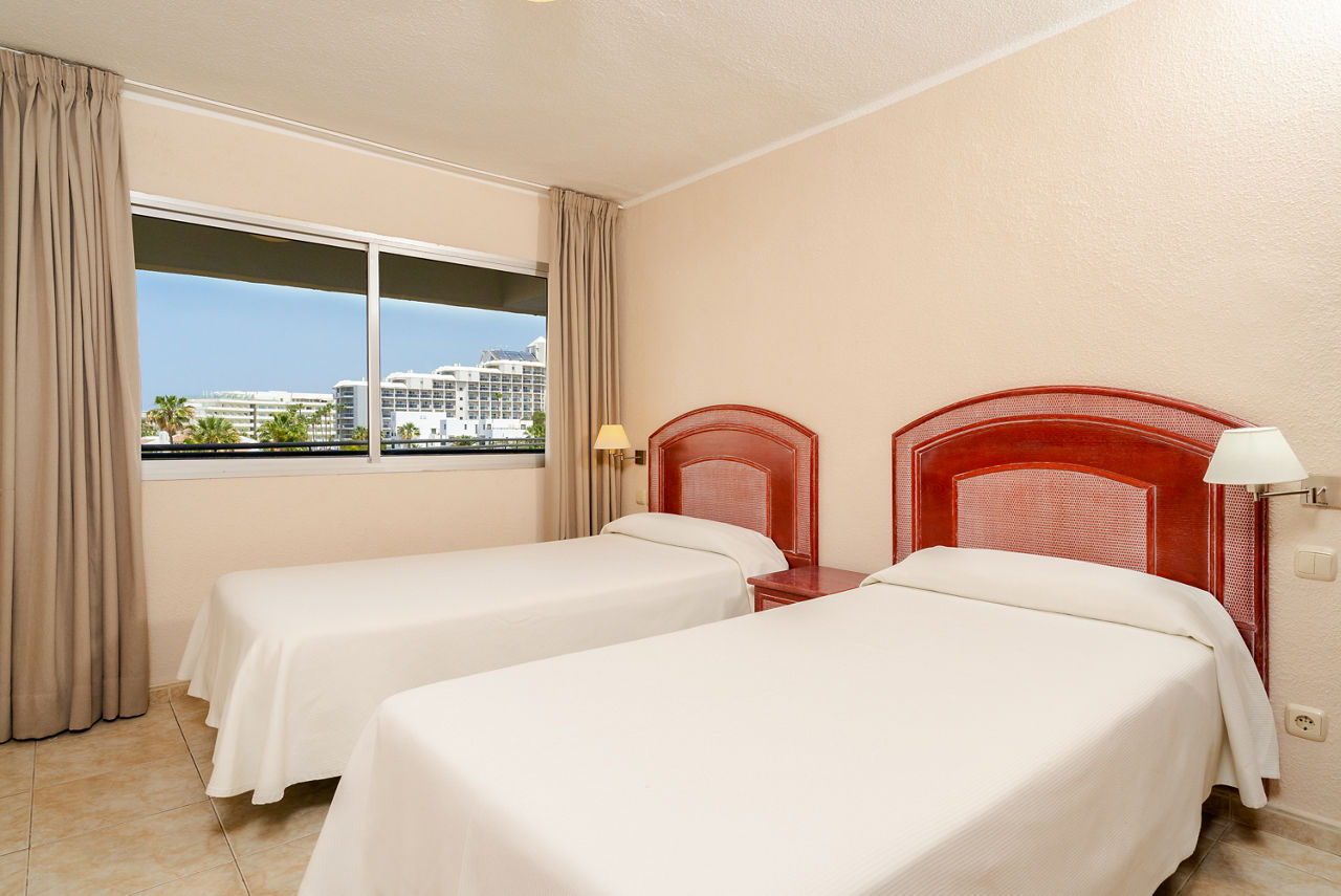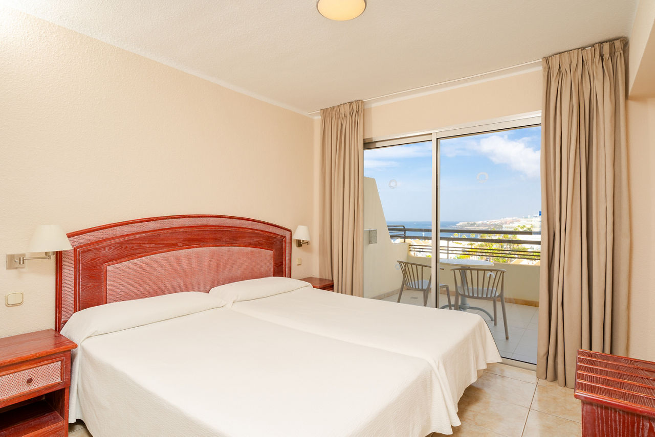 Studio rooms sleeping 2 adults have bathroom with bath/shower, fully equipped kitchen with fridge, satellite TV, telephone and a balcony. One bedroom apartments are also available. Please note that Promo rooms are situated on lower level floors accessed via stairs and are without view.