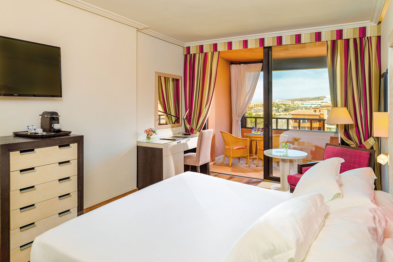 Double rooms sleep up to 3 adults and have bathroom with bath or shower, air conditioning, hairdryer, fridge and balcony or terrace. Double rooms with Sea View, Family rooms, Superior Double rooms with Pool View, Junior suites and Double rooms for Sole Use are also available. Double Privilege rooms sleep up to 3 adults and have bathroom with bath or shower, air conditioning, flat screen television, fridge, bathrobes & Slippers, coffee machine, sunbeds and balcony or terrace. Privilege room guests also have access to a chill out terrace with whirlpool, Balinese beds and bar, a privilege lounge with open bar, daily newspapers, television and free internet access, a la carte breakfast and dinner (board basis dependent) in the a la carte La Tosca restaurant, free access to the Spa, and a late check out (subject to availability).