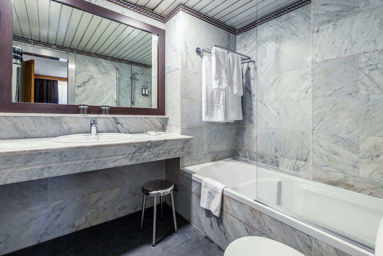 Classic double rooms sleep 3 adults or 2 adults and 1 child and have bathroom containing a bath with shower attachment, air conditioning, hairdryer, television, safety deposit box and balcony or terrace. Room upgrade options and Sole Use rooms are also available.