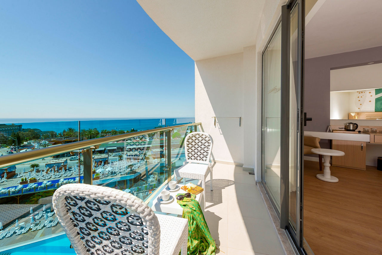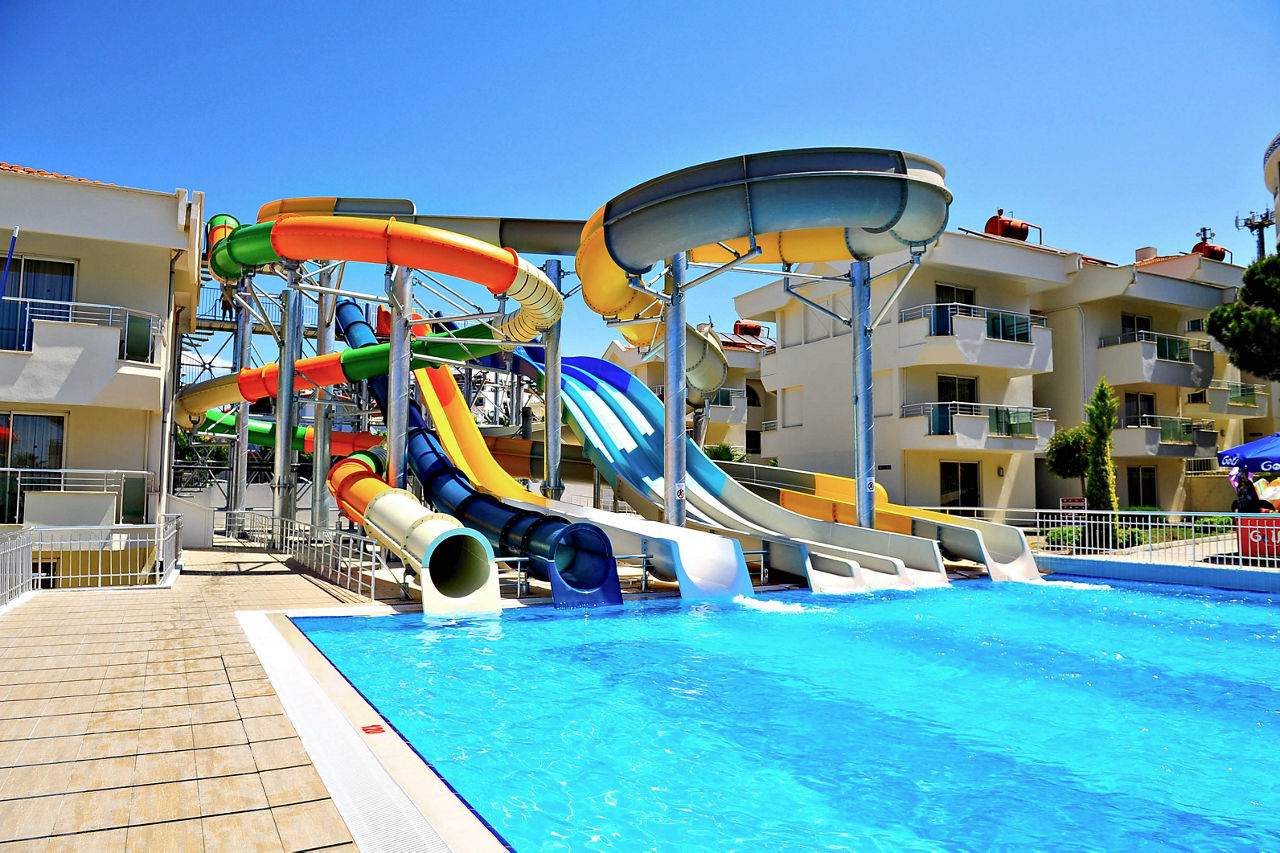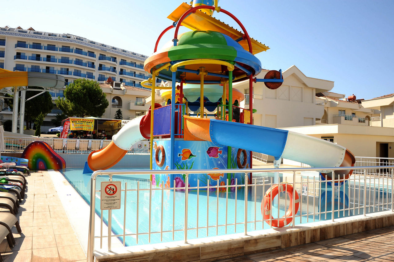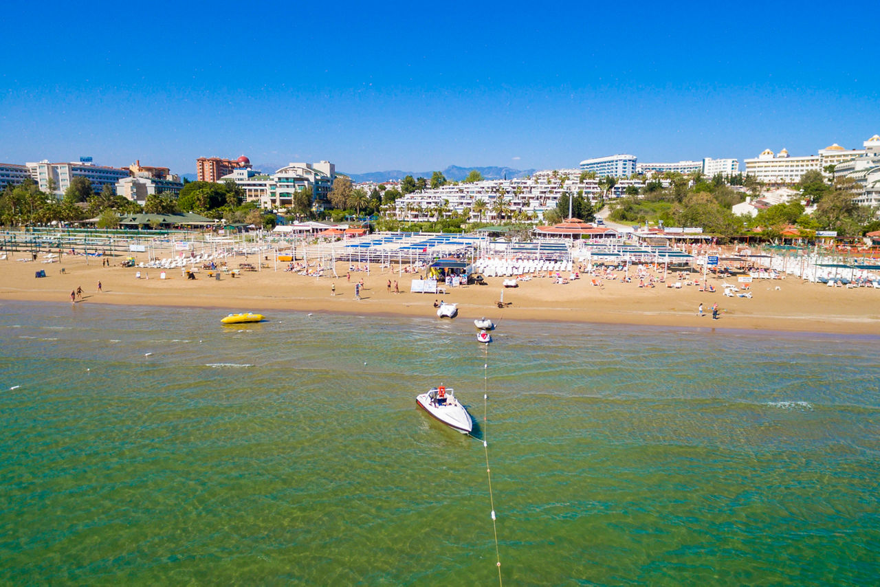 350m from the beach with private section. 5km from Side resort centre. Complimentary bus to the beach daily.Complete Booking