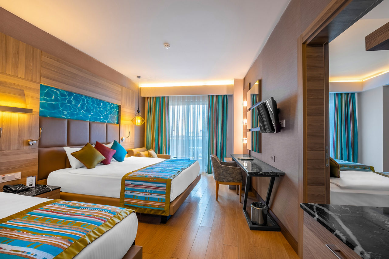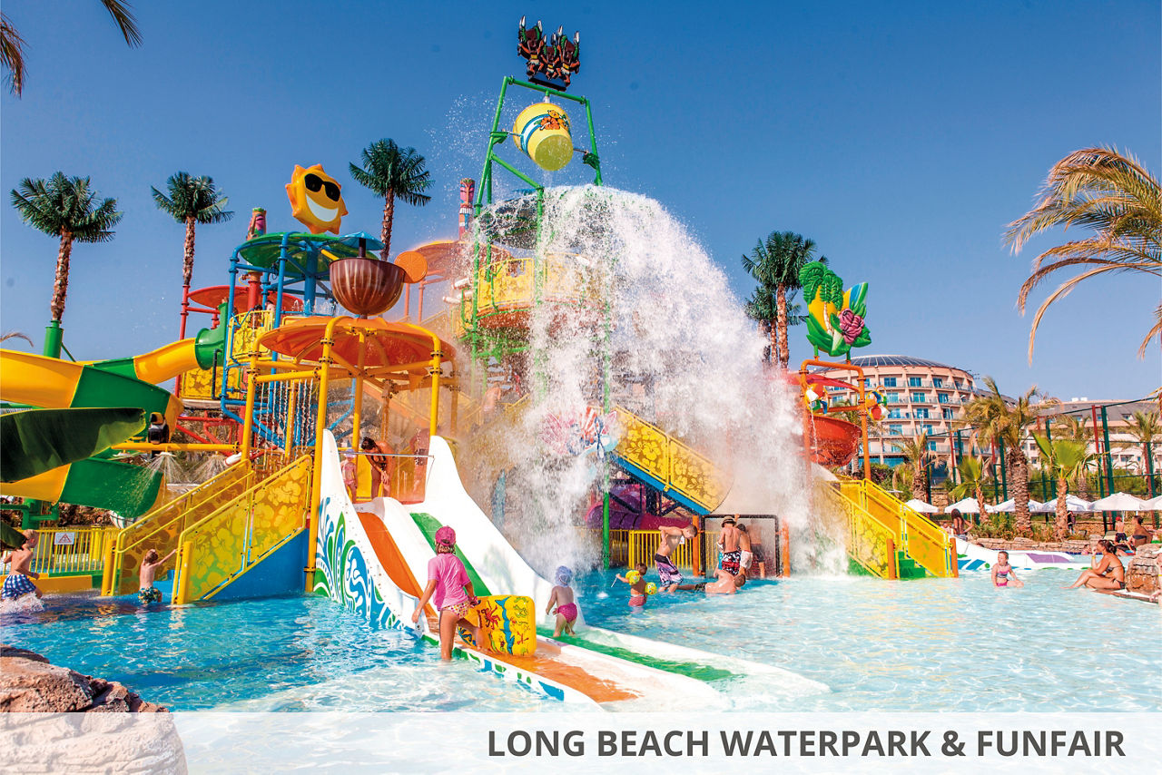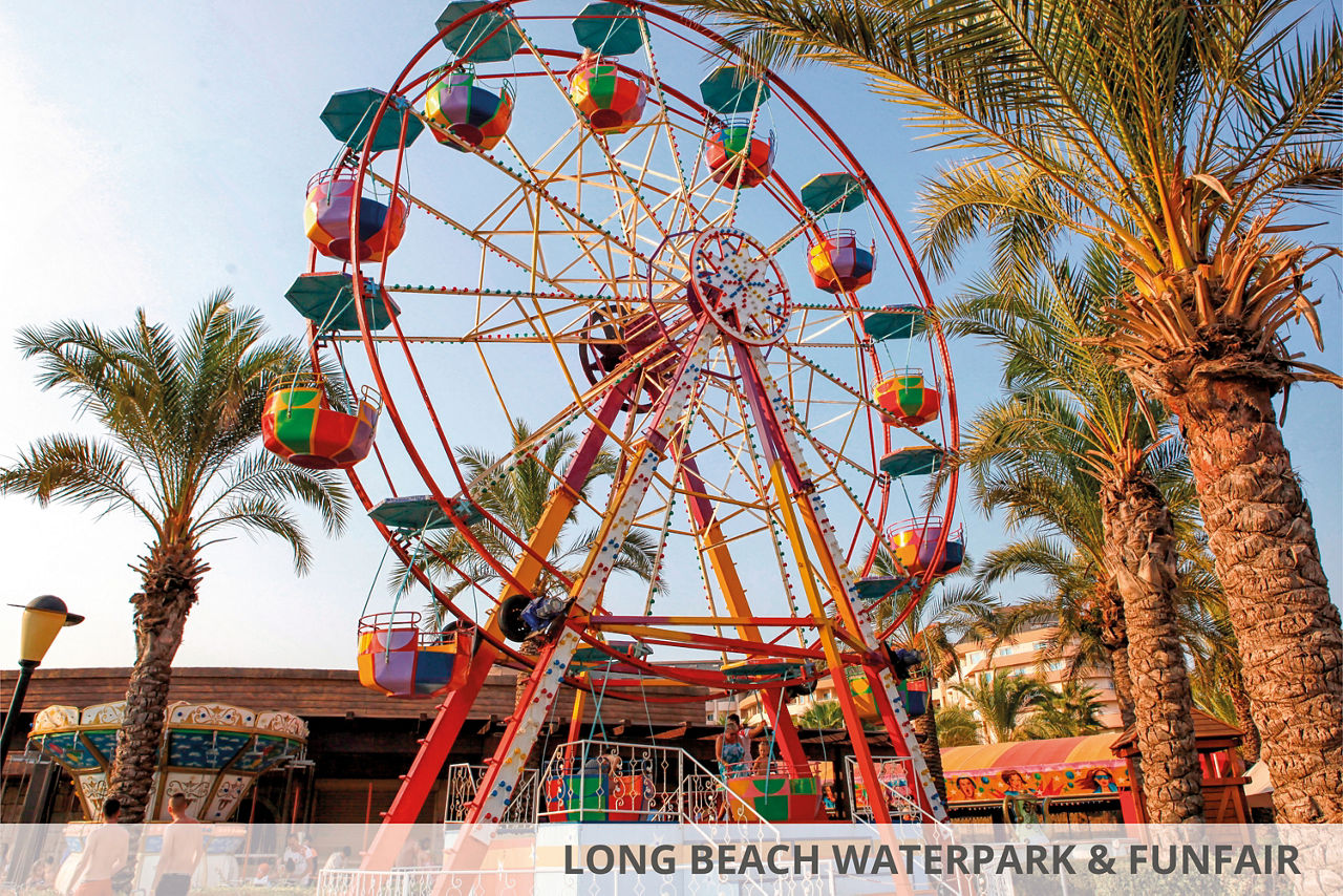 The Magnificent Long Beach Hotel Alanya is a true paradise of family fun and adventure! With an impressive selection of spacious family rooms, villas, and suites, comfort is guaranteed for every guest. You?ll be spoiled for choice with numerous bars and restaurants serving a wide variety of delicious meals and refreshing drinks. That?s not all - guests also enjoy UNLIMITED access to the thrilling Long Beach Waterpark and Funfair! Perfect for both children and adults, this vibrant attraction offers everything from exhilarating slides and rides to classic funfair favourites such as bumper cars, tea cups, and a Ferris wheel. The All Inclusive package is the perfect way to explore authentic Turkish cuisine, while the extensive drinks selection keeps you refreshed throughout the day. Long Beach Hotel Alanya truly has something for everyone!