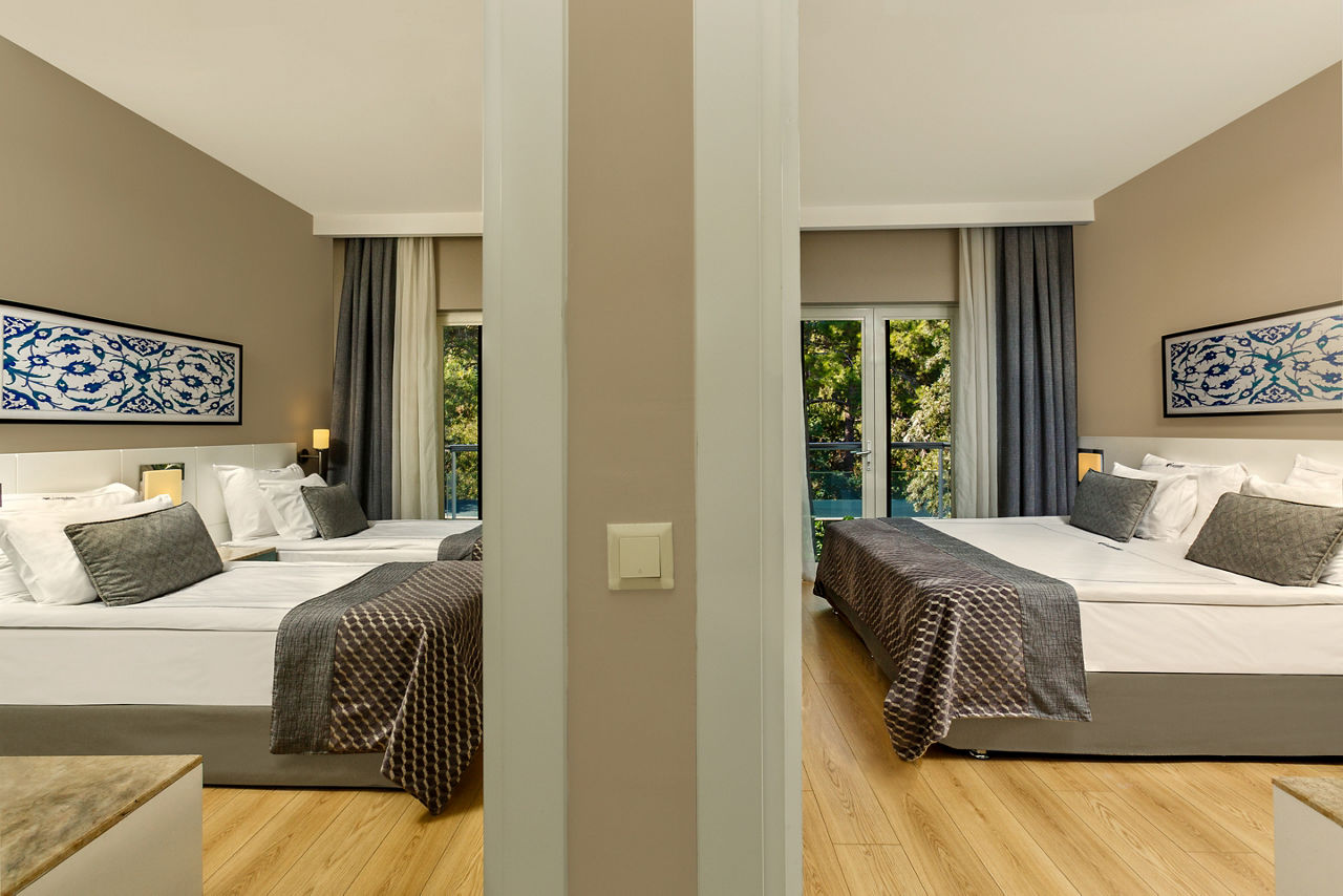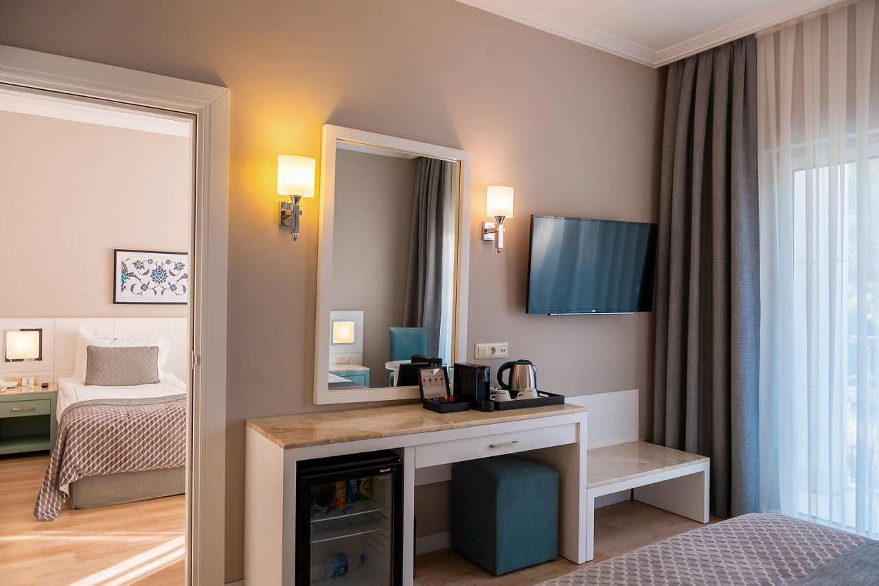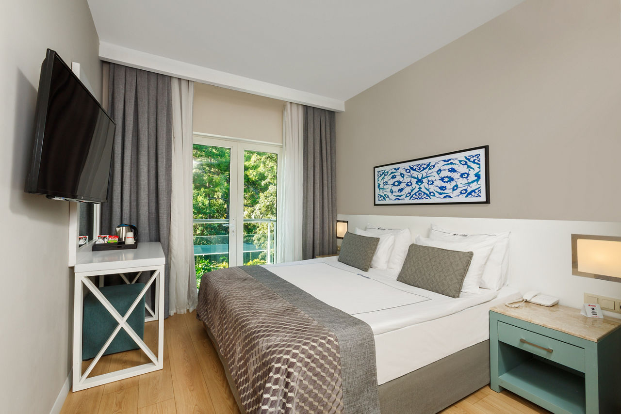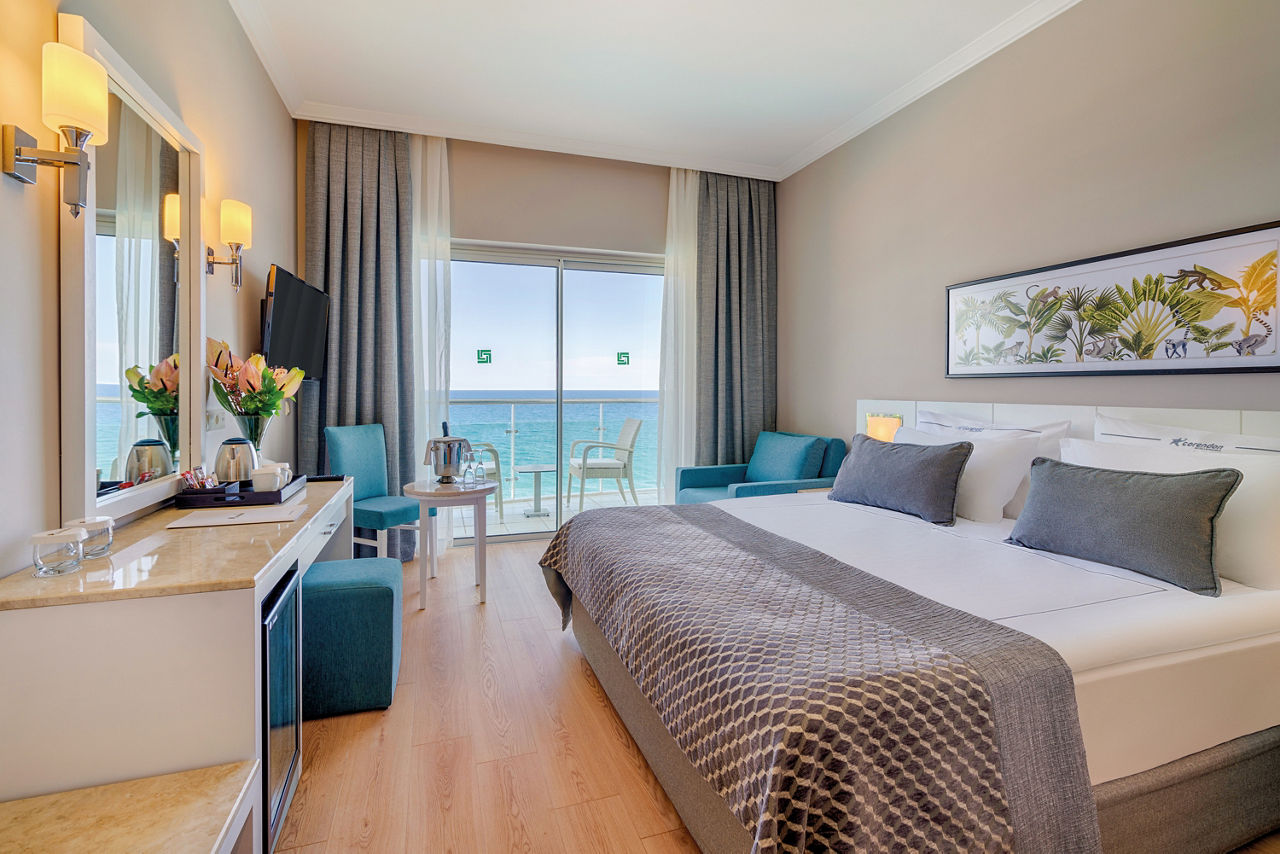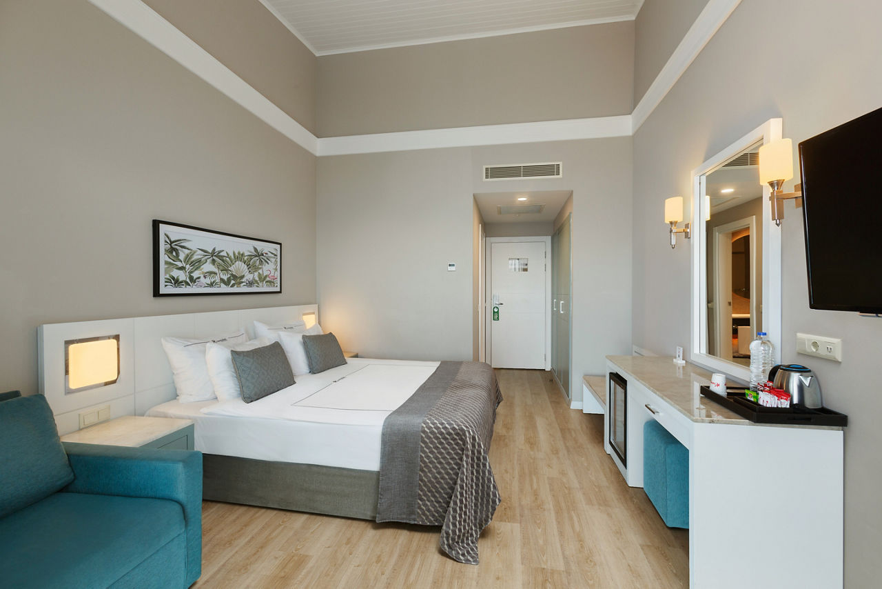 Corendon Playa Kemer is a beachfront beauty with a stunning backdrop of mountains in the leafy area of Beldibi. First impressions here will not disappoint, with beautiful panoramic sea views and a fresh and modern look throughout. The pool area is just a few steps away from the soft sands and crystal-clear waters of the Mediterranean Sea. Relish in relaxation at the spa, enjoy the upbeat entertainment by the pool, or simply stretch out under the warm sun on the pier with a cool drink in hand.Standard Double or Twin rooms sleep up to 3 adults and have bathroom, air conditioning, hairdryer, television and balcony.