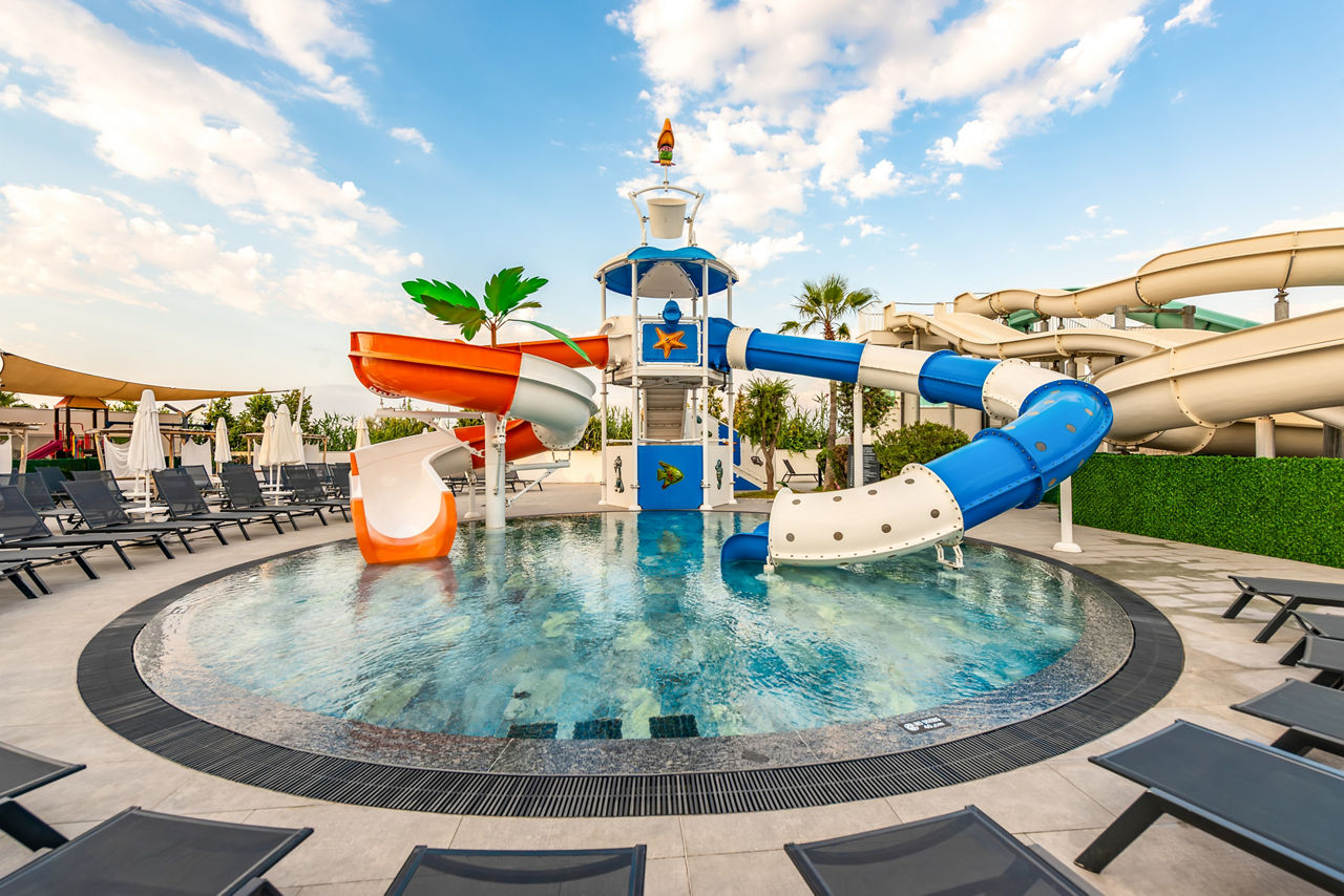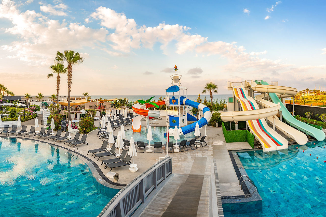 Outdoor pool with water slides. Children?s pool with slides. Indoor pool.Complete Booking