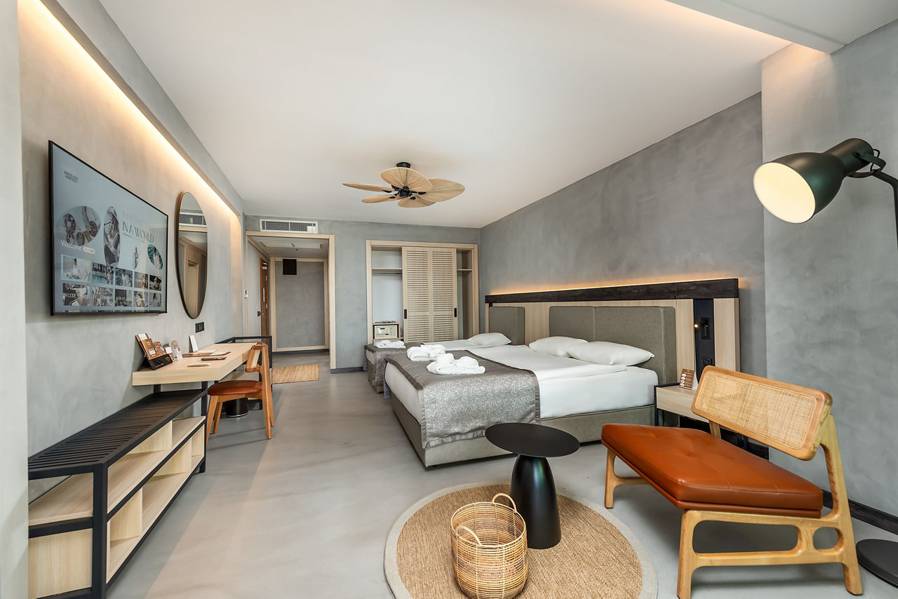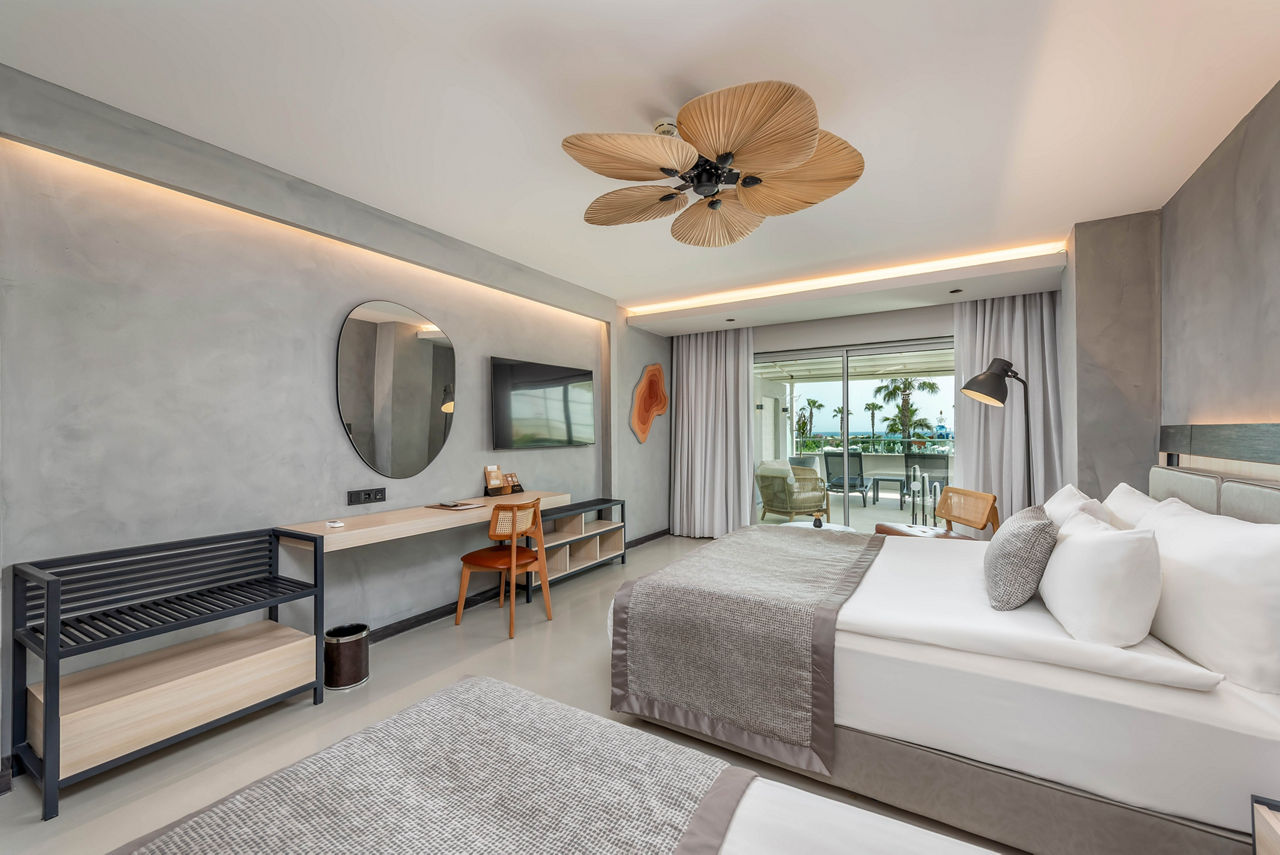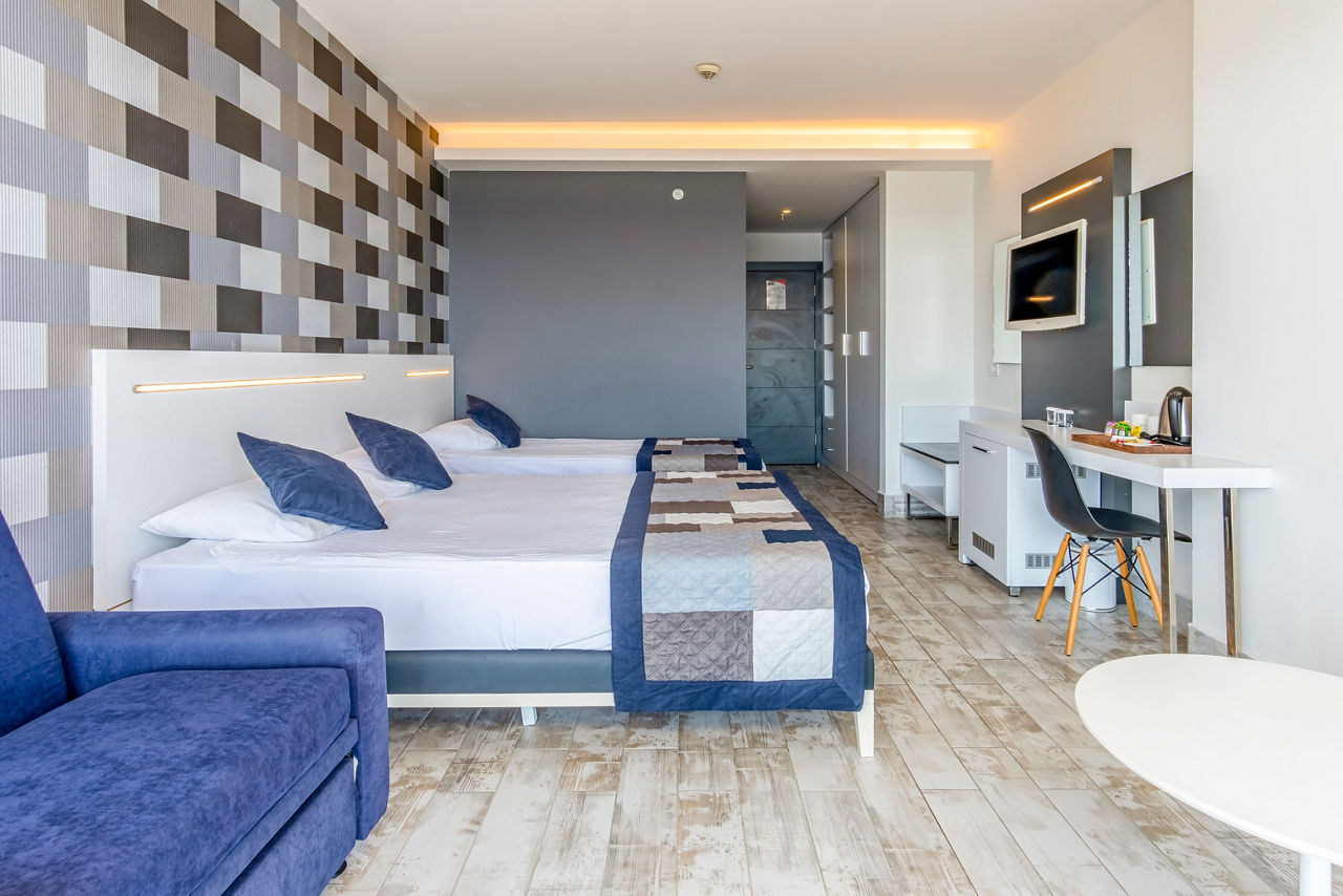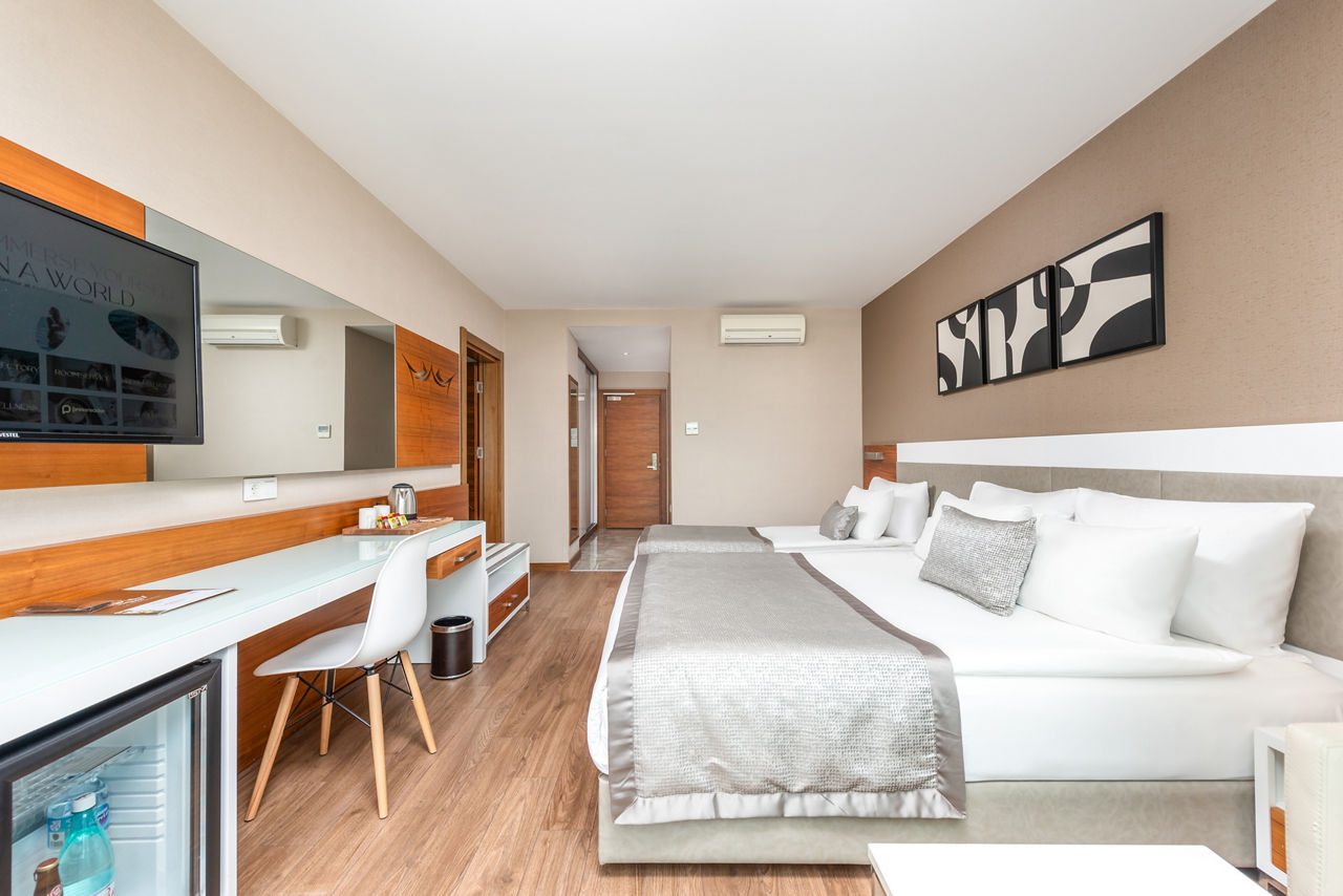 After a sunshine break with a beachfront location? White City Resort is just the ticket. The three outdoor pools offer something for all ages ? there?s one with waterslides, a splash park for the little ones and a relaxing infinity pool for the grown-ups. Down by the shore is a private beach and pier, where you?ll have ample space to relax and enjoy the sun and sea breeze, before making the most of the bars and restaurants. When you want to switch off, head to the White Sense Spa for the ultimate pamper session while the little ones get involved in some arts and crafts over at the kids' club.Standard Double or Twin room sleeps up to 3 adults and has bathroom containing a shower, air conditioning, hairdryer, flat screen television, minibar and balcony. Room upgrade options and Sole Use rooms are also available.