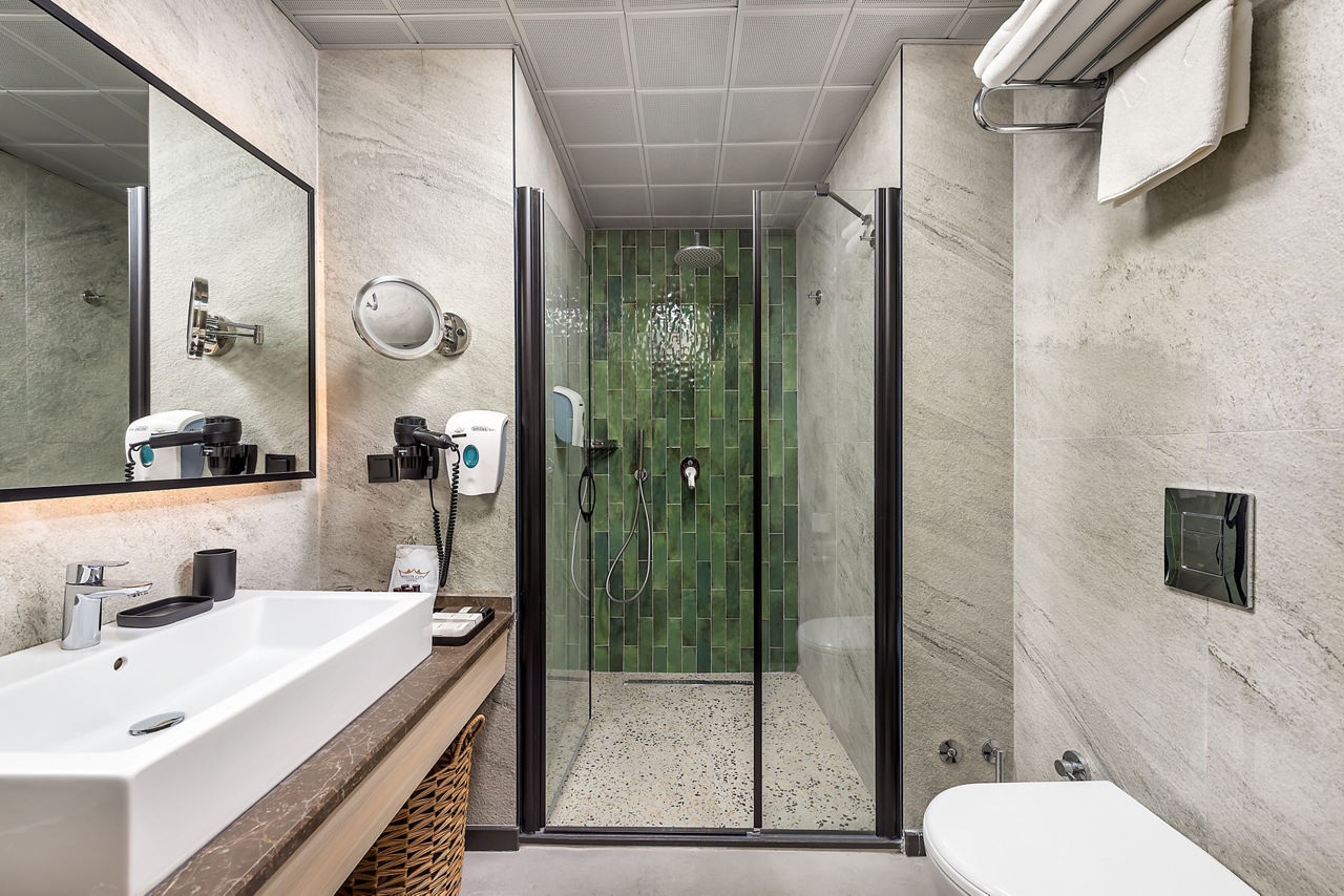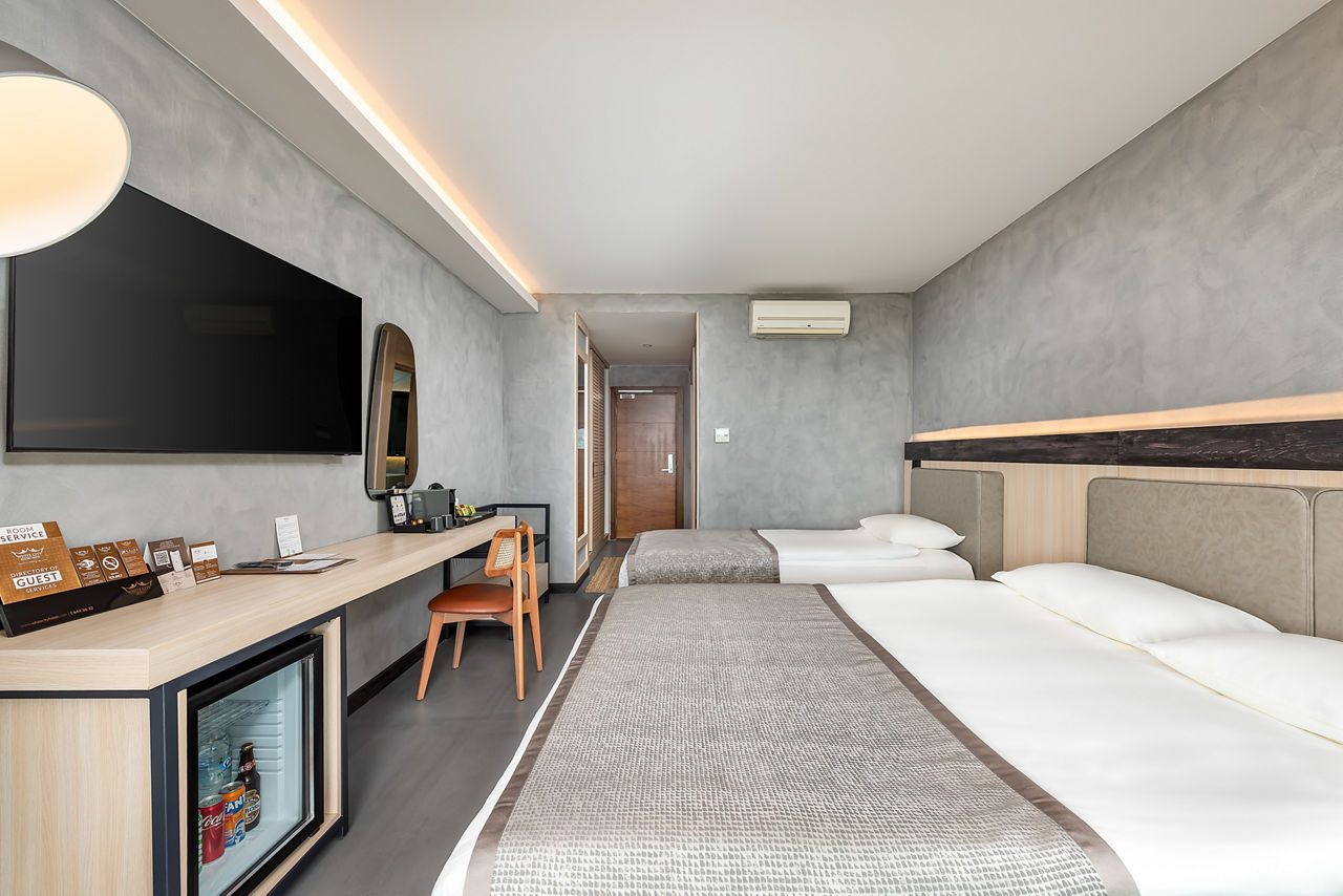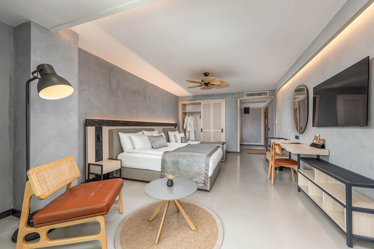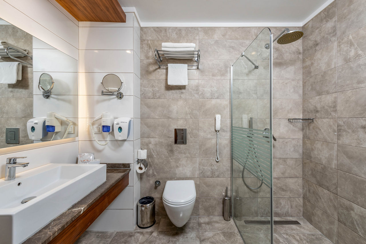 Standard Double or Twin room sleeps up to 3 adults and has bathroom containing a shower, air conditioning, hairdryer, flat screen television, minibar and balcony. Room upgrade options and Sole Use rooms are also available.
