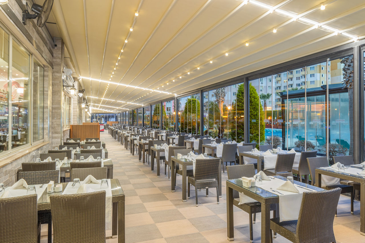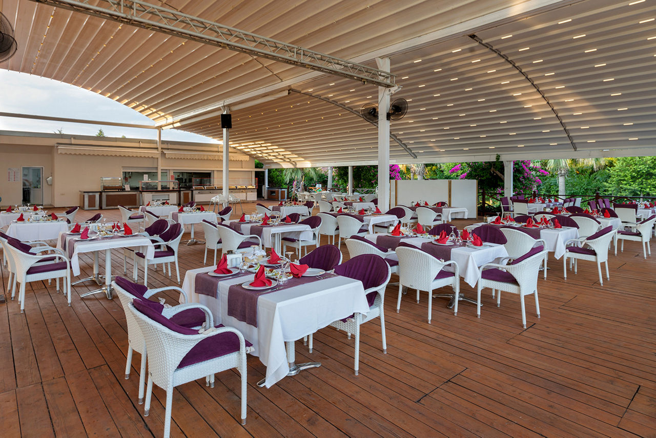 Main buffet restaurant. 7 restaurants including 1 buffet restaurant and 6 à la carte restaurants*. 7 bars including 3 beach bars, coffee bar, disco bar, lobby bar and pool bar. Please note: 3 à la carte restaurants are open between 15 Apr and 30 Sep.Entertainment