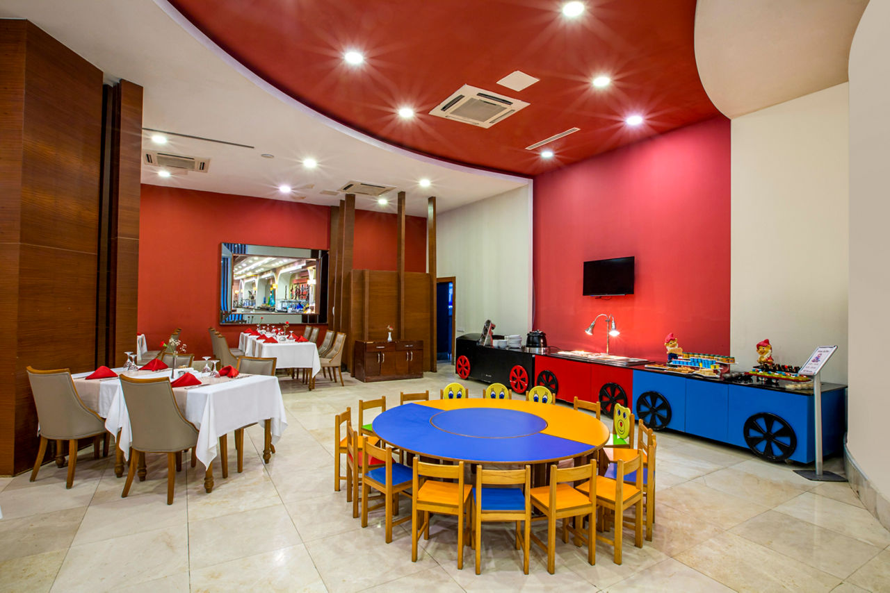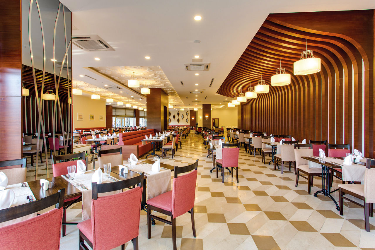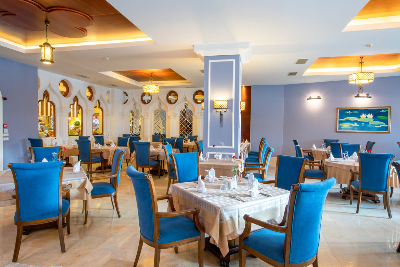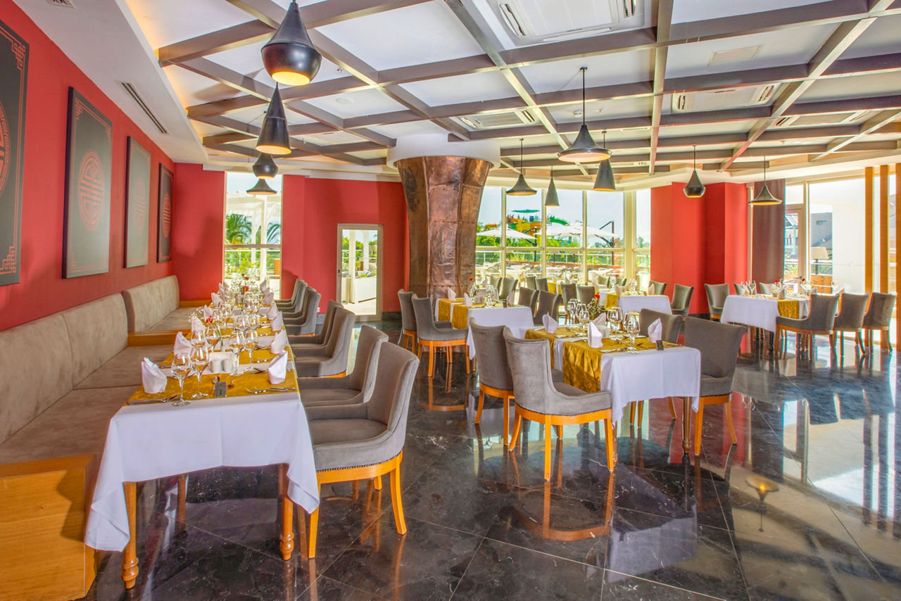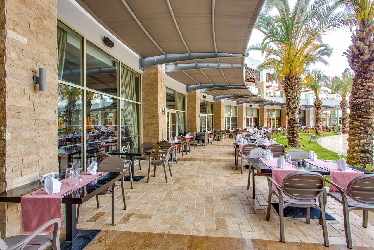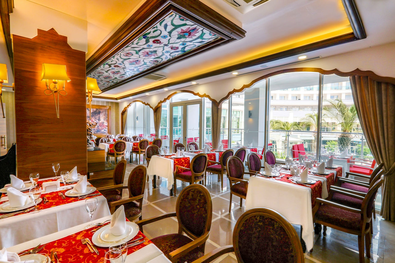 Buffet restaurant including a children?s section. 3 a la carte restaurants offering Turkish, Italian and Mongolian cuisine (one visit to one a la carte restaurant is included per stay, reservation required). 3 snack bars. Patisserie. 8 bars including a 24hr bar, sports bar, beach bar and pool bar.Entertainment
