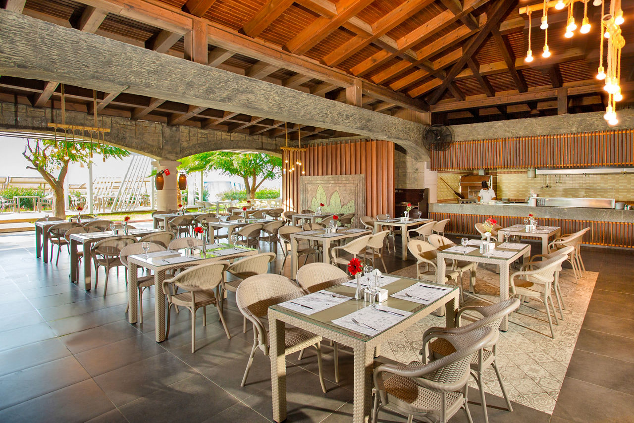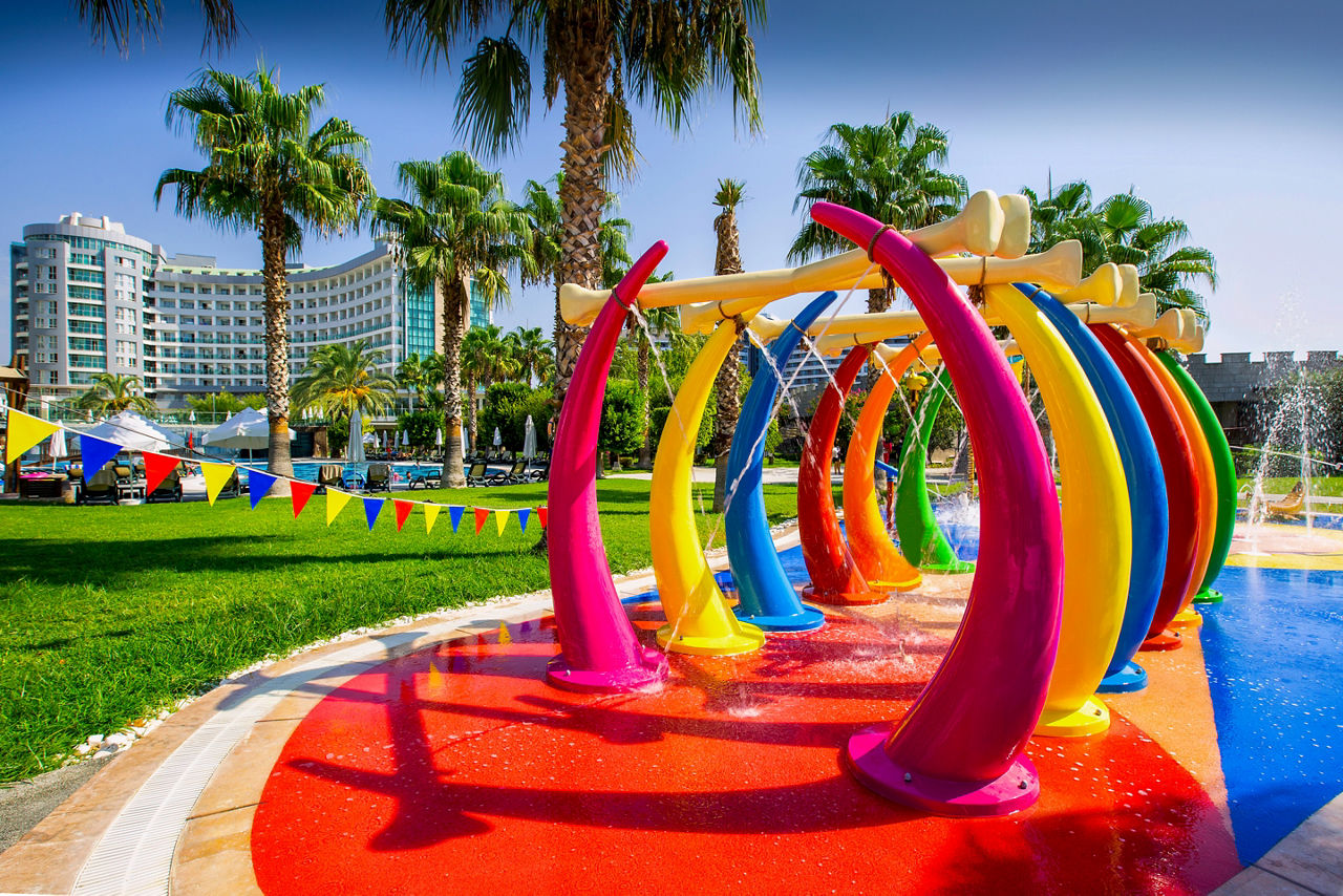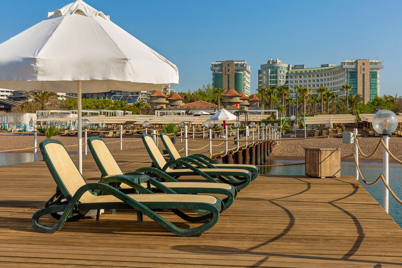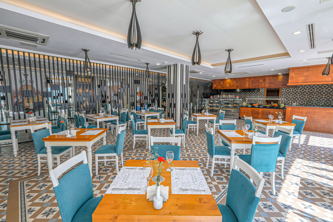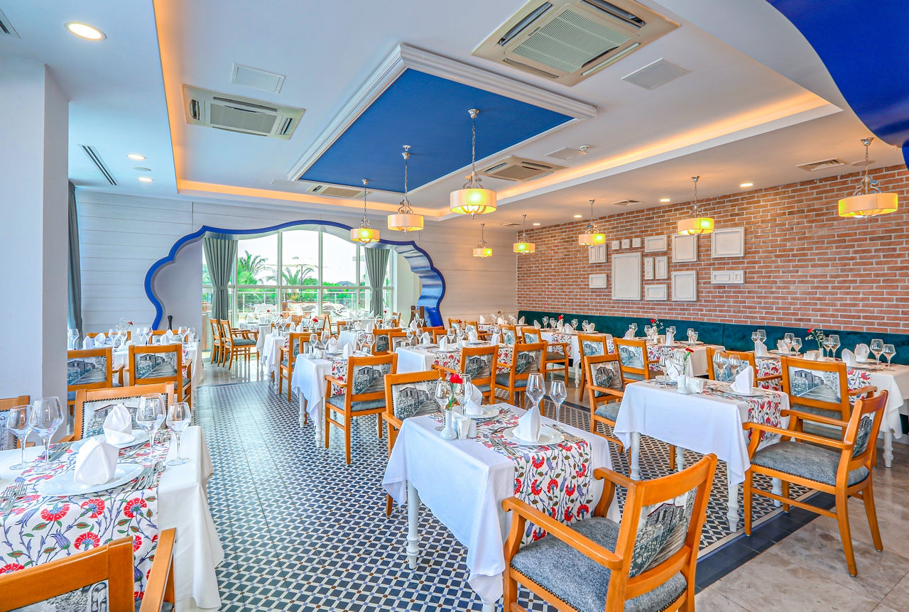 Buffet restaurant including a children?s section. 3 a la carte restaurants offering Turkish, Italian and Mongolian cuisine (one visit to one a la carte restaurant is included per stay, reservation required). 3 snack bars. Patisserie. 8 bars including a 24hr bar, sports bar, beach bar and pool bar.Entertainment