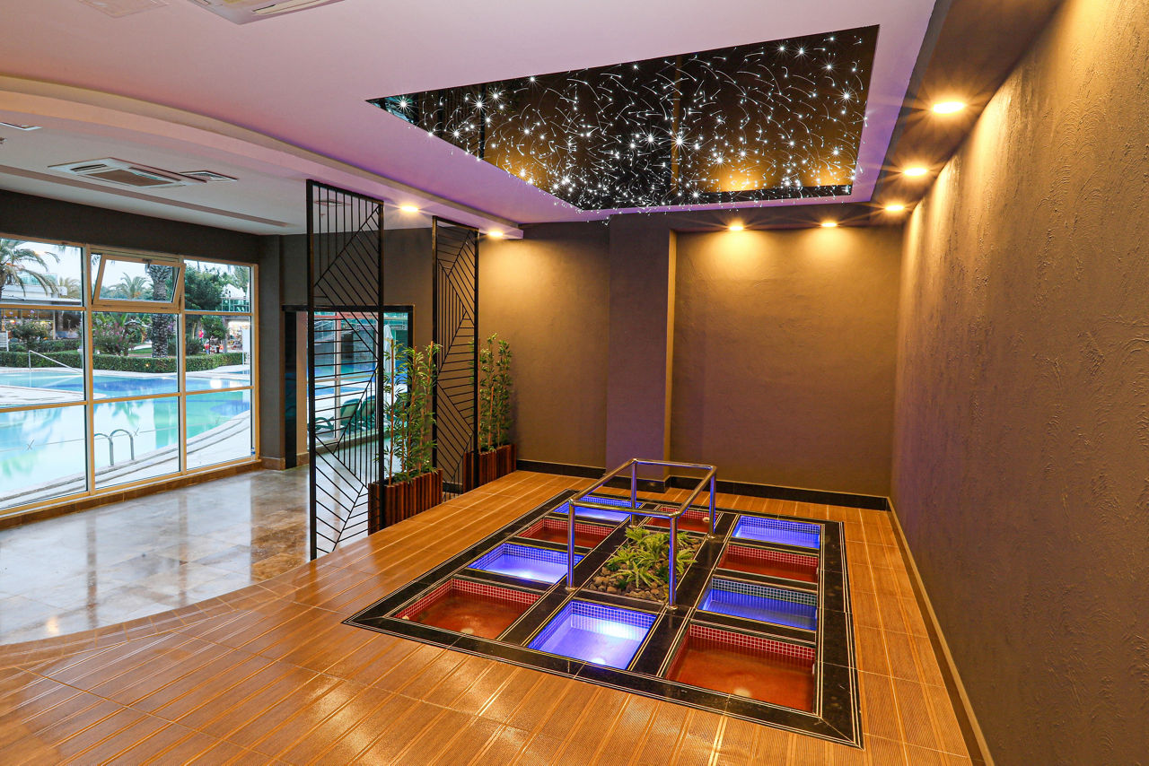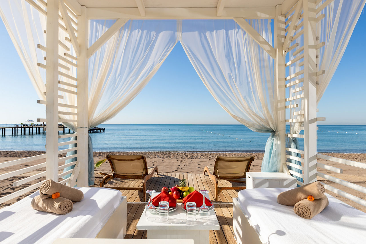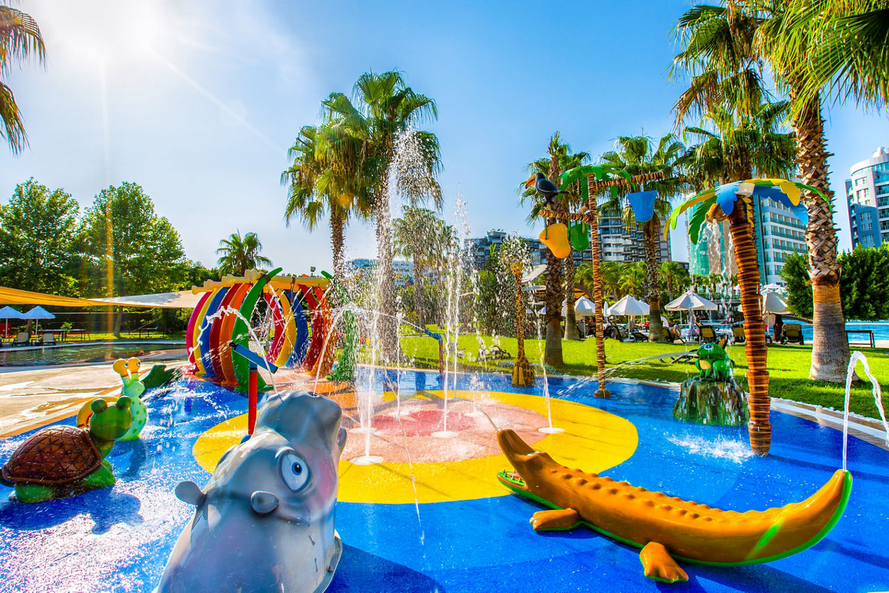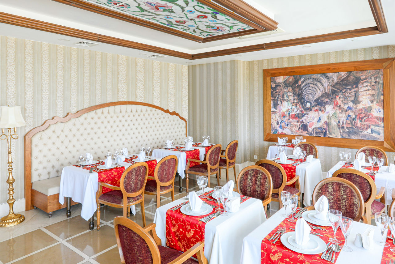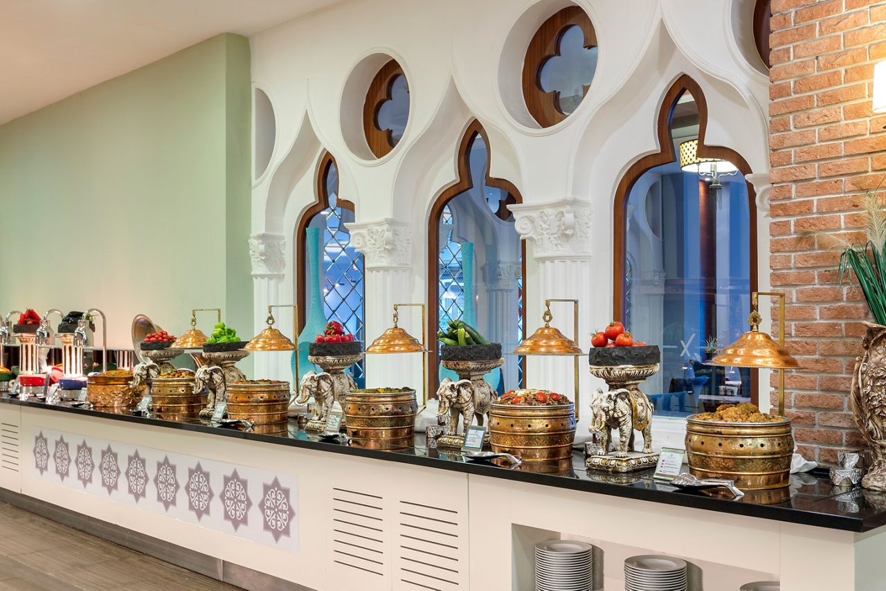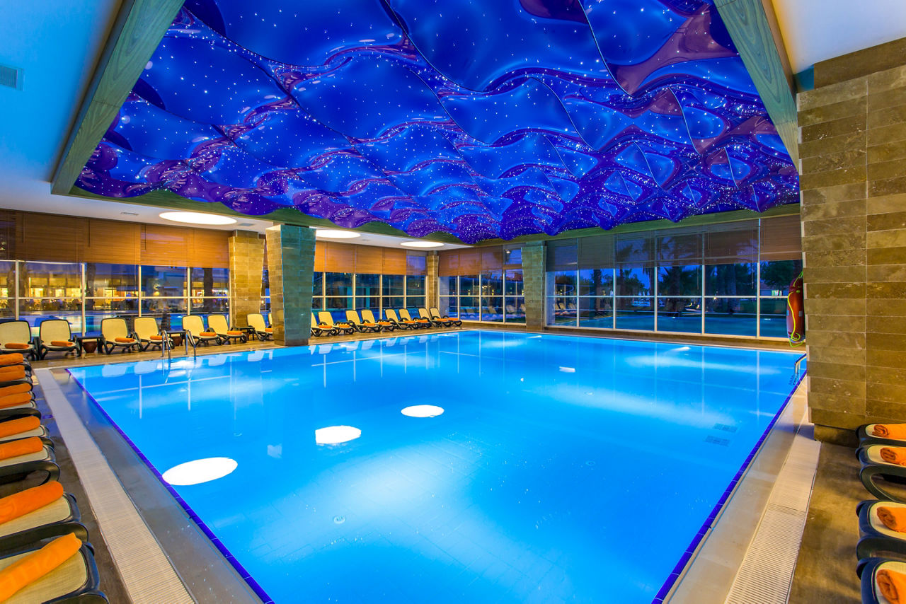 Buffet restaurant including a children?s section. 3 a la carte restaurants offering Turkish, Italian and Mongolian cuisine (one visit to one a la carte restaurant is included per stay, reservation required). 3 snack bars. Patisserie. 8 bars including a 24hr bar, sports bar, beach bar and pool bar.Entertainment