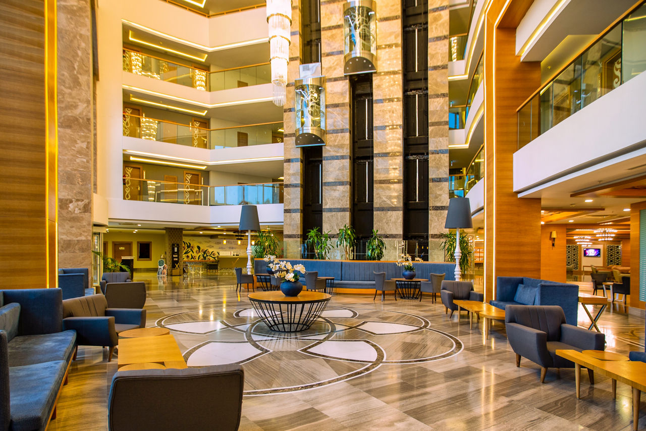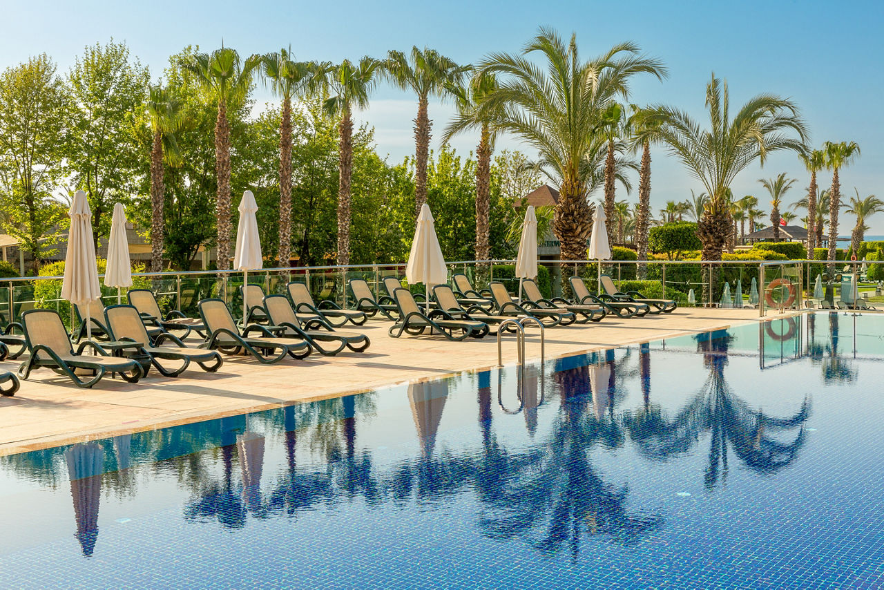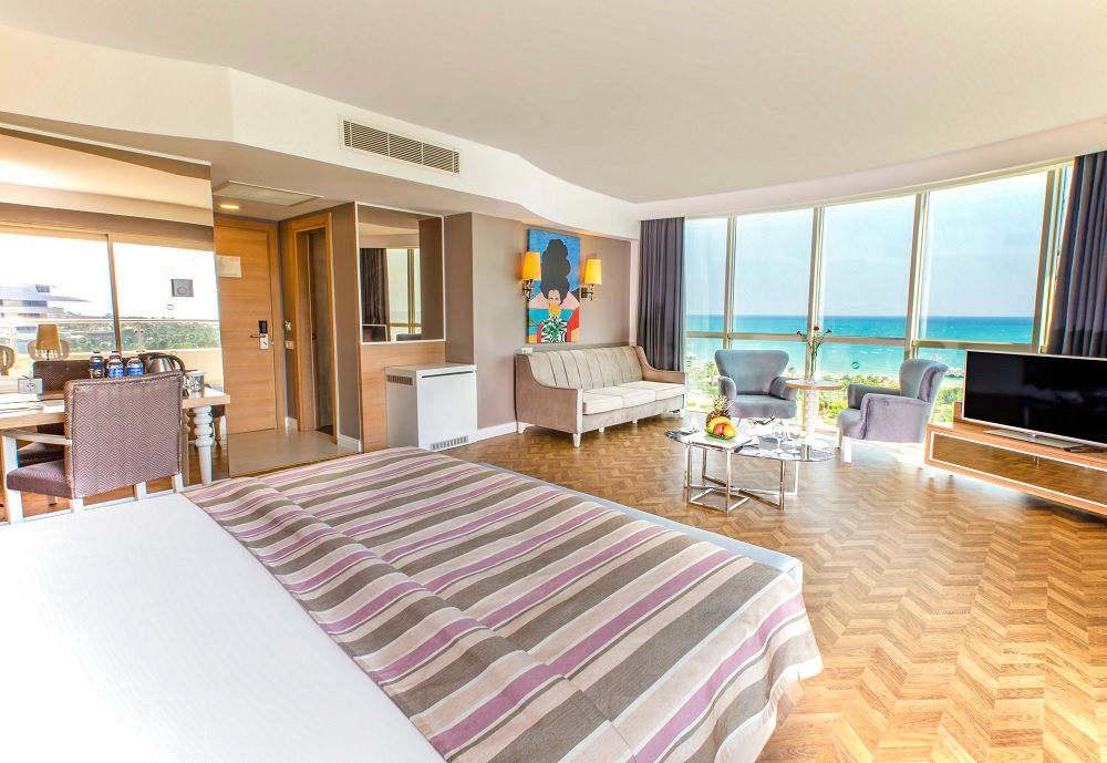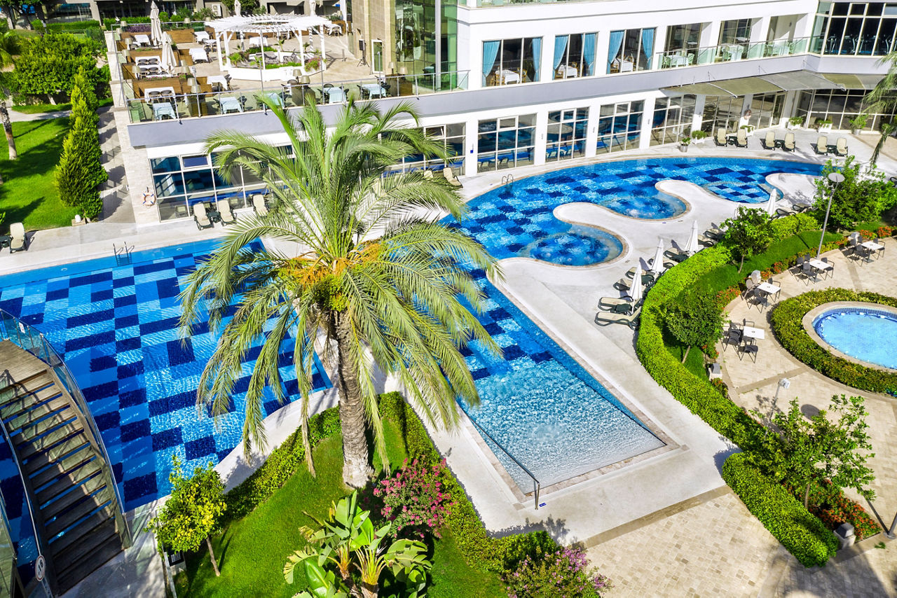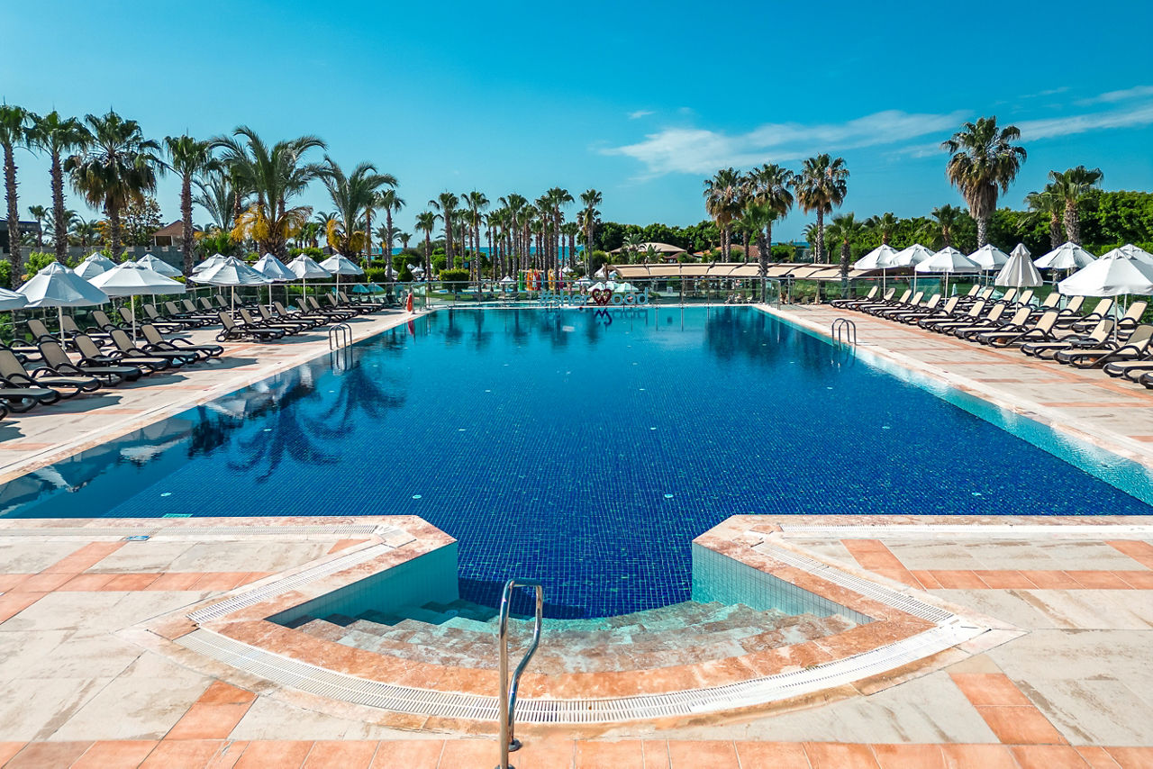 At Sherwood Exclusive Lara, you'll find six outdoor pools and an aqua park to enjoy under the sun, along with a bowling alley, a tranquil spa and a lively evening entertainment programme with the likes of karaoke and cabaret. There?s truly something for everyone! When it comes to dining and drinking, it?s hard to beat. With multiple restaurants and bars, there really is something to suit every taste. For those keen to explore, you?ll be perfectly situated to venture out so why not head to the private seafront or stroll through the vibrant resort of Lara Beach.Standard Double or Twin rooms with Land View sleep up to 3 adults or 2 adults and 1 child and have a bathroom with shower, hairdryer, centrally controlled air conditioning, flat screen satellite TV, tea and coffee making facilities, mini-bar restocked daily with soft drinks and beer and balcony. Standard Double or Twin rooms with Land View for Sole Use, Standard Double or Twin rooms with Side Sea View and Standard Double or Twin rooms with Sea View are also available. Family rooms sleeping up to 4 adults or 2 adults and 2 children have two bedrooms with connecting doors, bathroom with shower and the same facilities as standard rooms, and are available on request. Junior Family rooms sleep up to 4 adults or 2 adults and 2 children and have the same facilities as standard rooms, and are also available on request.