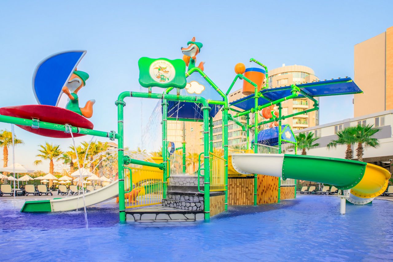 7 outdoor pools including 2 children's pools and 3 pools with slides. 1 indoor pool. Sun loungers, umbrellas and towel service available.Complete Booking