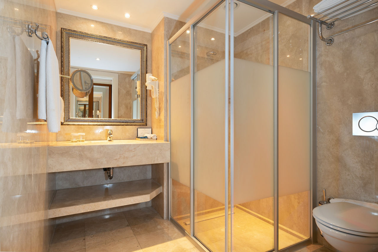 Standard Double or Twin rooms sleep up to 3 adults and have bathroom containing a shower, air conditioning, hair dryer, flat screen television and balcony or terrace.