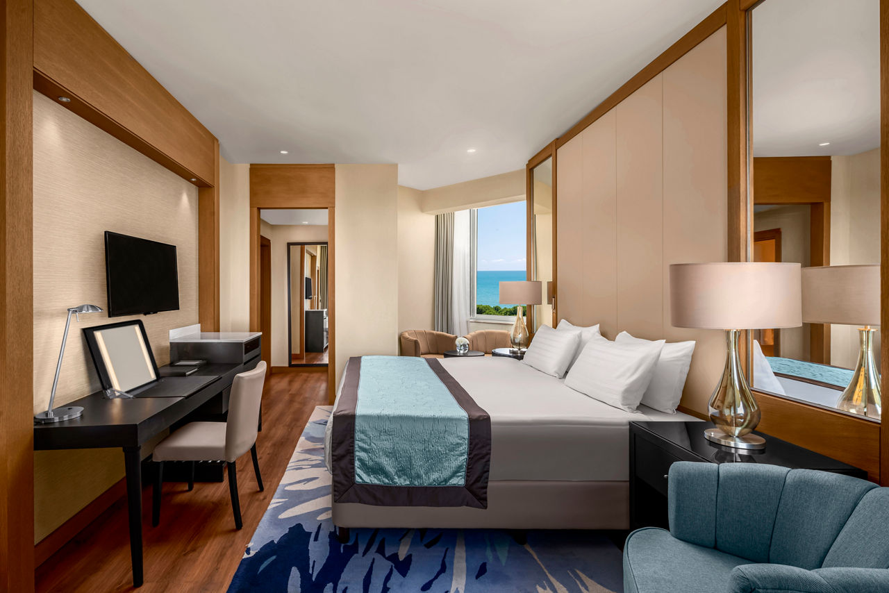 Located on the stunning Mediterranean coast, Papillon Zeugma Relaxury is a holiday haven for both couples and families. The amazing outdoor pool offers a space to unwind while the kids and the young at heart enjoy the waterslides! With an impressive selection of a la carte restaurants and bars, a wonderful beachfront location, an exciting kid's club and relaxing spa facilities your holiday is in safe hands here. What's more, at Papillon Zeugma Fit Club, it's easy to stay active too with a well-equipped gym, a range of sports facilities, yoga, pilates and fitness classes, and the option to book paid personal trainer sessions too.Standard Double or Twin rooms sleep up to 3 adults and 1 child and have a full bathroom, bathrobes and slippers, air conditioning, flat screen satellite TV, tea and coffee making facilities and balcony. Standard Double or Twin rooms for Sole Use, Standard Double or Twin rooms with Sea View, Standard Double or Twin rooms with Sea View for Sole Use, Family rooms in the Main Building and Family apartments in the Garden are also available.