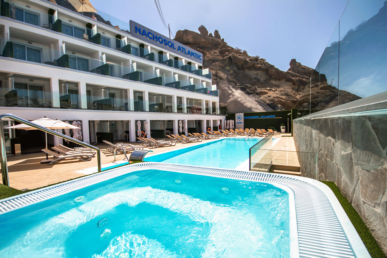 Located in the hillside, the IG Hotel Nachosol & Yaizasol Atlantic looks over the beautiful town of Puerto Rico with panoramic views of the golden beach and sparkling sea. This Adults Only hotel boasts bright, modern rooms and a stunning swimming pool and whirlpool, the perfect place to sit back and relax with a refreshing aperitif. With all the amenities of exciting Puerto Rico resort centre on your doorstep, you can enjoy the best of both worlds.