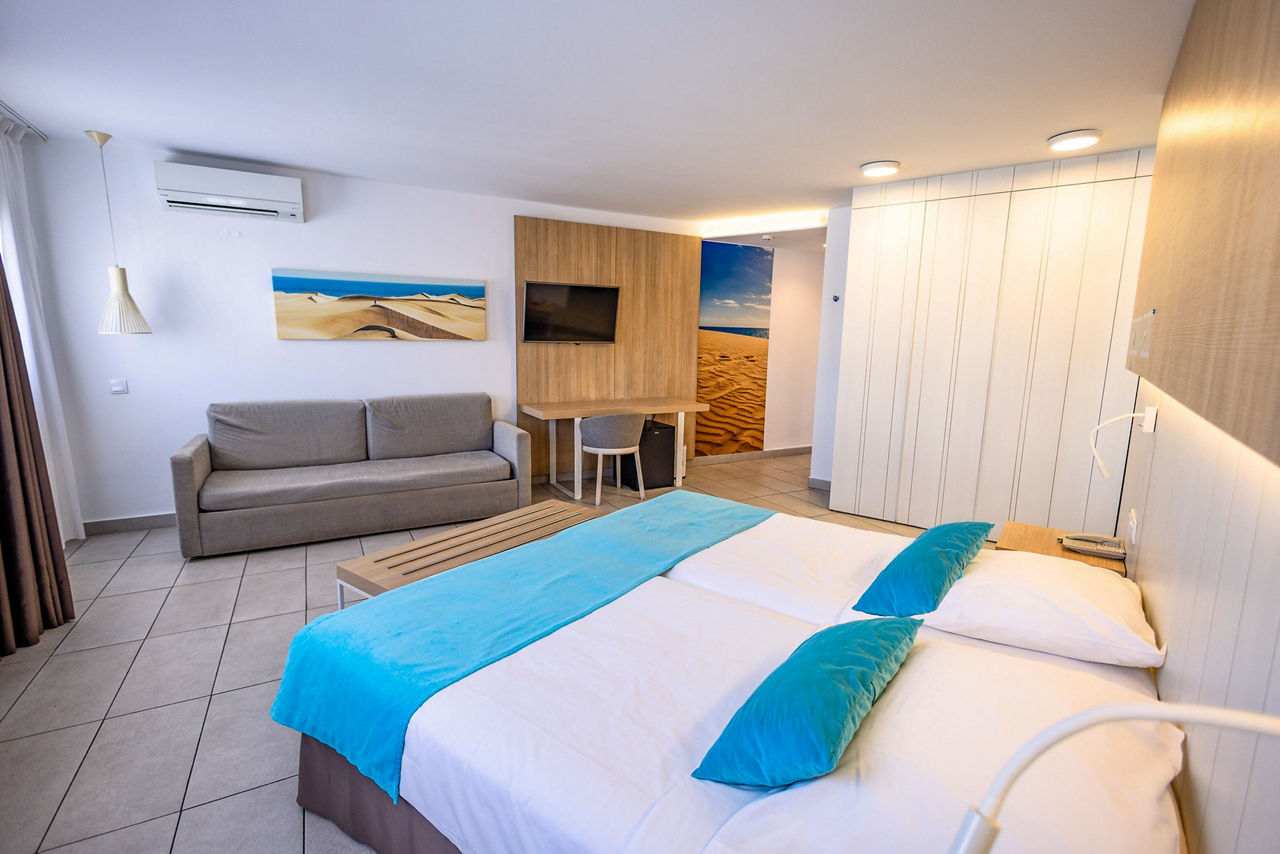 Deluxe rooms sleep up to 3 adults and have bathroom containing a shower, hairdryer, flat screen television and balcony or terrace. Room upgrade options and Sole Use rooms are also available.