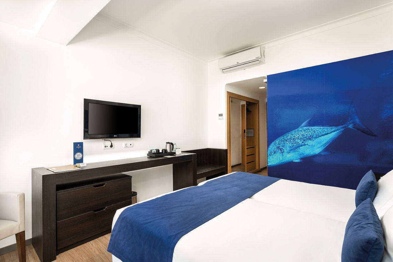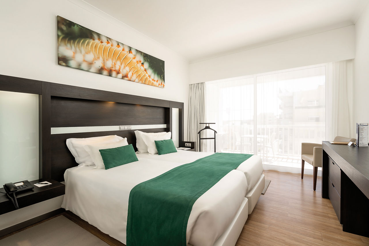 It doesn?t get better than having the beach right on your doorstep. And that?s what you get at the Jupiter Algarve Hotel. Why not head to the sand? Or just stay put and enjoy a dip in the outdoor pool or stretch out on a lounger. There?s a super gym and skin-nourishing spa too. You can take your pick from contemporary rooms and great board options. Before the evening?s entertainment and live music kicks in, dine in the ambient ? la carte restaurant or grab a drink in the lobby bar. You?ll get that holiday feeling alright.Double rooms sleep up to 3 adults and have a bathroom with bath with shower attachment or shower, air conditioning, hairdryer and flat screen television. Superior Double rooms with Side Sea View and Premium Double rooms with Sea View and Double rooms for Sole Use are also available. Please note: only rooms with Side Sea Views or Sea Views have a balcony, Double rooms do not have a balcony.