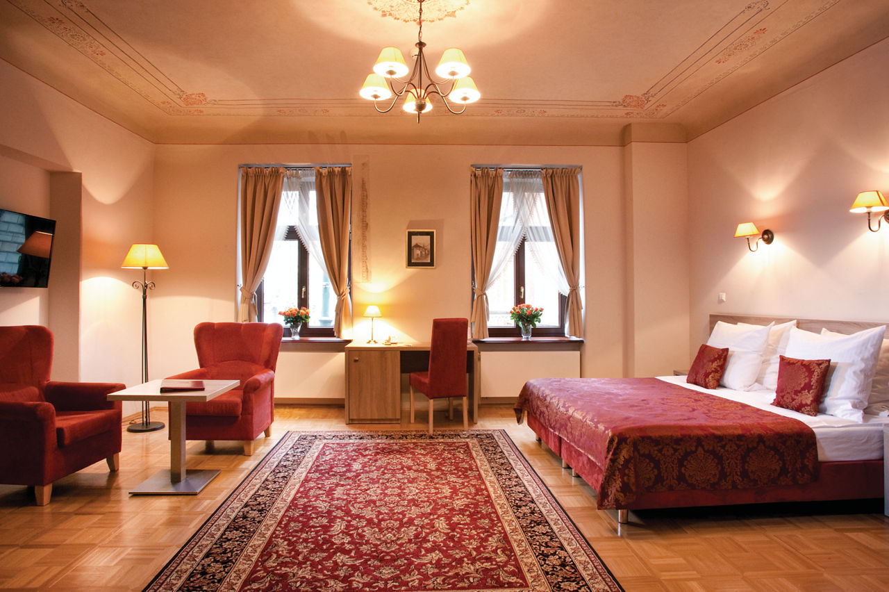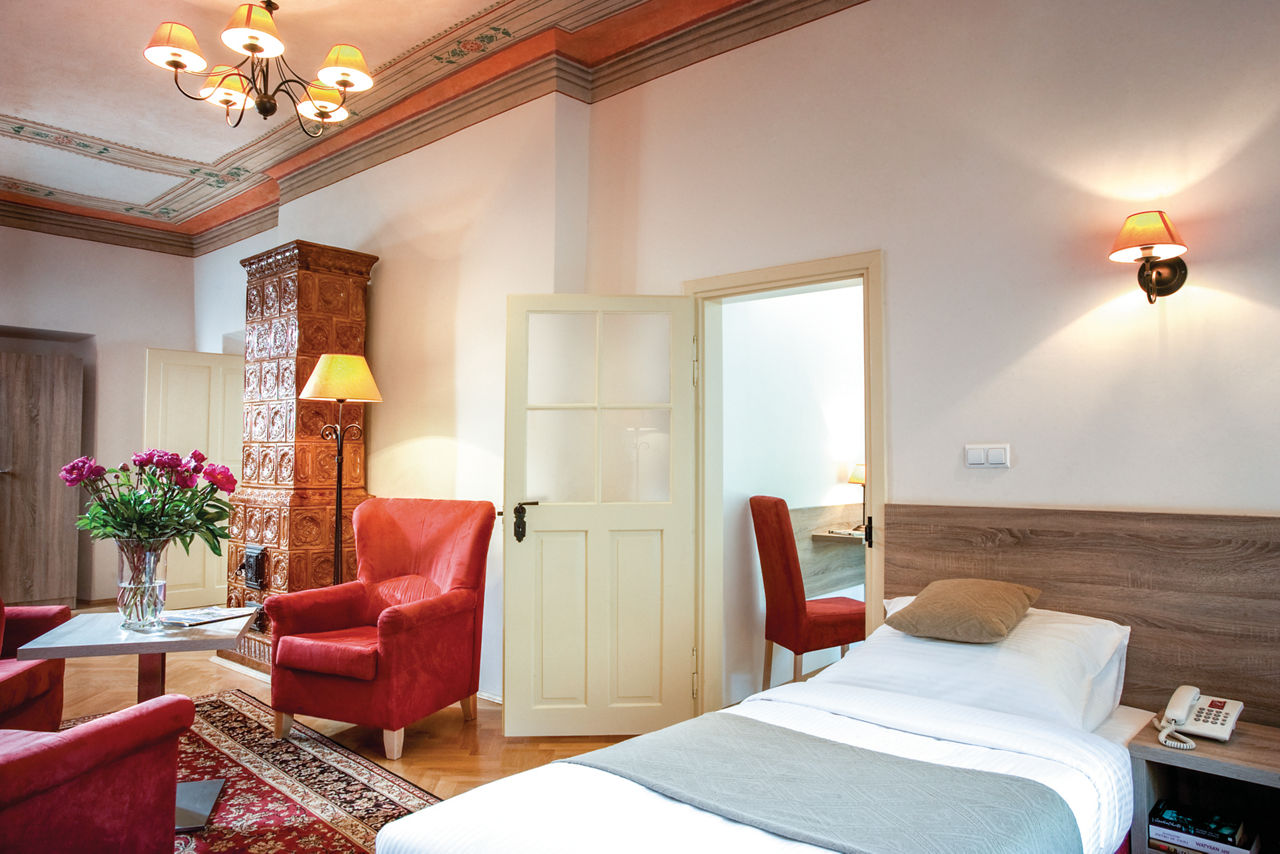 This unique hotel boasts a prime location in the heart of Krakow's old town. The iconic Old Market and central square are only a stone's throw away, and sightseers will be able to reach the city's main historical and cultural attractions within a short stroll, including Wawel Castle, Saint Mary's Basilica, the National Museum and the Archaeological Museum. The hotel is set in a thirteenth-century building, offering spacious, modern rooms with preserved historical features, some showcasing beamed ceilings and one-of-a-kind frescoes from the eighteenth and nineteenth centuries as well as stone arches, original parquet flooring, and distinctive tiled stoves.Standard Double and Twin rooms sleep up to 2 adults and have a bathroom with bath or shower, hairdryer, flat-screen satellite TV, and tea and coffee making facilities.