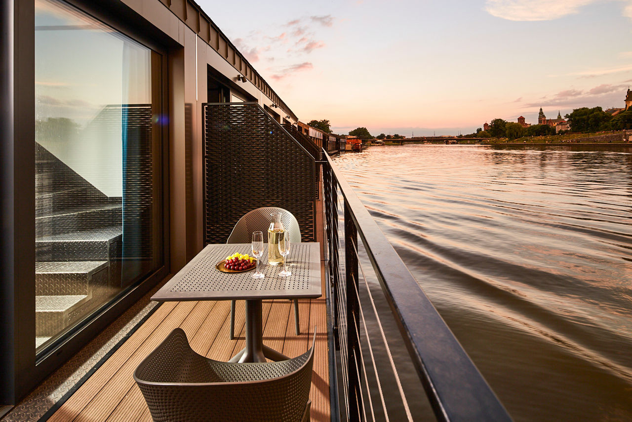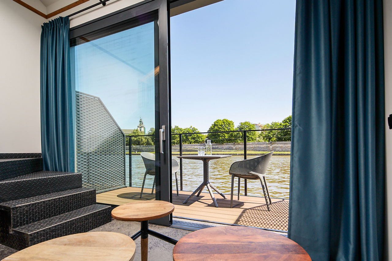 New Port Hotel is floating on the picturesque Vistula River, offering a unique location like no other. Providing scenic views of Wawel Royal Castle from either panoramic windows or your own private terrace. With an unbeatable location near to Hala Forum and the Kazimerz District, this hotel has plenty to offer within its vicinity. The stylish neo modern interior is guaranteed to impress and each room is equipped with all the necessary amenities to ensure a relaxed stay.