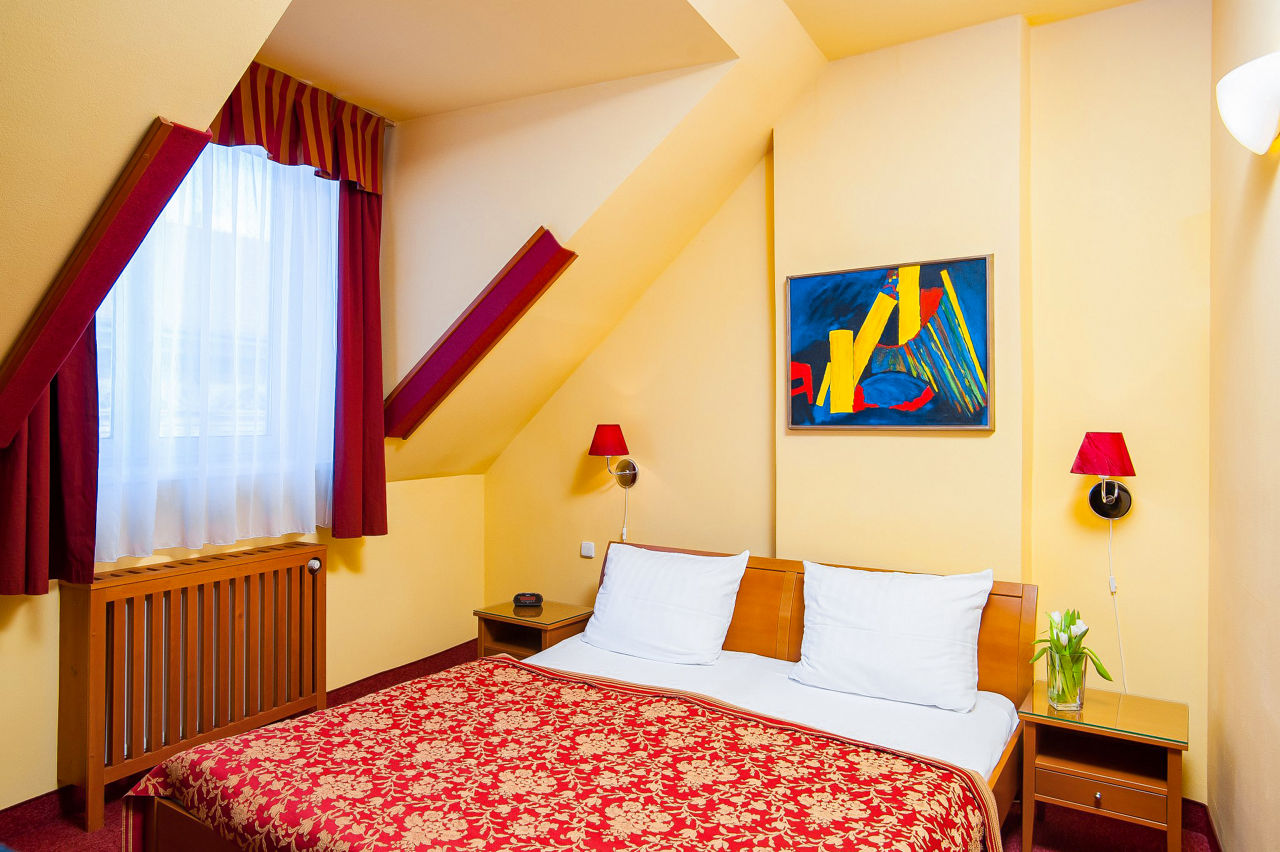 The Cloister Inn Hotel is in an ideal position, just a short walk away from Charles Bridge and the Old Town Square - you will be immersed in all Prague has to offer within moments. Rooms are simple yet comfortable and the hotel has a welcoming atmosphere throughout. If you are looking for a great value stay in the heart of the city, this hotel is the perfect choice.Standard double and twin room sleep 2 adults and have bathroom containing a shower, hairdryer, air conditioning, flat screen television and mini-bar. Single room and Triple rooms are also available.