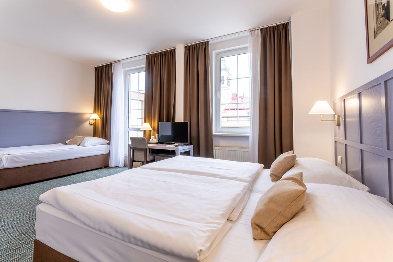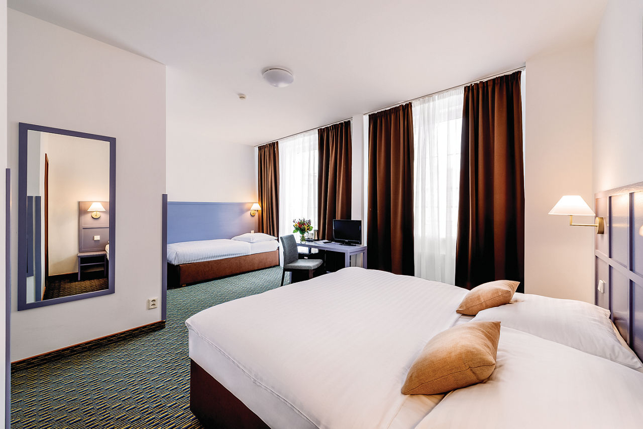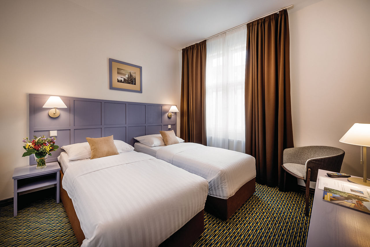 The Central Hotel Prague certainly lives up to its name, with many sights such as the Old Town Square and the Astronomical Clock just moments from the hotel. Plus, comfortable rooms make this a great base to head back to after a long day exploring. In the hotel, breakfast is served in the buffet-style restaurant, meaning you can grab a coffee and a bite to eat before heading out into the city. You?ll be in prime position for dining out too, with a wide variety of top-notch bars and restaurants just a short walk from the hotel.Standard Double and Twin rooms sleep up to 3 adults and have bathroom containing a bath or shower, hairdryer, fridge, flat screen television and safety deposit box. Room upgrade options and Sole Use rooms are also available.