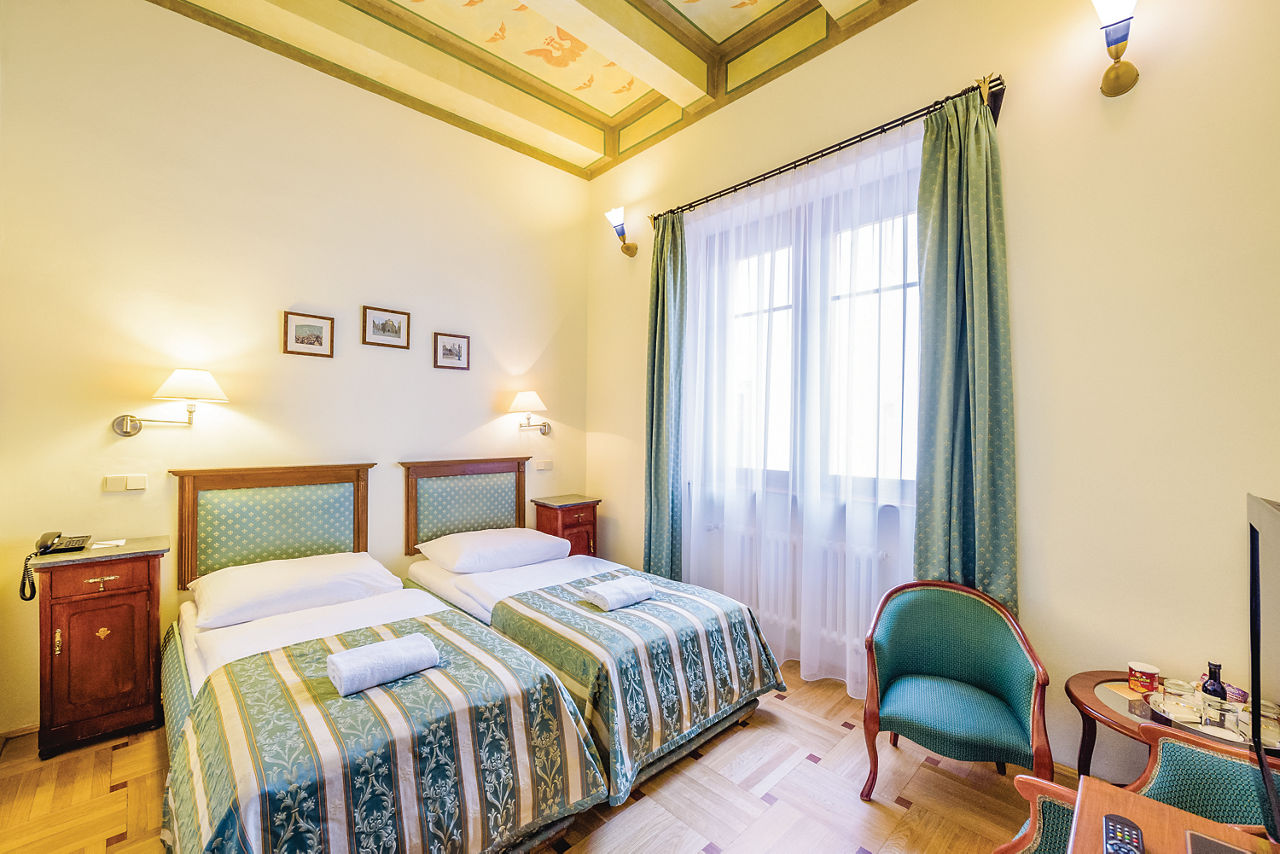 Conveniently located in the centre of Prague, the Elite Hotel is steeped in history dating back to the 14th century. With most of the main attractions within walking distance and plenty of transport links close by, it is easy to get around the city. Modern furnishings combined with traditional charm gives this hotel a truly home away from home feel and provides a comfortable base for exploring the delights of Prague.Standard Double or Twin rooms sleep up to 3 adults and have bathroom containing a bath with shower attachment, air conditioning, hairdryer, flat screen television, mini-bar and safety deposit box. Room upgrade options and Sole Use rooms are also available.