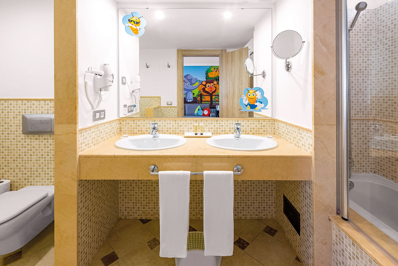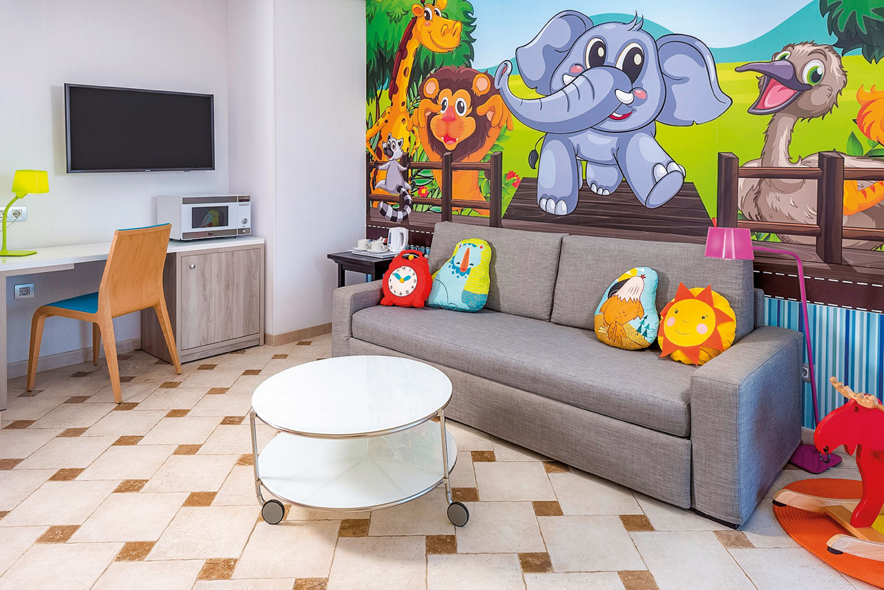 Junior Suites sleep up to 3 adults and have bathroom containing a bath with shower attachment, air conditioning, television, tea and coffee making facilities, hairdryer and terrace. Upgrade to a Comfort room for extra services including bathrobes and slippers, pillow menu, free bottled water stocked daily. Nesspresso coffee machine with capsules stocked on arrival and 1 free entry to the Thalasso Spa per stay. Family Junior Suites and Superior Family Junior Suites are also available.