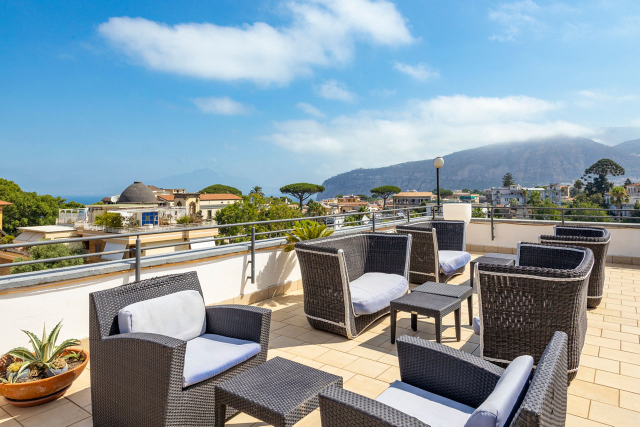 Hotel La Pergola provides a perfect base for ultimate relaxation, with stunning views from the rooftop terrace of the bay of Naples and the incredible Mount Vesuvius. This hotel offers traditional styled rooms, complete with all of the amenities you would need for a pleasant stay. Ideally located between Sant'Agnello and Sorrento, there's plenty of areas to explore and enjoy during your stay at the Hotel La Pergola.Standard rooms sleep up to 3 adults and have bathroom containing a shower, air conditioning (Jun - Aug), hairdryer and flat screen television. Standard rooms with balcony are also available.