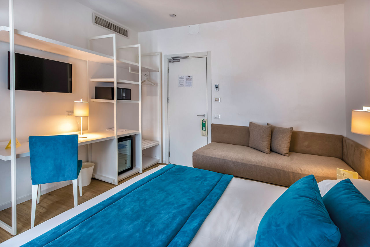 Double rooms sleep up to 2 adults and have bathroom containing a shower, air conditioning, hairdryer, minibar, flat screen television and safety deposit box.