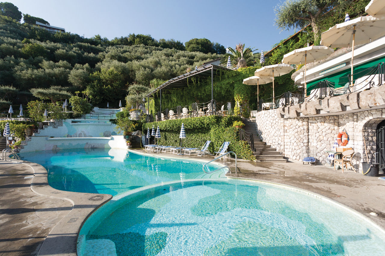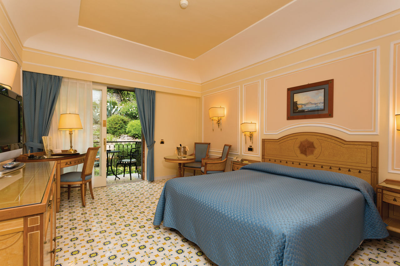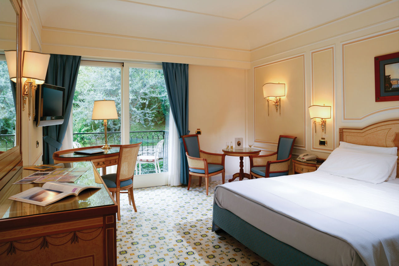 The prestigious Grand Hotel Capodimonte sits proudly on the rocky mountain hillside overlooking Sorrento and the Gulf of Naples. All of the rooms are classically styled with elegant furniture, including modern amenities for a comfortable stay. Nestled within the green oasis, guests can take advantage of the impressive five cascading pools, boasting magnificent views of Sorrento. Evenings can be spent at one of the three hotel?s restaurants, serving a range of delicious local and international specialities, or if you prefer, Sorrento?s resort centre with a great selection of bars and restaurants can be reached in a short walk.Double and Twin rooms sleep up to 3 and have bathroom containing a bath with shower attachment, air conditioning (15 May - 15 Oct), hairdryer, minibar*, flat screen TV, safety deposit box, coffee making facilities and balcony or terrace. Room upgrade options are also available.
