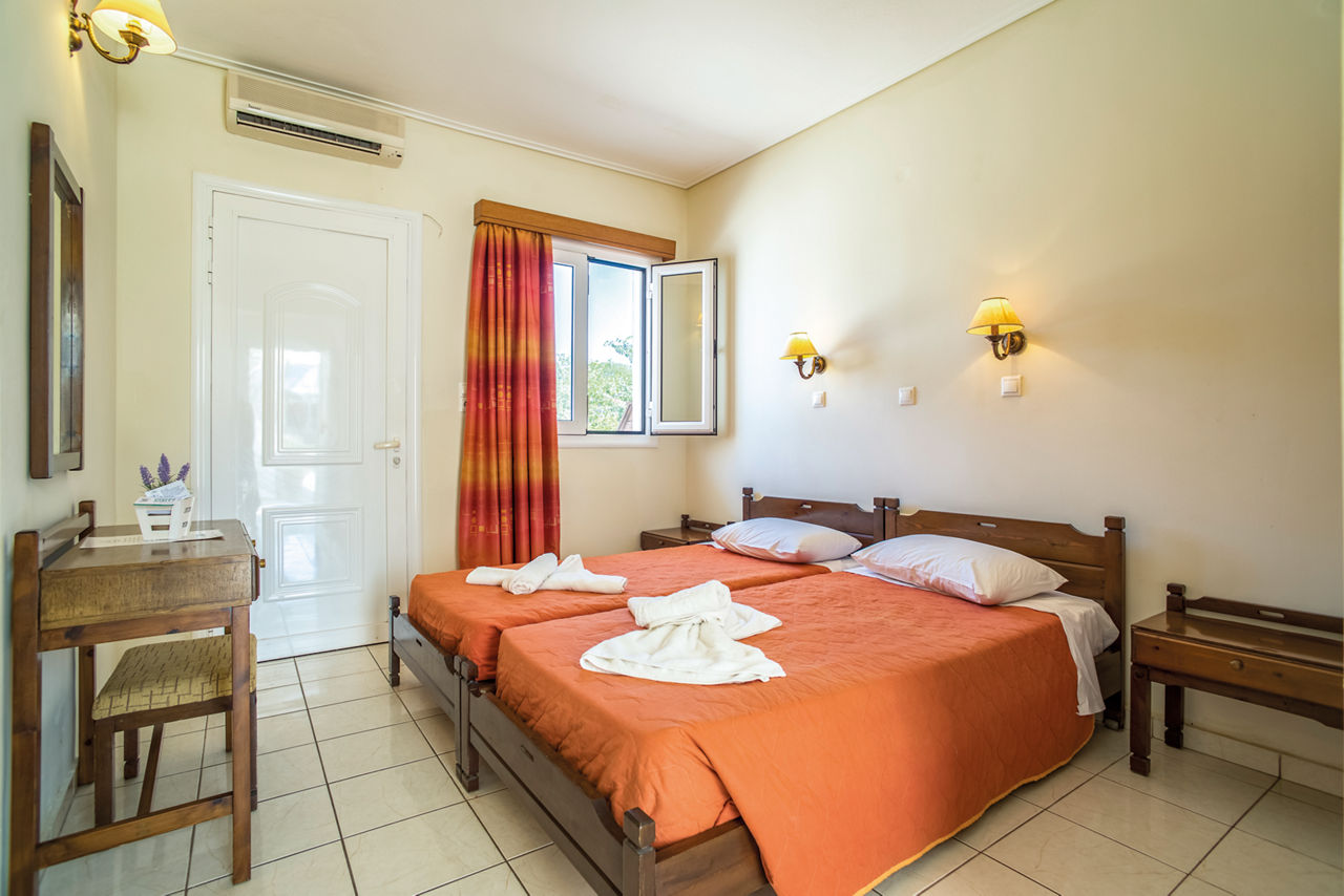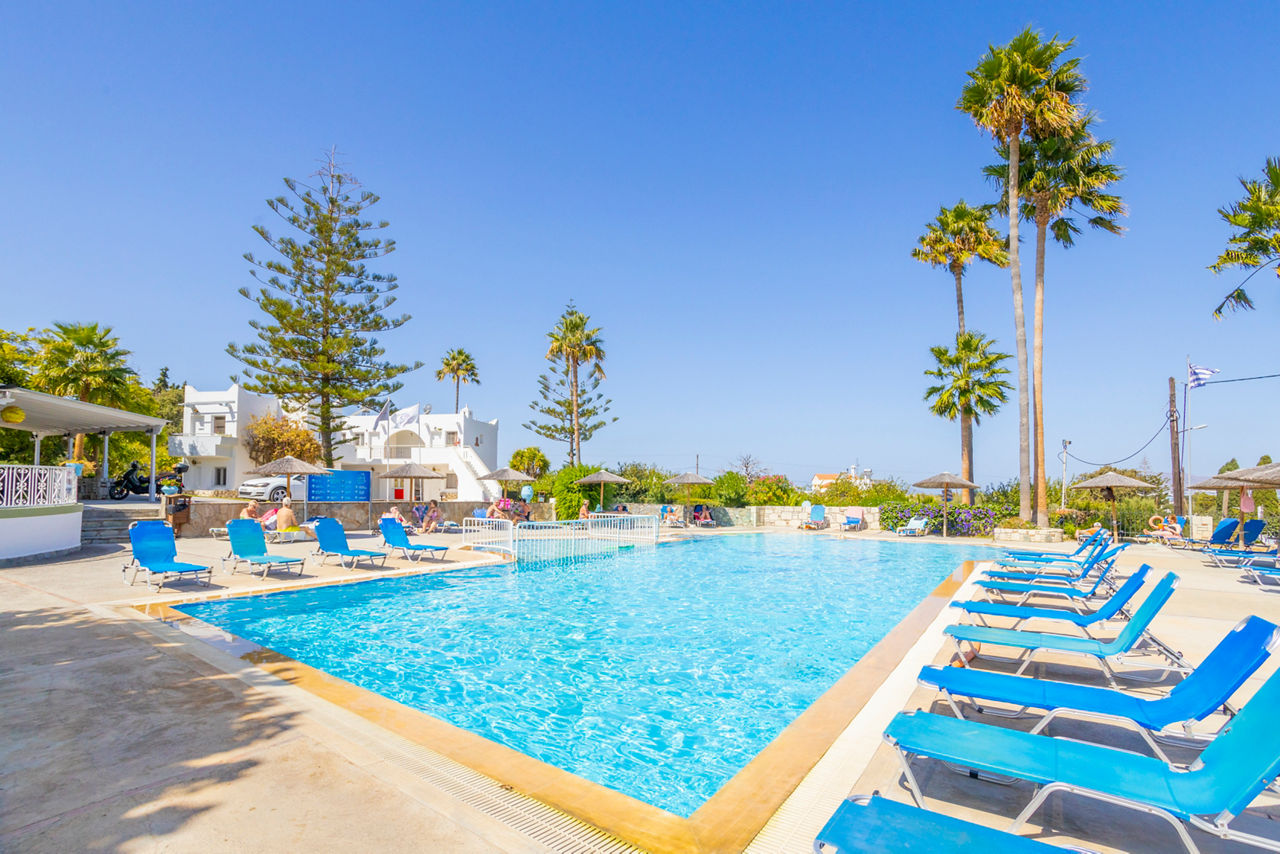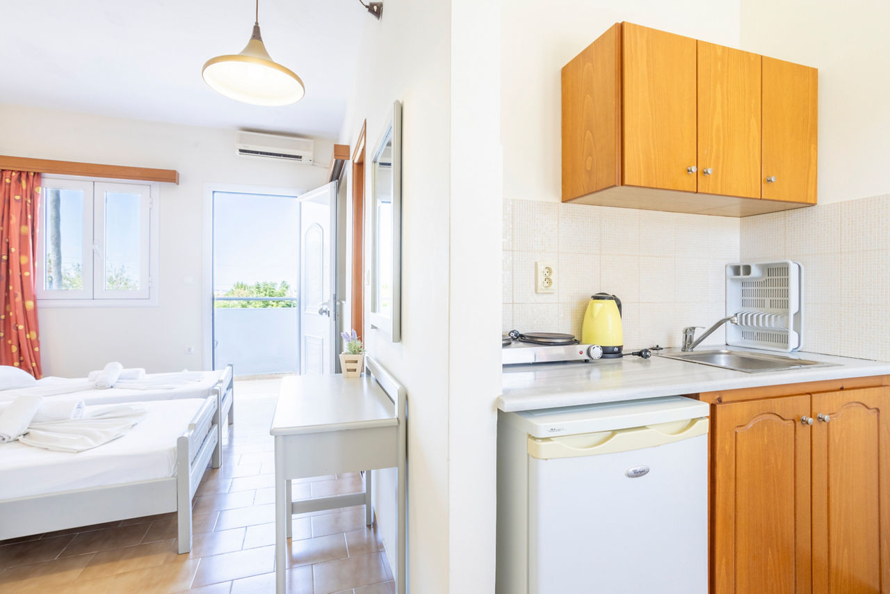 You can expect a warm welcome at the Ampavris Family Apartments, a friendly, family-run property on the outskirts of Kos Town. Set in pretty gardens, these apartments are ideal for families and couples seeking a calm, chilled holiday in a quaint countryside setting. Kos Town, with its bustling harbour packed full of shops, bars, and restaurants, is a short drive or leisurely walk away. On-site, there is a lovely pool area and a bar serving snacks that make the ideal place to relax. Offering a slice of authentic Greek hospitality, it?s easy to see why guests return here year after year.Studios sleep up to 2 adults and have bathroom containing a bath or shower, air conditioning*, fridge, kettle, double cooking rings and balcony or terrace. Room upgrade options are also available.
