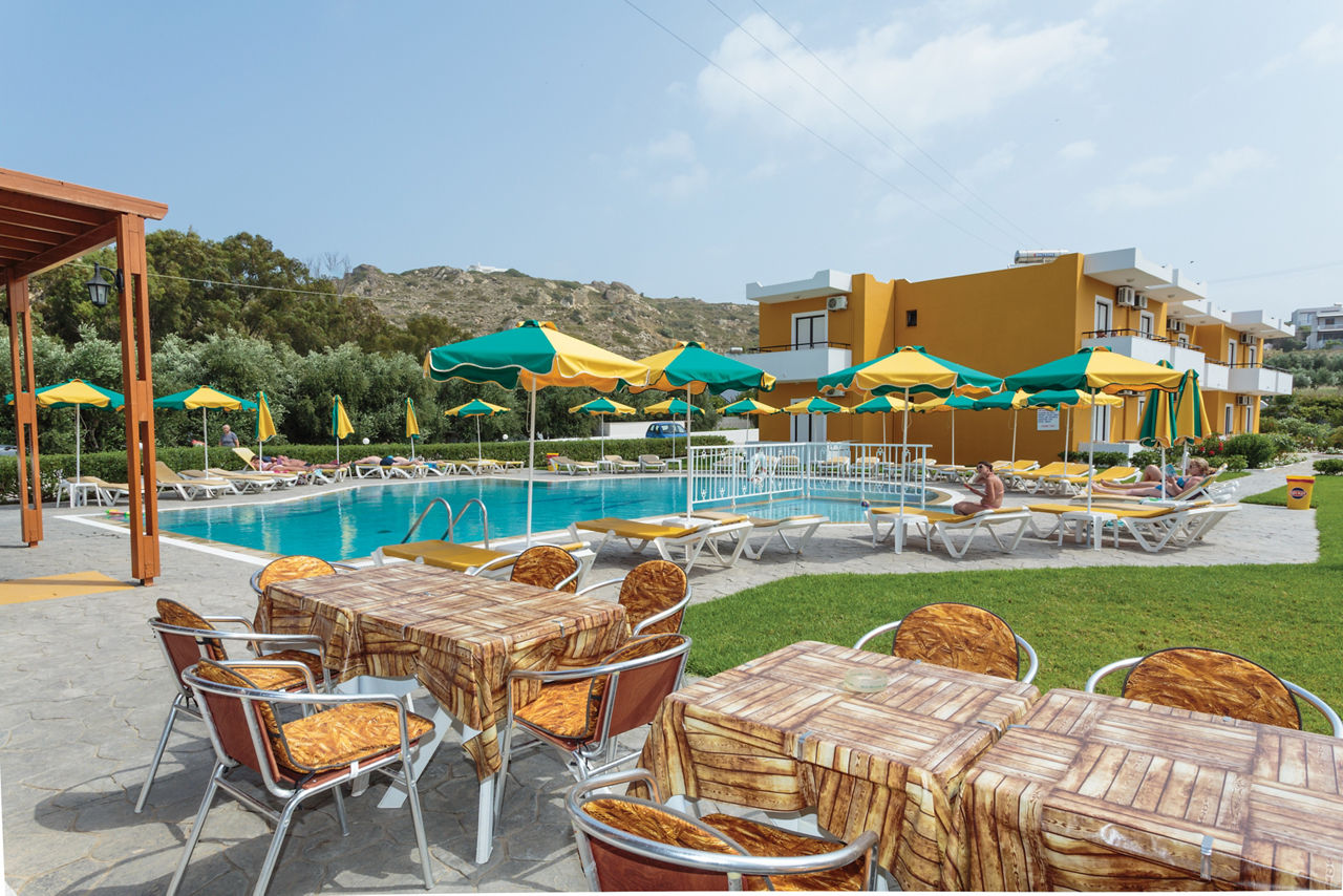 Located just a short walk to Agios Stefanos Beach with stunning views across Kefalos Bay and restaurants, bars and shops close by, the charming family run Manolis Studios offers holidaymakers a relaxing getaway in the Greek sunshine. Spend your days by the outdoor pool as you lounge with a cocktail in hand from the pool bar or explore all the Island of Kos has to offer with ease from a great location. The studios are comfortable, spacious, well equipped for self-catering and even have private balconies with either a pool or garden view, perfect for unwinding.Studios sleeps up to 3 adults and have a bathroom with shower, hairdryer, air conditioning*, cooking rings, fridge and a balcony or terrace. Continental breakfast is also available.