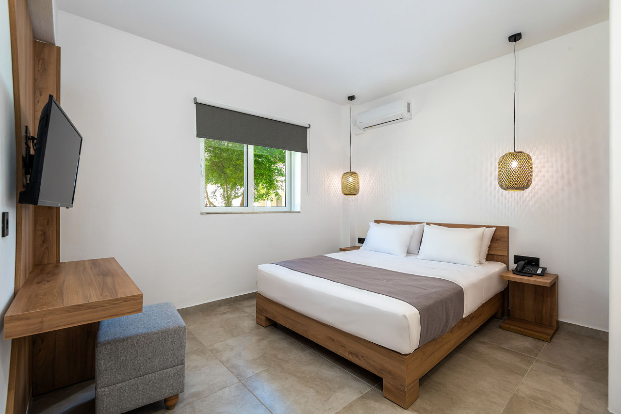 Set amongst lush green gardens, filled with olive and fig trees, sits Gaia Village. This friendly property features an attractive pool area, just a short stroll from the beach and resort centre. Families will love it here; the kids will be entertained all day! A children?s club and playground will keep them busy, whilst the children?s pool is the perfect place for them to cool off. The All Inclusive package is perfect for keeping everyone happy, with a buffet-style restaurant, you will be spoilt for choice. Gaia Village is perfect for those seeking an enjoyable family holiday on the beautiful island of Kos.Double and twin rooms sleep up to 3 adults and have bathroom containing a bath, air conditioning, hairdryer, television and balcony or terrace. Family rooms and single rooms are also available.