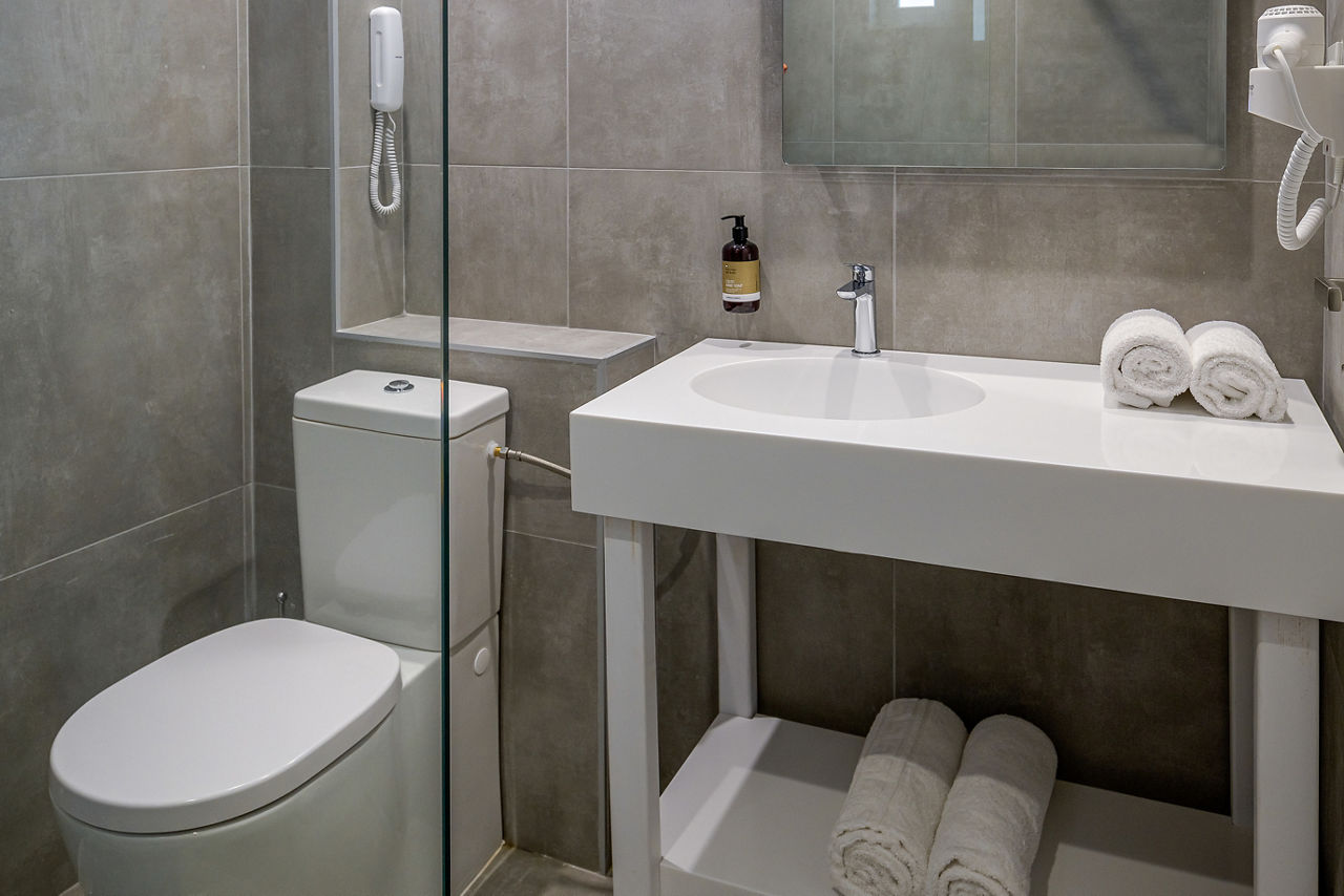 Double and twin rooms sleep up to 3 adults and have bathroom containing a bath, air conditioning, hairdryer, television and balcony or terrace. Family rooms and single rooms are also available.