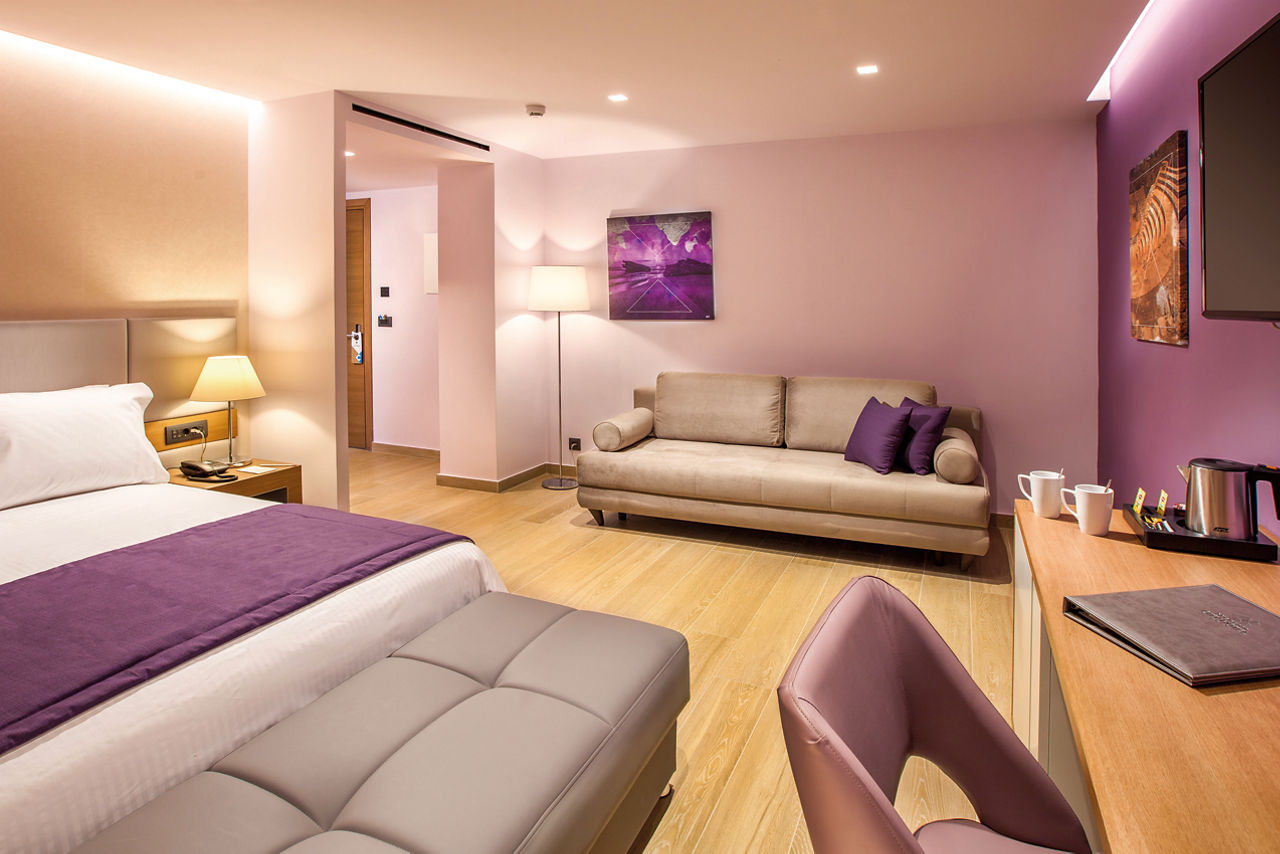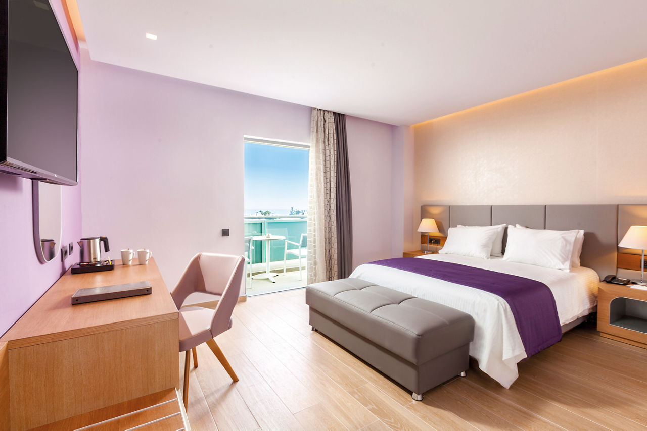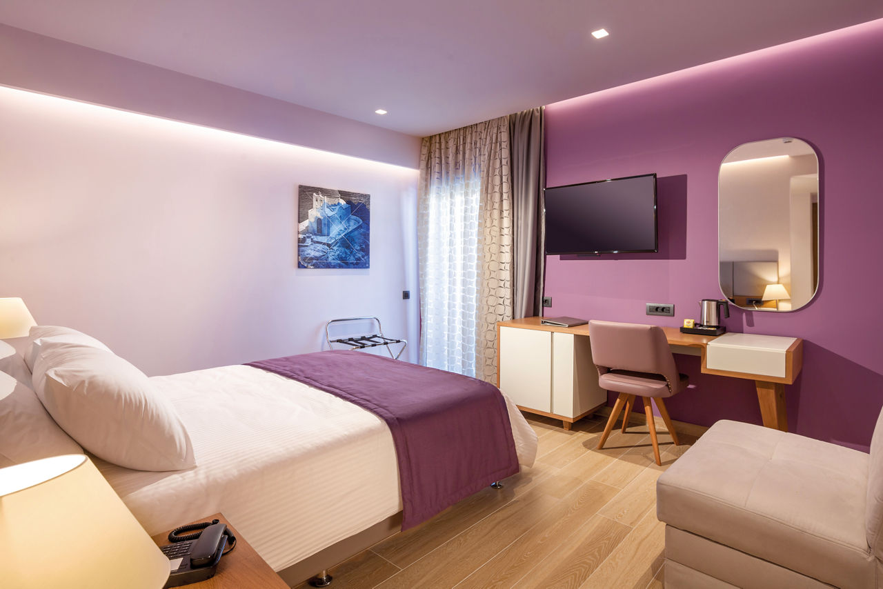 The Blue Lagoon City Hotel is perfect for couples, thanks to its excellent location, just a short walk from Kos Town with its bustling harbour full of bars and restaurants. There are modern and stylish rooms and a sleek pool area complemented by sun loungers to truly enjoy the Grecian sun. For those looking to experience some pampering, the hotel also has a spa offering a variety of treatments, great for relaxing after a day exploring Kos.Standard rooms sleep up to 2 adults and 1 child and have bathroom containing a shower, air conditioning, hairdryer, bathrobe and slippers, flat screen television, fridge, tea and coffee making facilities and balcony.