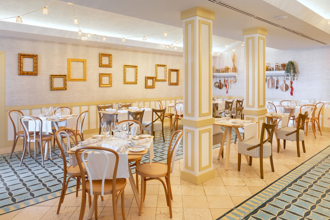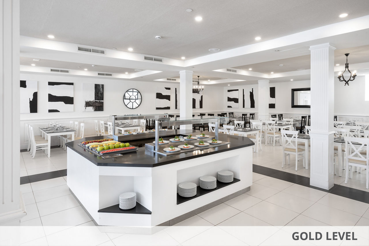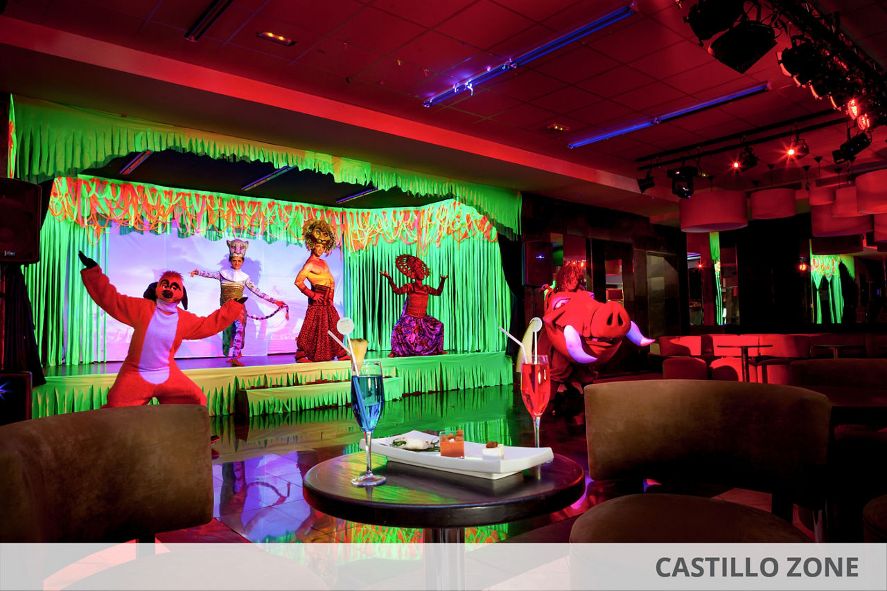 Buffet restaurant. Two á la carte restaurants (Italian, Oriental ). A la carte beachfront restaurant (Adults only, not included in the All Inclusive package). Four bars.Entertainment