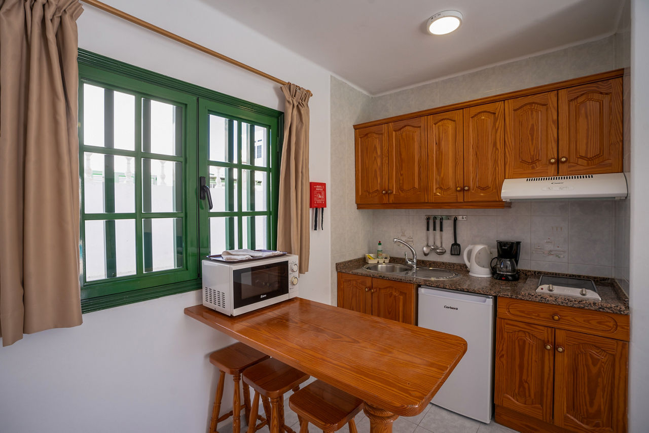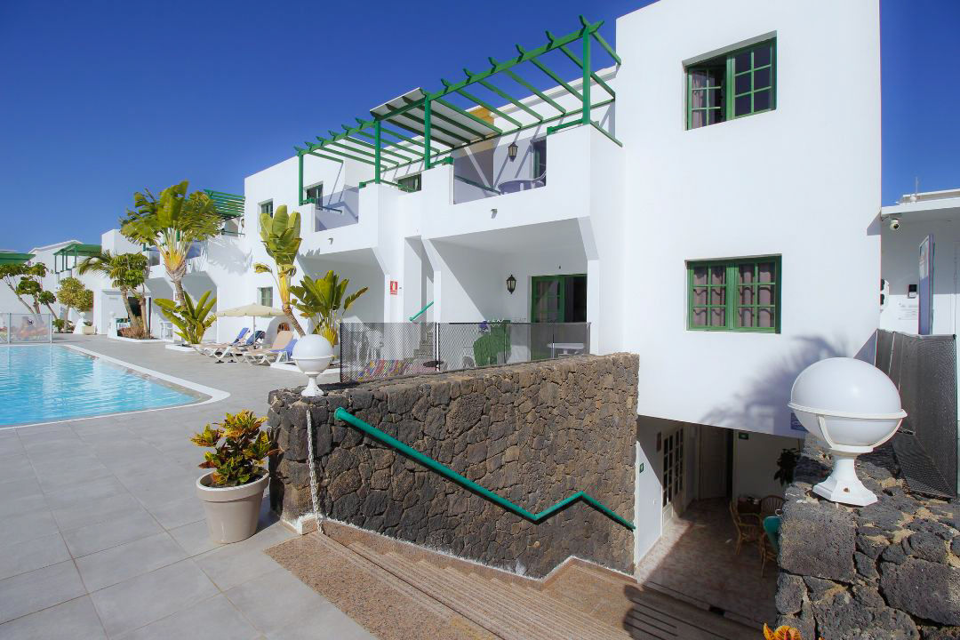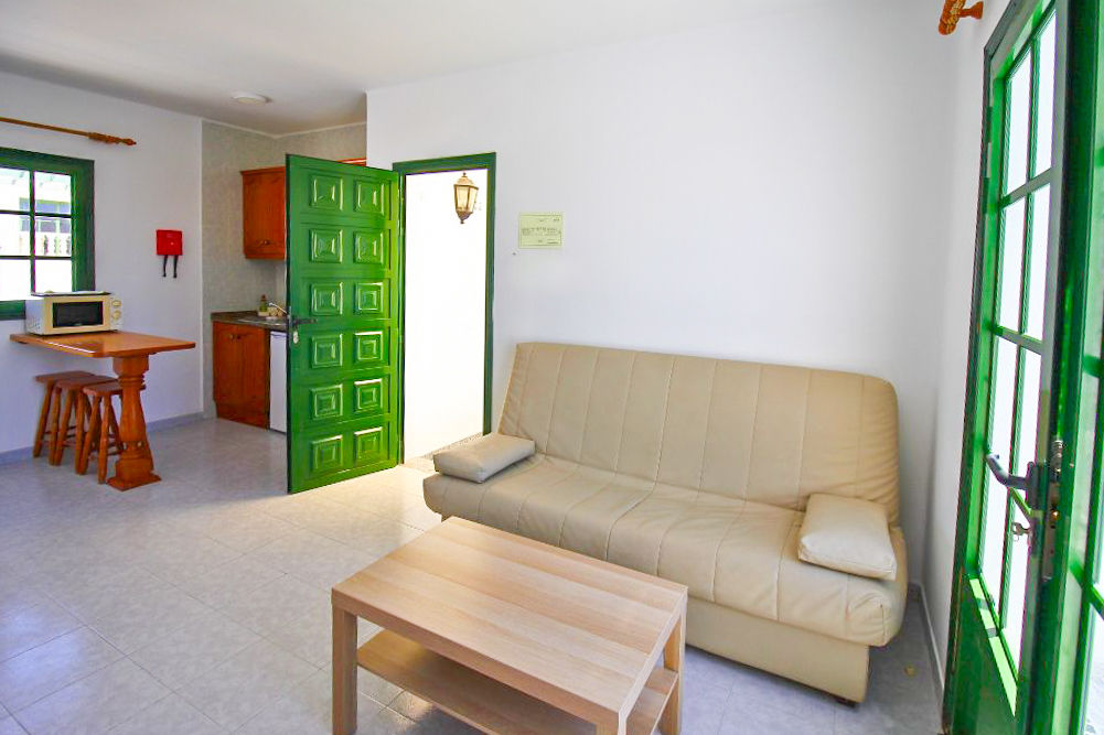 Here at the Apartamentos Aloe you have everything you need for a peaceful self-catering break, with the beach and the centre of Puerto Del Carmen close by you are sure to have everything you need within easy reach! Think whitewashed walls, a scattering of palm trees and that gentle breeze you can be swept away into the relaxation you've been dreaming of. The apartments are all well-equipped and have a traditional style. The large outdoor pool is located within the centre of the complex surrounded by lush greenery and sunbathing areas to chill out.One Bedroom apartments sleep up to 3 adults and have bathroom containing a bath or shower, hairdryer, safety deposit box*, television, kitchenette with 2 cooking rings, fridge, kettle, toaster, microwave, and balcony or terrace.