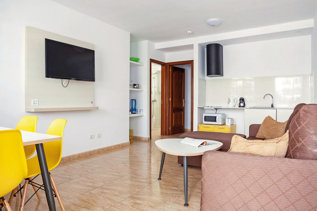 Right in the heart of Puerto Del Carmen, Hotel Plaza Palmeras could be just the ticket if you?re looking for a location like no other. Fancy rolling out your towel on Lanzarote?s honey-hued sands? Well, you can! You're just a short stroll from the beach. Spend days in the rays by the twinkling pool, or make your way into Puerto Del Carmen for a superb selection of restaurants and shops ? the choice is yours! When the sun goes down, you?ll be perfectly placed to sample the nearby nightlife on offer. Rather stay in? There?s an on-site bar for those well-deserved holiday tipples.Deluxe One Bedroom Apartments sleep up to 2 adults and 2 children and have a bathroom with shower only, air conditioning, fridge, tea and coffee making facilities and a balcony or terrace.