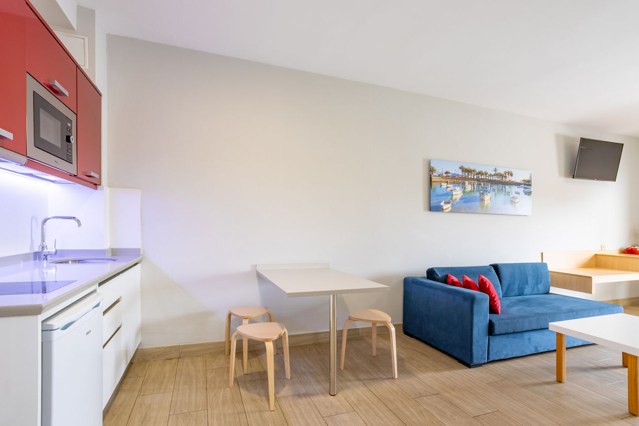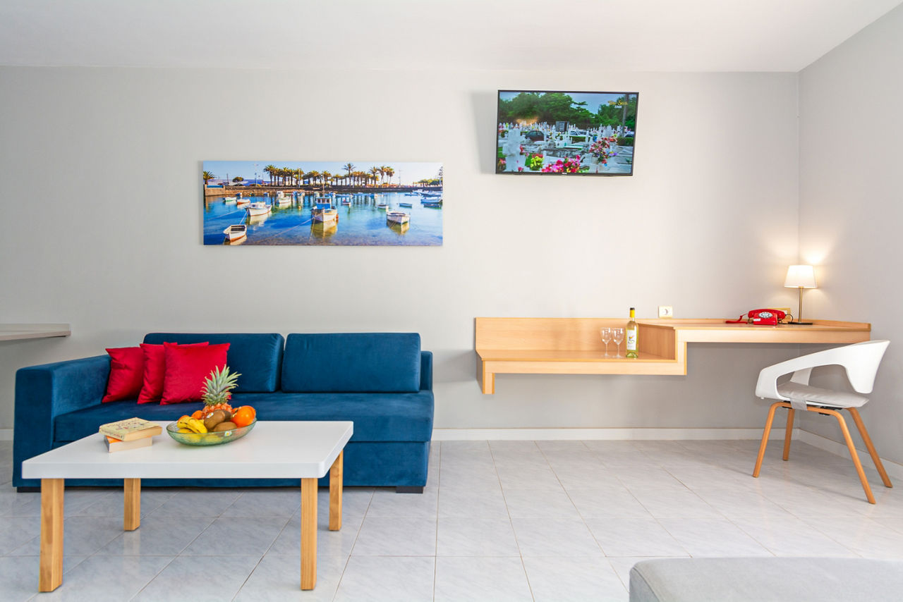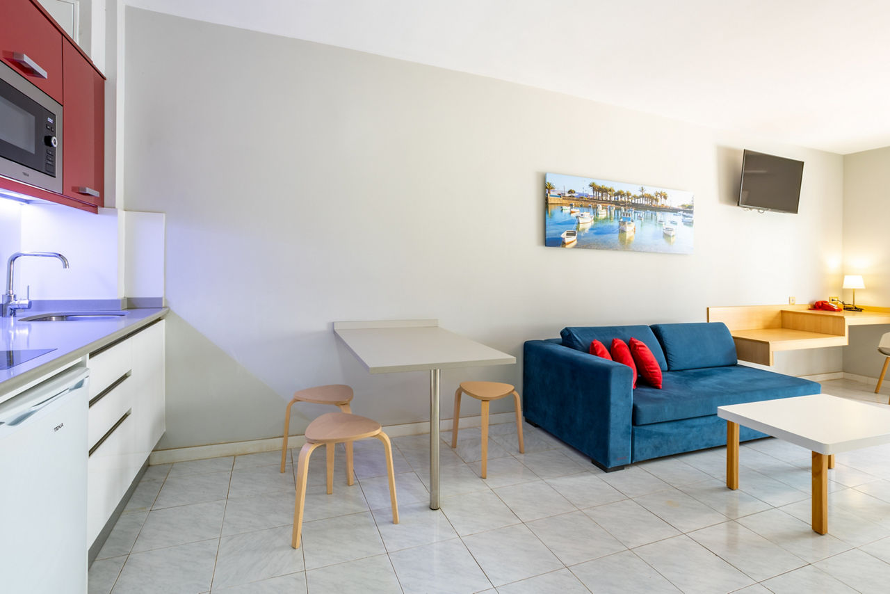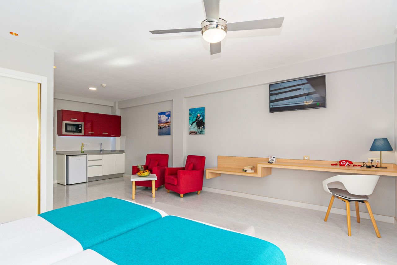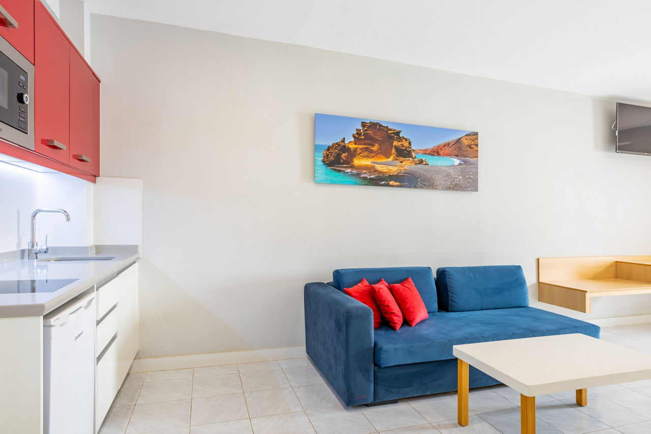 The fantastic location of the Oceano Aparthotel, in the heart of the popular resort of Costa Teguise with shops and restaurants on your door step gives you a great base to explore all that Lanzarote has to offer. Only a short stroll to two beaches, Playa Del Jablillo, small and friendly and Playa De Las Cucharas with a kilometre of golden sand and you have the chance to swim in the Atlantic Ocean and soak up that glorious Canarian sun. You can also choose to lounge by the lovely pool and sip a refreshing drink from the pool bar.Studios sleep up to 3 adults and have bathroom containing a bath with shower attachment, hairdryer, flat screen television*, double cooking rings, fridge, microwave, tea and coffee making facilities, toaster and balcony or terrace